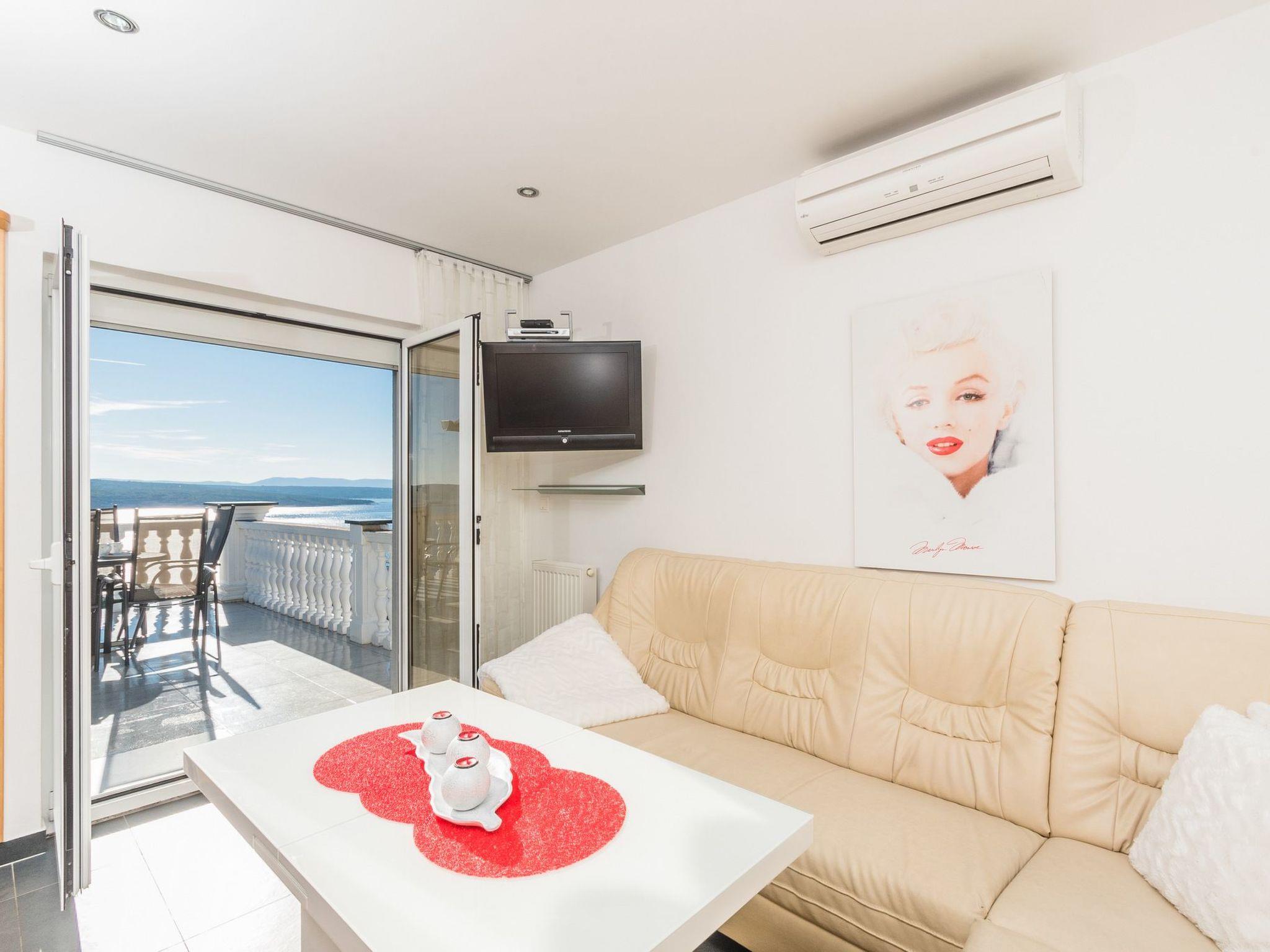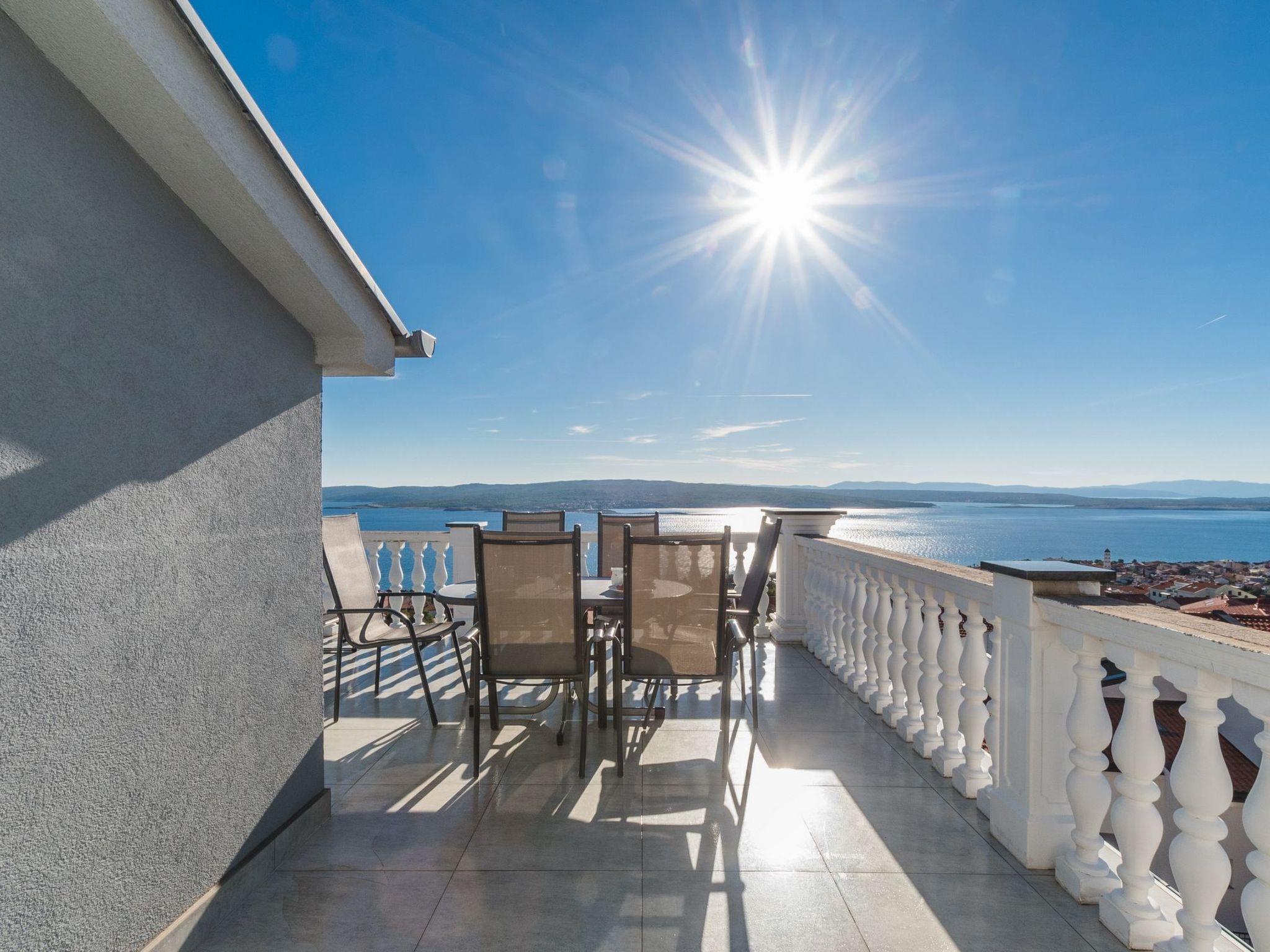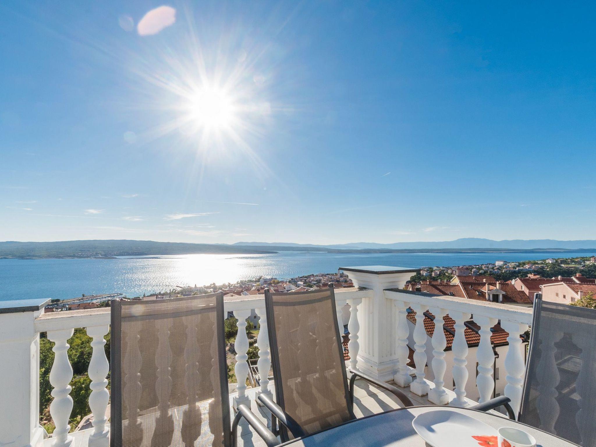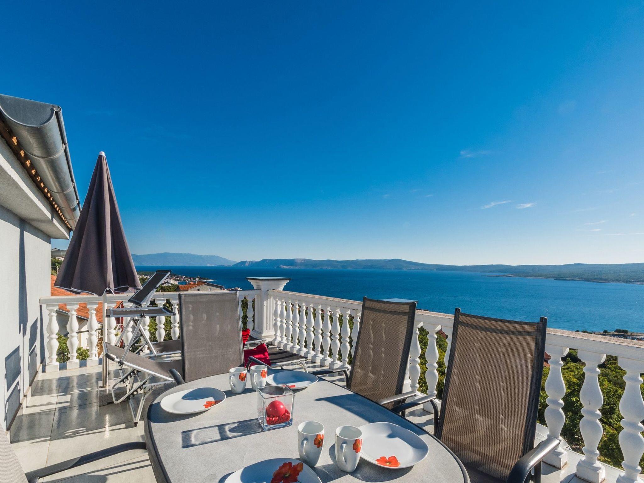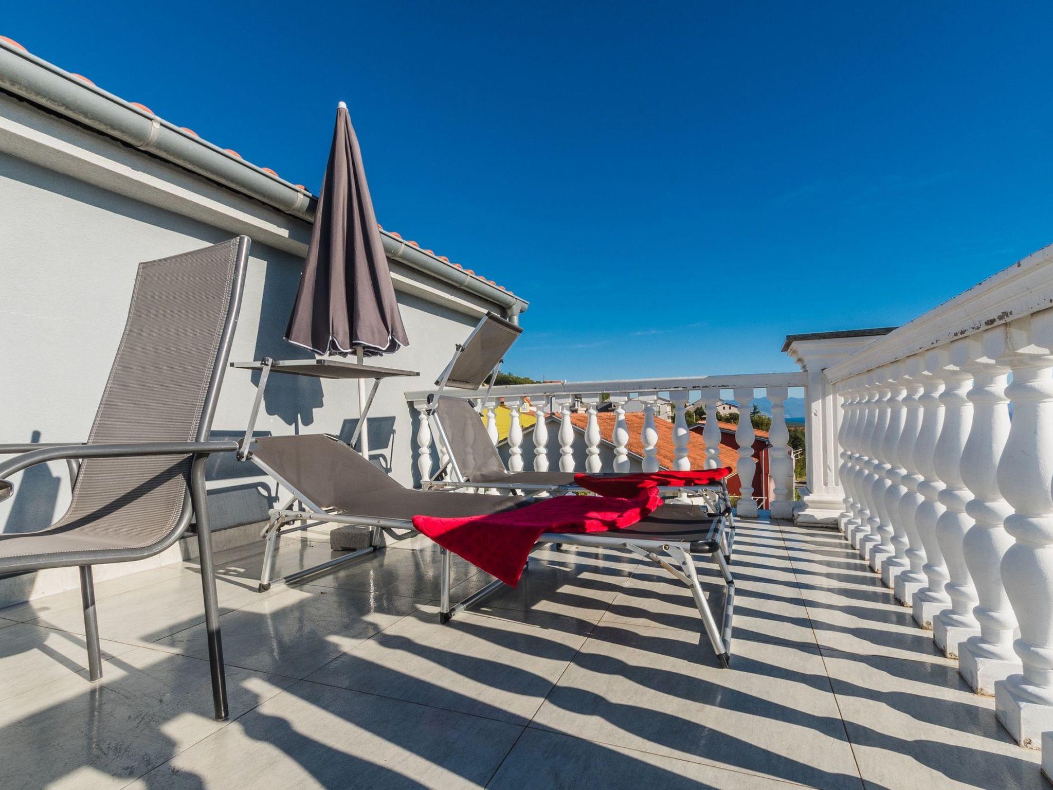 You can enjoy meals outdoors on the very large balcony (26m²) at the generous garden table with six outdoor chairs. Owing to being on the top floor, this balcony terrace is ideal for sunbathing. You can enjoy a beautiful sea view and of the island of Krk.