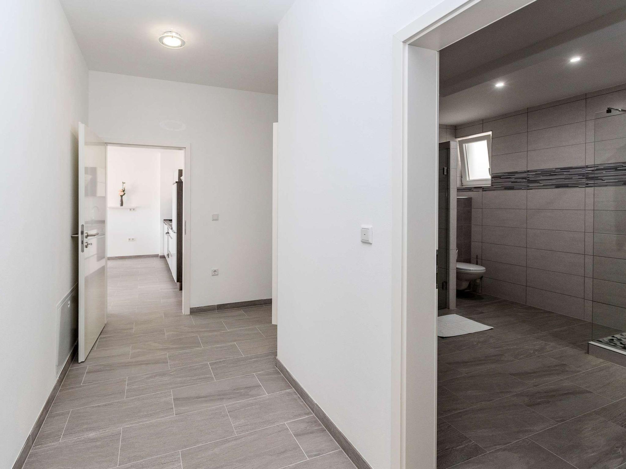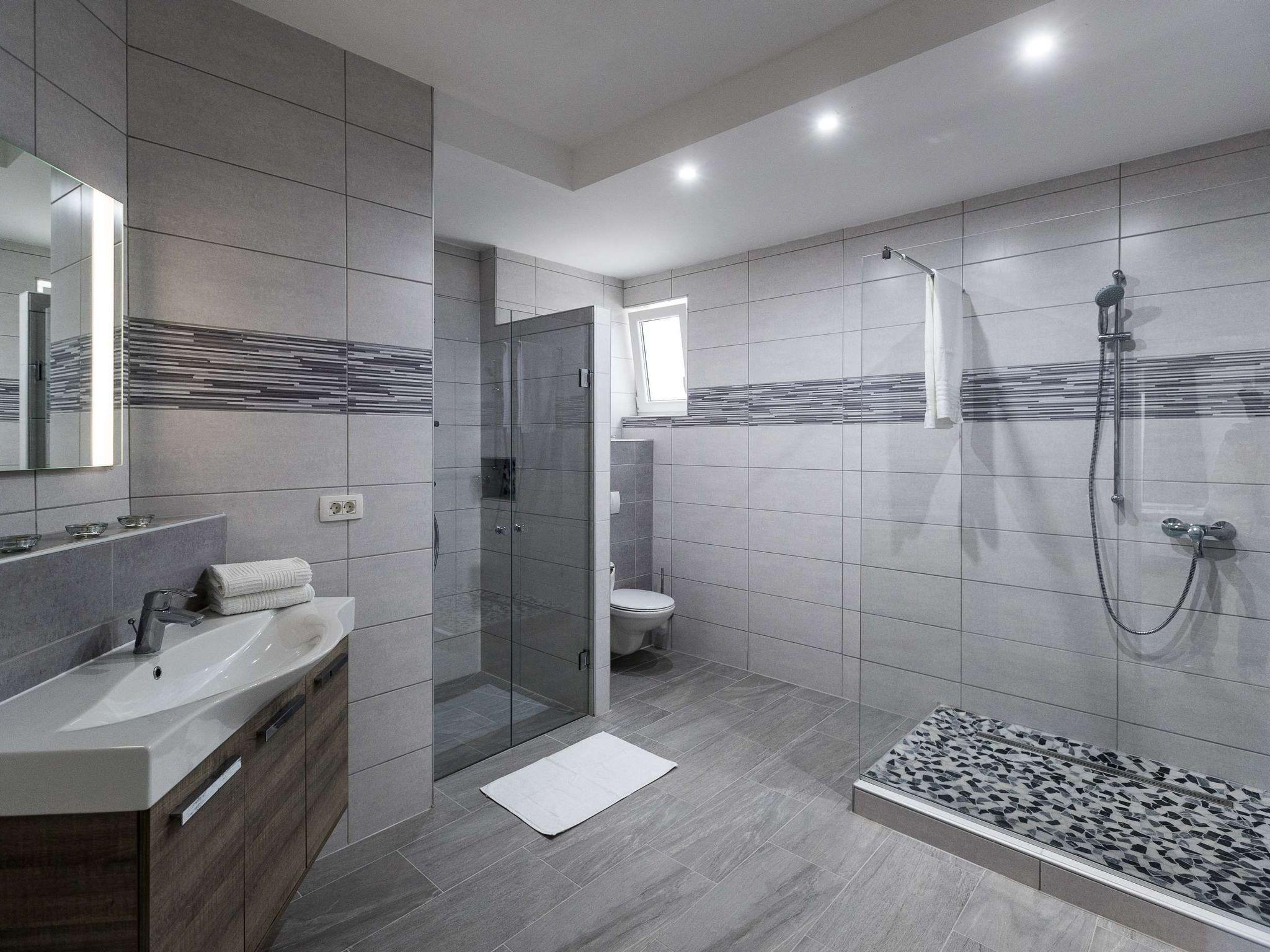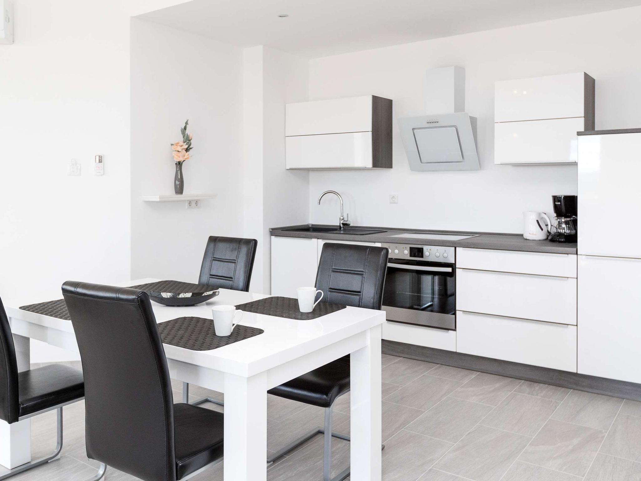 Inside, a world of modern elegance and comfort awaits you. Two cosy bedrooms invite you to dream, while the living/dining room with a comfortable sofa is perfect for cosy evenings. The fully equipped, modern kitchen allows you to conjure up culinary delights. A spacious bathroom with two large showers promises luxurious relaxation and complements the high-quality interior design of this exclusive accommodation.
