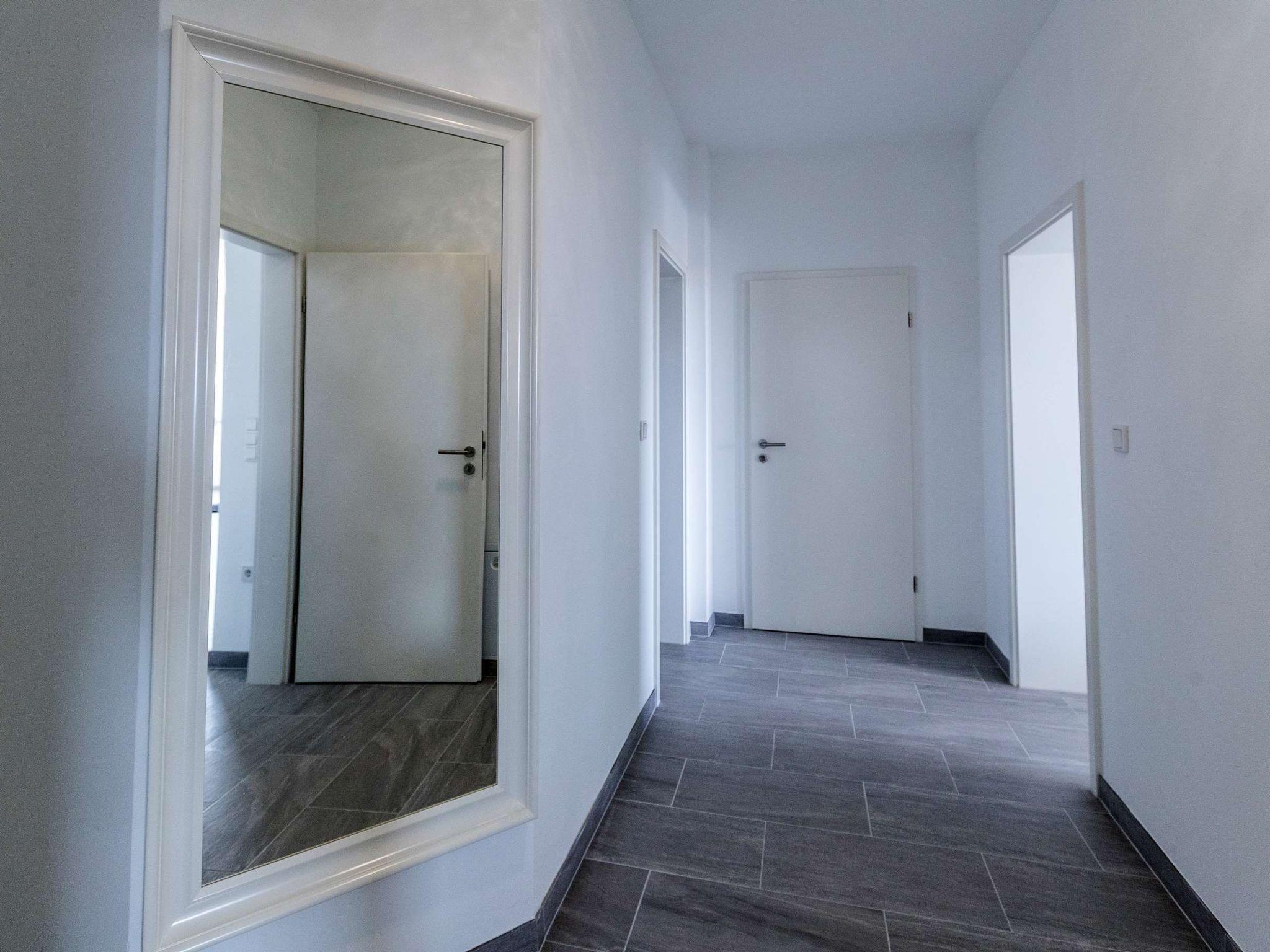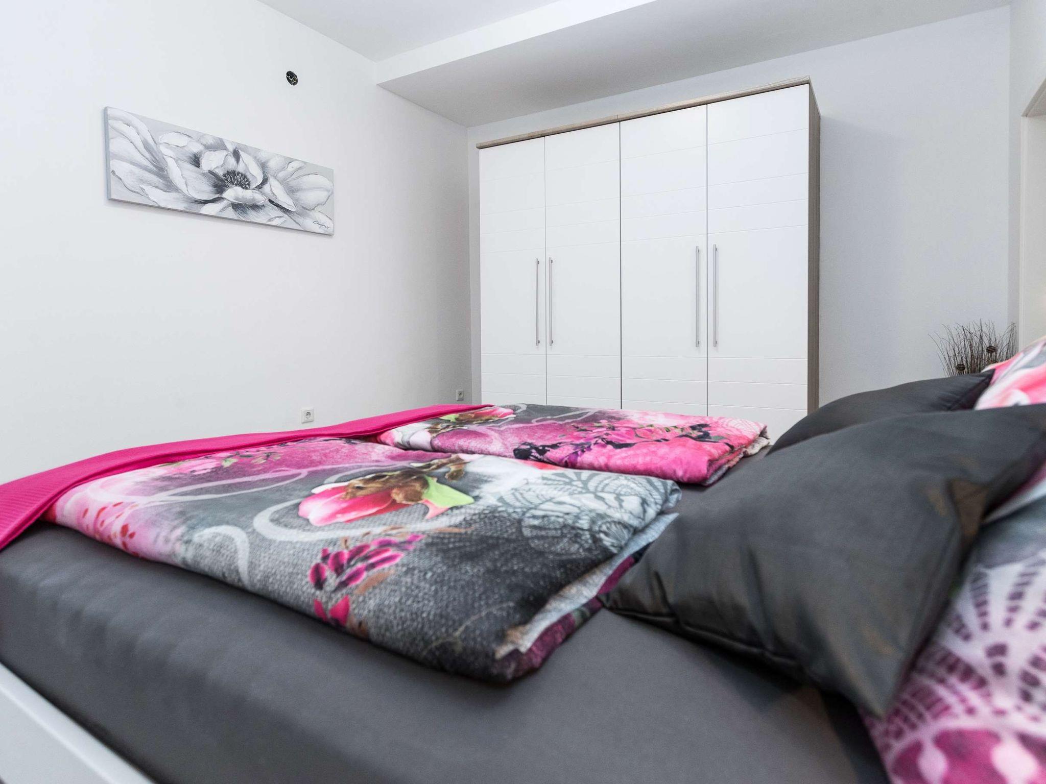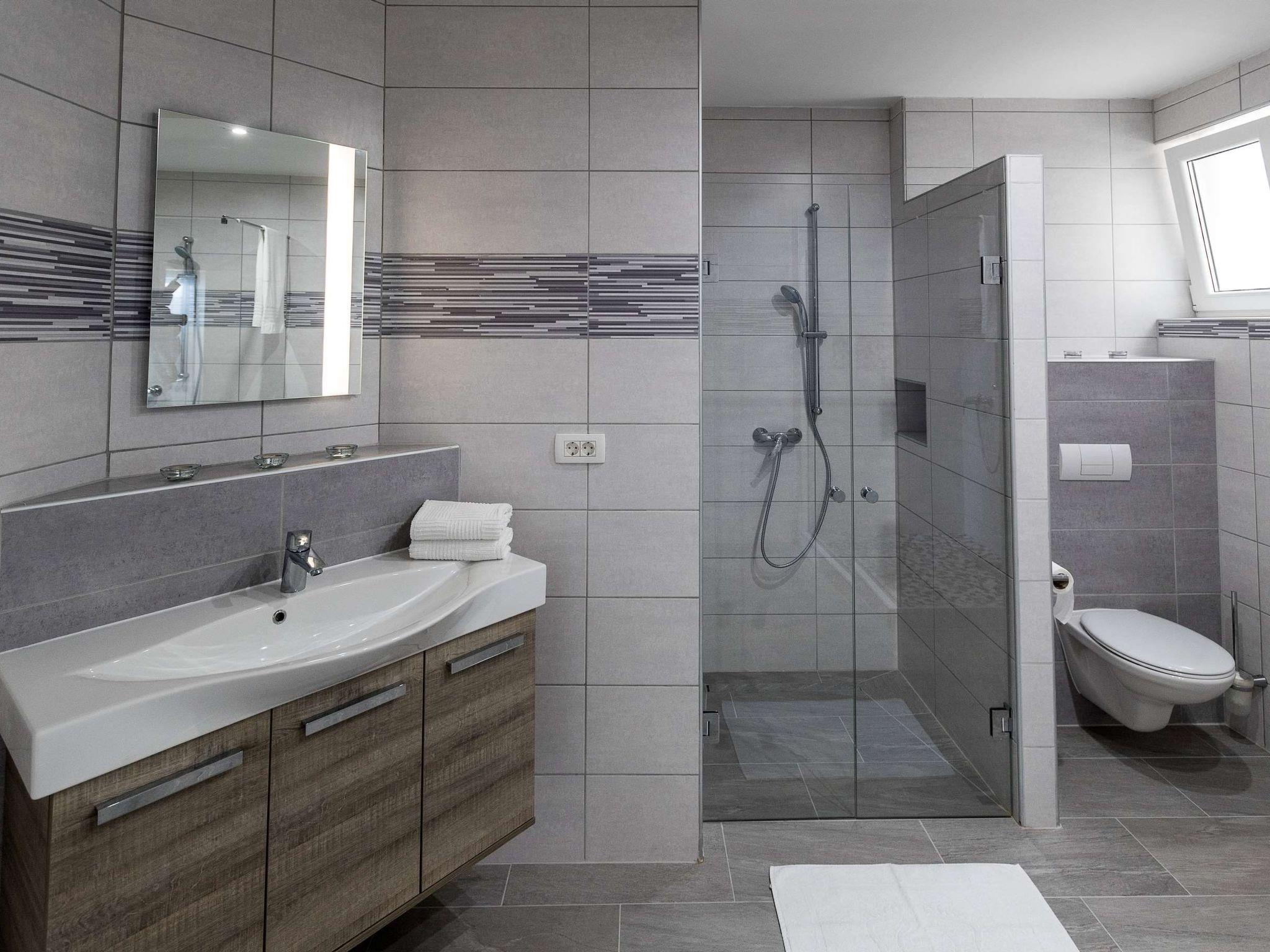 Inside, a world of modern elegance and comfort awaits you. Two cosy bedrooms invite you to dream, while the living/dining room with a comfortable sofa is perfect for cosy evenings. The fully equipped, modern kitchen allows you to conjure up culinary delights. A spacious bathroom with two large showers promises luxurious relaxation and complements the high-quality interior design of this exclusive accommodation.