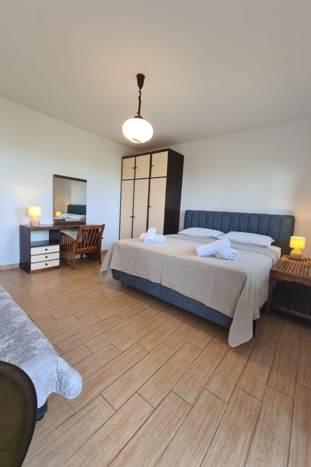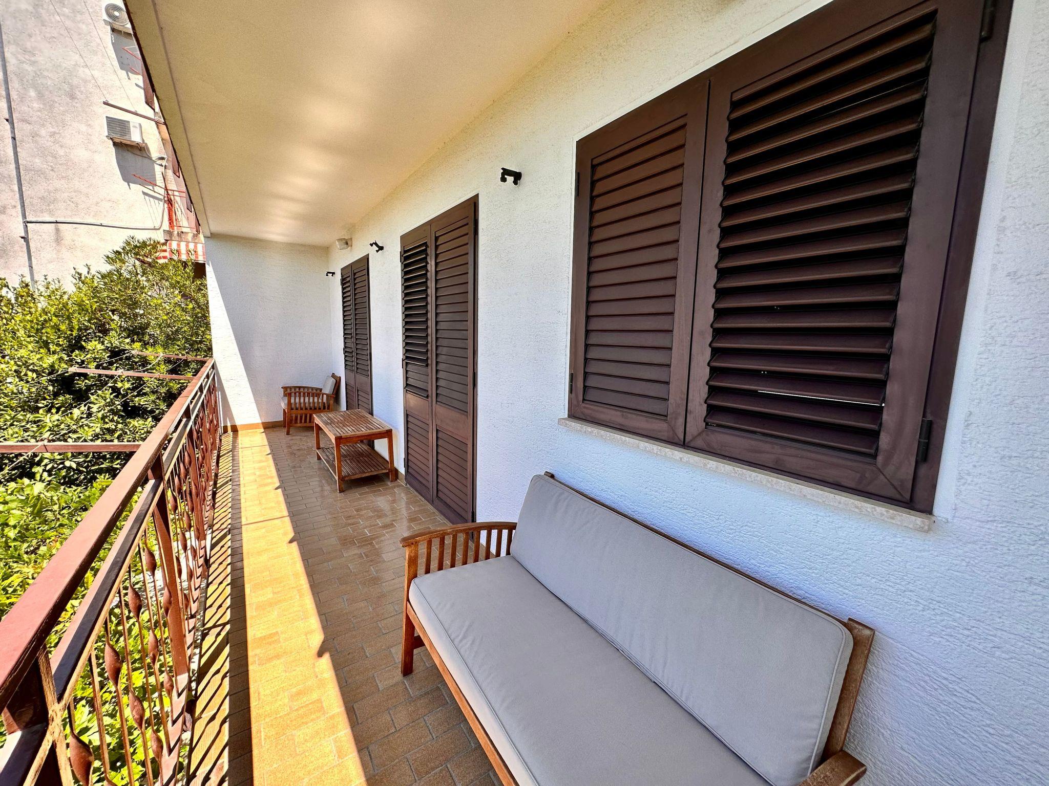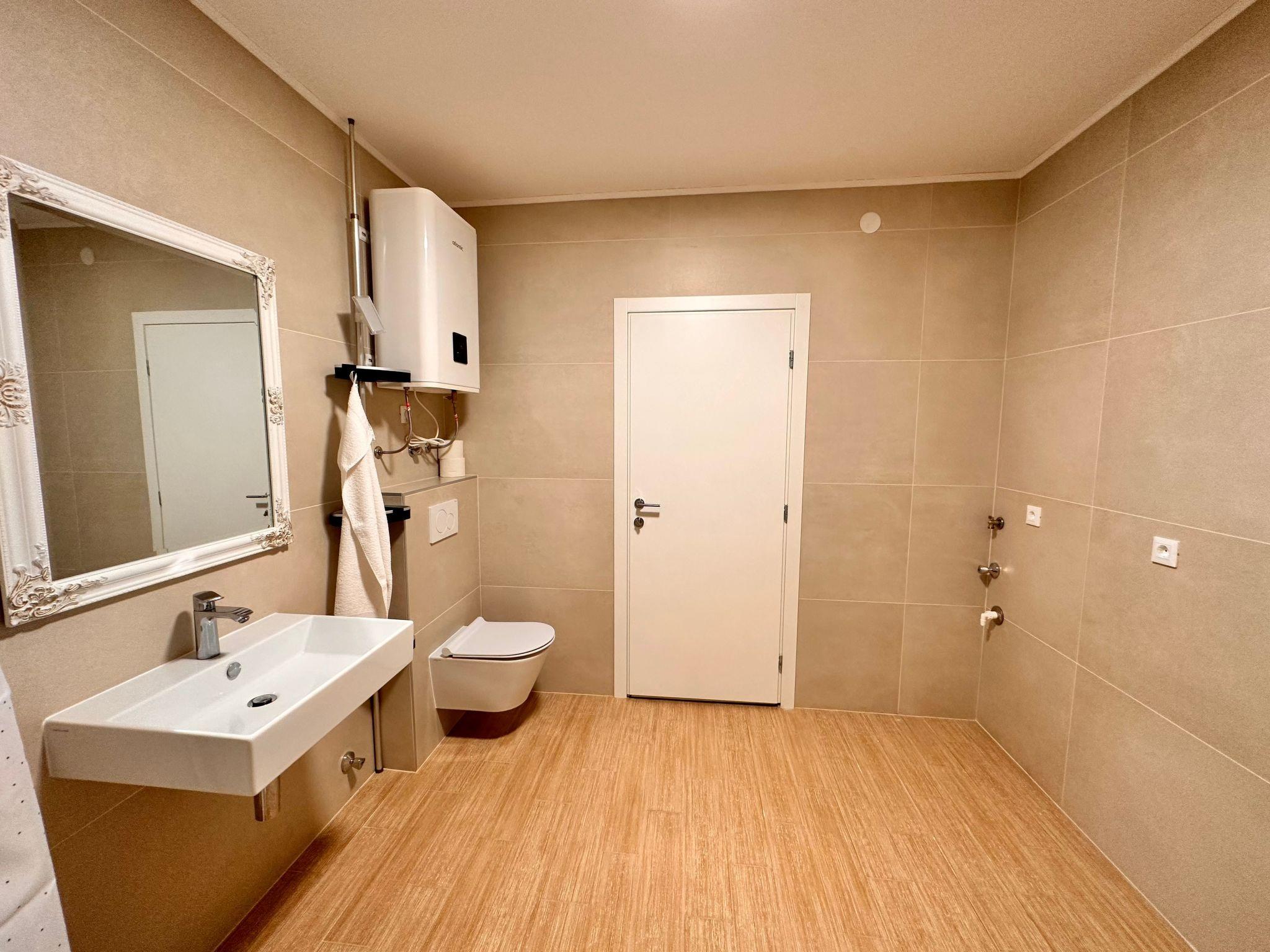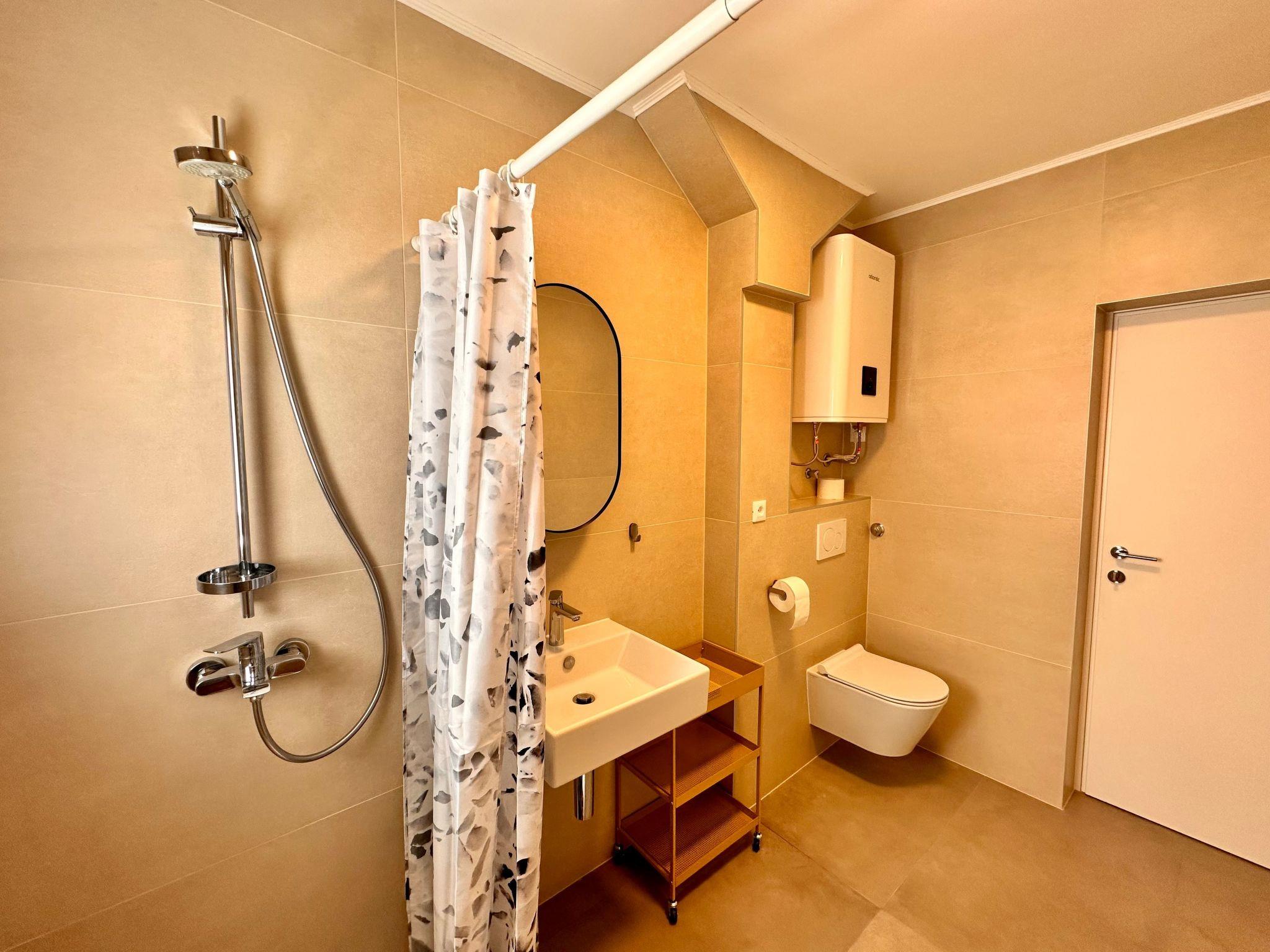 Inside the flat, you will find a well thought-out layout that ensures comfort during your stay. The flat extends over the first floor and includes three spacious bedrooms and three bathrooms, making the stay particularly pleasant for all guests. Partial air conditioning provides a refreshing breeze, even in warmer months, so that you can always enjoy relaxing hours.