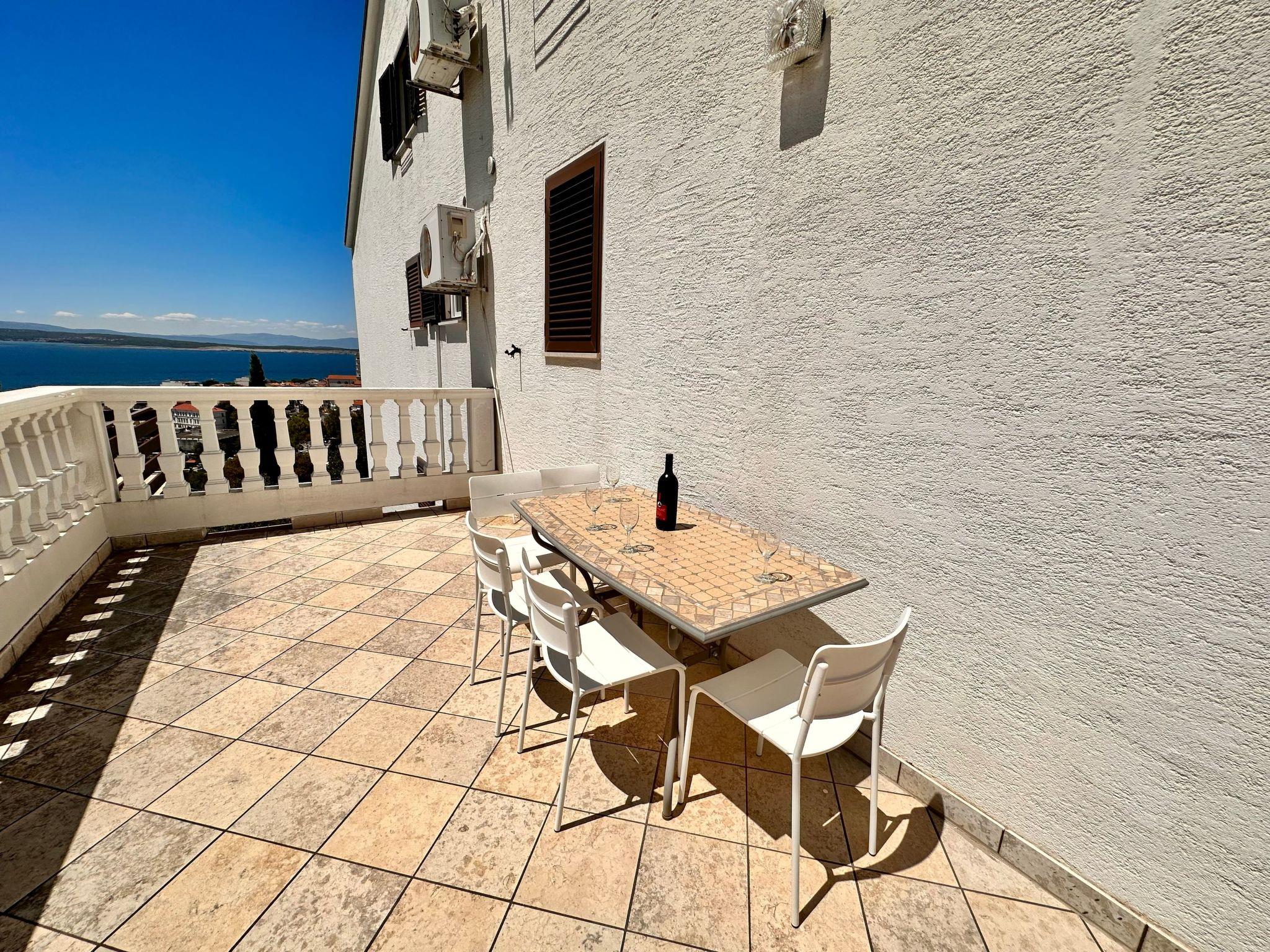 Outside, the balcony invites you to spend wonderful mornings or balmy evenings in a private atmosphere. Take a seat and let your gaze wander over the sea while you soak up the regional tranquillity. It's the perfect place to relax with a glass of wine or a cup of coffee and soak up the special atmosphere of Kvarner Bay.