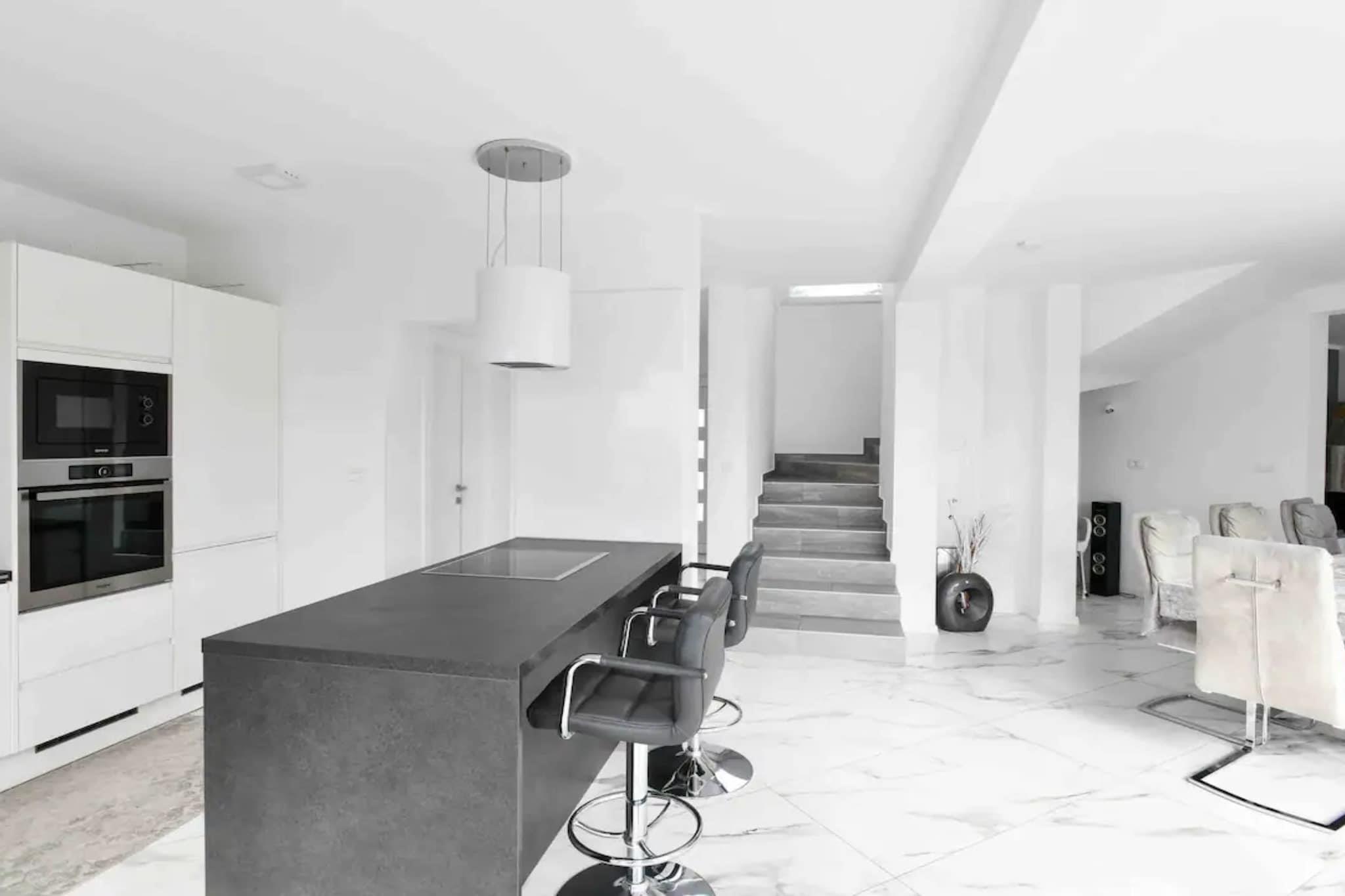 Villa Marilyn Monroe is a modern rental property located in Crikvenica, within the Primorje-Gorski Kotar County of Croatia. This stylish villa is designed to accommodate families or groups looking for a luxurious vacation experience. It features amenities such as a private pool, barbecue facilities, free Wi-Fi, and private parking. The interior is contemporary, with a focus on comfort and aesthetics, making it ideal for relaxation and social gatherings. Note: Pets are allowed with notice. Private parking, reservation is not required. Wi-Fi is available throughout the property. This four-bedroom can accommodate up to eight guests. It features a Satellite TV, Flat screen TV and is combined with a living room and kitchen. The private bathroom is equipped with a shower and toilet. Thanks to its excellent location, everything you'll need for your vacation is just a short walk away from the property. Grocery stores-1.00 km, cafes-600.00 m, restaurants—900.00 m. The beach is 600.00 m away from the property. The airport is 30 km away from the property.