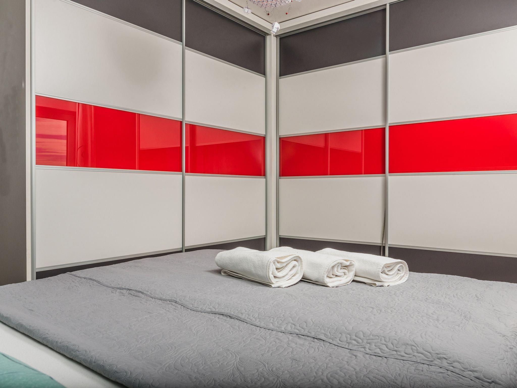 Ferienwohnung bietet Platz für 6 Gäste. Die Betten sind in Schlafzimmern, die es 3 gibt, innerhalb einer Gesamtfläche von 105m2, angeordnet. Die Gäste haben eine eigene Terrasse zur Verfügung, auf der sie in warmen Sommernächten genießen können. Das Apartment bietet Meerblick. Es ist erlaubt, Speisen auf dem Gemeinschafts-Grill vorzubereiten. In der Unterkunftseinheit besteht die Möglichkeit des Mitbringens von Haustieren gegen Aufpreis. In der gebuchten Unterkunftseinheit zahlt man am Ort ein Depositum ( der Preis ist an der Internetseite angeführt ). IM PREIS INBEGRIFFEN: Kurtaxe, Endreinigung, Klimatisierung, Zentralheizung, Internet, Föhn. VERBINDLICHE ZUSÄTZLICHE KOSTEN: Kaution (200,00 € Einmalzahlung). UNVERBINDLICHE ZUSÄTZLICHE KOSTEN: Haustiere (15,00 € pro Nacht). Die Verfügbarkeit zusätzlicher Dienstleistungen in Ihrem reservierten Termin und die Preise derselben (falls nicht aufgeführt) müssen im Voraus überprüft werden. Zusätzliche Dienstleistungen die in der Zahlungsaufforderung nicht aufgeführt sind werden direkt beim Vermieter bezahlt, angenommen der Gast nutzt auch diese.