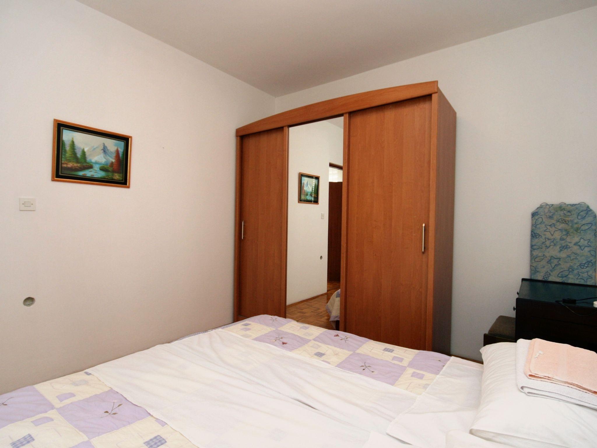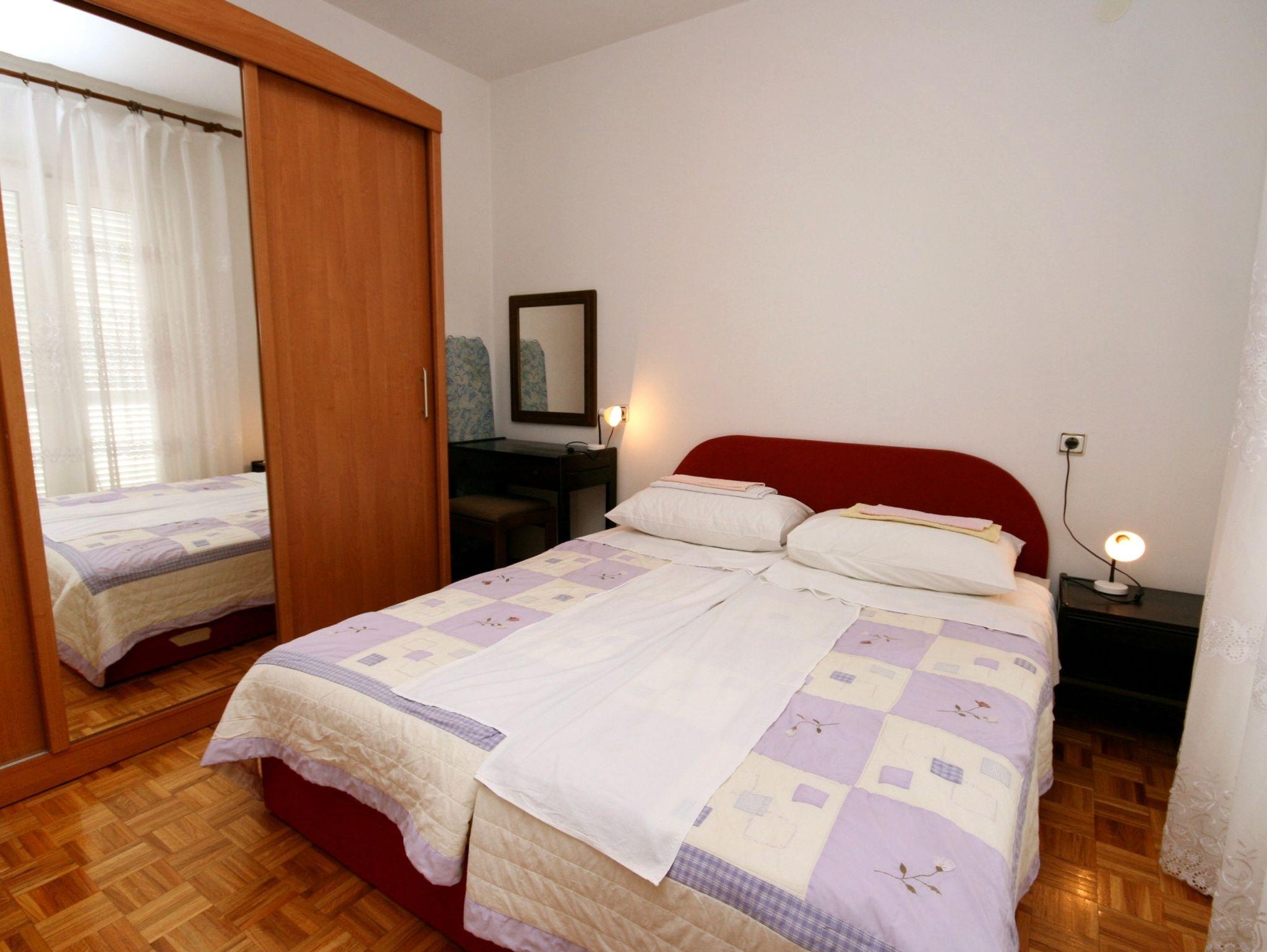 Ferienwohnung bietet Platz für 4 Gäste. Die Betten sind in Schlafzimmern, die es 1 gibt, und in Wohnzimmer, innerhalb einer Gesamtfläche von 38m2, angeordnet. Die Gäste haben eine eigene Terrasse zur Verfügung, auf der sie in warmen Sommernächten genießen können. Das Apartment bietet Meerblick. Es ist erlaubt, Speisen auf dem Gemeinschafts-Grill vorzubereiten. In der Unterkunftseinheit besteht die Möglichkeit des Mitbringens von Haustieren gegen Aufpreis. IM PREIS INBEGRIFFEN: Kurtaxe, Endreinigung, Klimatisierung, Parkplatz, Internet, Kinderbett, Bügeleisen, Bügelbrett, Föhn. VERBINDLICHE ZUSÄTZLICHE KOSTEN: Aufzahlung für Kurzaufenthalte (prozentualer Zuschlag pro Nächtigungsanzahl: 30% - 1, 20% - 2, 10% - 3). UNVERBINDLICHE ZUSÄTZLICHE KOSTEN: Zentralheizung (10,00 € pro Nacht), Haustiere (10,00 € pro Nacht). Die Verfügbarkeit zusätzlicher Dienstleistungen in Ihrem reservierten Termin und die Preise derselben (falls nicht aufgeführt) müssen im Voraus überprüft werden. Zusätzliche Dienstleistungen die in der Zahlungsaufforderung nicht aufgeführt sind werden direkt beim Vermieter bezahlt, angenommen der Gast nutzt auch diese. Ermäßigung auf den Grundpreis: Gratistag 14=13 (bei einem Aufenthalt von 14 Tagen oder mehr erhalten Sie einen Gratistag für den Aufenthalt bis 31.12.26).