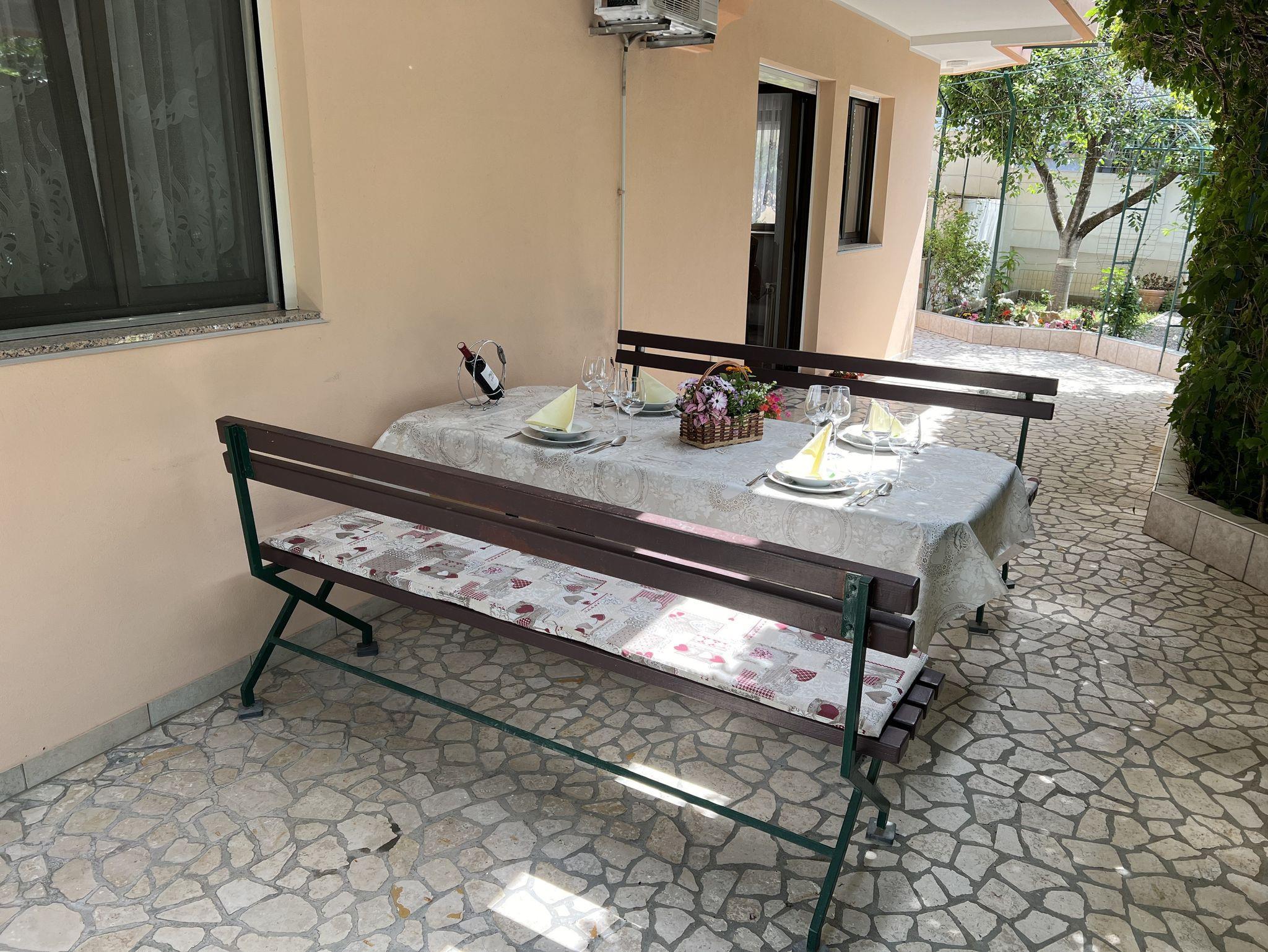 Ferienwohnung bietet Platz für 5 Gäste. Die Betten sind in Schlafzimmern, die es 2 gibt, innerhalb einer Gesamtfläche von 67m2, angeordnet. Die Gäste haben eine eigene Terrasse zur Verfügung, auf der sie in warmen Sommernächten genießen können. Es ist erlaubt, Speisen auf dem Gemeinschafts-Grill vorzubereiten. IM PREIS INBEGRIFFEN: Kurtaxe, Endreinigung, Parkplatz, Internet, Kinderbett, Zusatzbett, Bügeleisen, Bügelbrett, Föhn, tragbarer Grill. VERBINDLICHE ZUSÄTZLICHE KOSTEN: Aufzahlung für Kurzaufenthalte (prozentualer Zuschlag pro Nächtigungsanzahl: 30% - 1, 20% - 2, 10% - 3). UNVERBINDLICHE ZUSÄTZLICHE KOSTEN: Klimatisierung (10,00 € kwh). Die Verfügbarkeit zusätzlicher Dienstleistungen in Ihrem reservierten Termin und die Preise derselben (falls nicht aufgeführt) müssen im Voraus überprüft werden. Zusätzliche Dienstleistungen die in der Zahlungsaufforderung nicht aufgeführt sind werden direkt beim Vermieter bezahlt, angenommen der Gast nutzt auch diese.