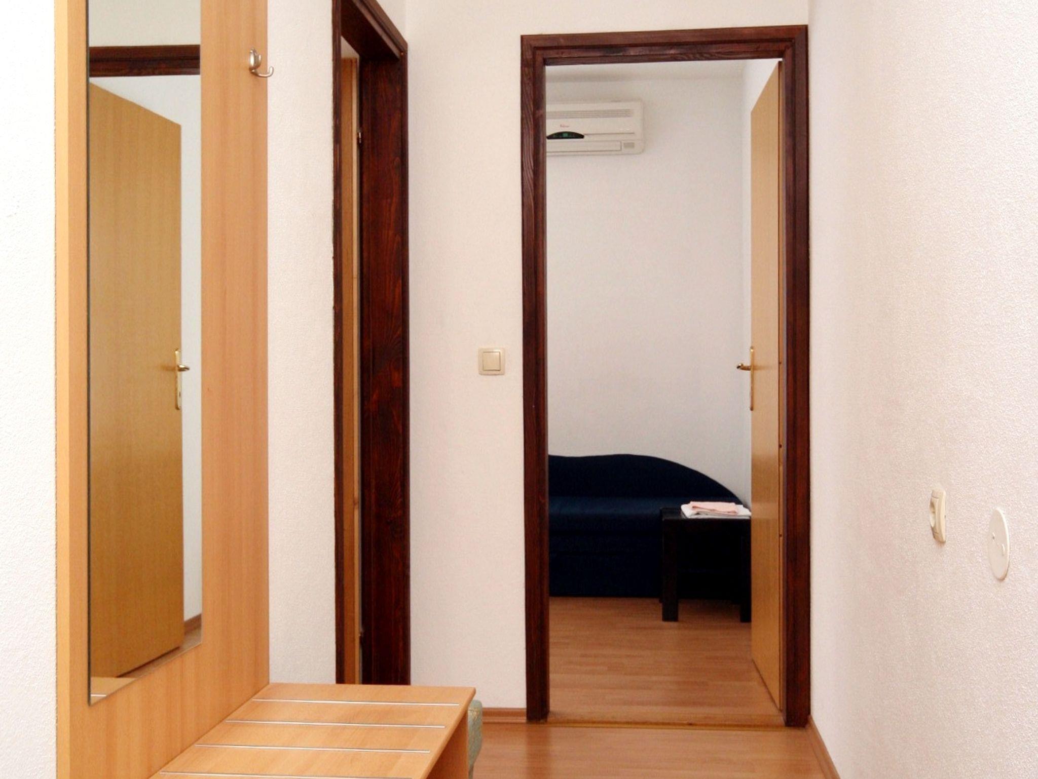 Ferienwohnung bietet Platz für 3 Gäste. Die Betten sind in Schlafzimmern, die es 1 gibt, und in Esszimmer, innerhalb einer Gesamtfläche von 28m2, angeordnet. Die Gäste haben eine eigene Terrasse zur Verfügung, auf der sie in warmen Sommernächten genießen können. Das Apartment bietet Meerblick. Es ist erlaubt, Speisen auf dem Gemeinschafts-Grill vorzubereiten. In der Unterkunftseinheit besteht die Möglichkeit des Mitbringens von Haustieren gegen Aufpreis. IM PREIS INBEGRIFFEN: Kurtaxe, Endreinigung, Klimatisierung, Parkplatz, Internet, Kinderbett, Bügeleisen, Bügelbrett, Föhn. VERBINDLICHE ZUSÄTZLICHE KOSTEN: Aufzahlung für Kurzaufenthalte (prozentualer Zuschlag pro Nächtigungsanzahl: 30% - 1, 20% - 2, 10% - 3). UNVERBINDLICHE ZUSÄTZLICHE KOSTEN: Haustiere (10,00 € pro Nacht). Die Verfügbarkeit zusätzlicher Dienstleistungen in Ihrem reservierten Termin und die Preise derselben (falls nicht aufgeführt) müssen im Voraus überprüft werden. Zusätzliche Dienstleistungen die in der Zahlungsaufforderung nicht aufgeführt sind werden direkt beim Vermieter bezahlt, angenommen der Gast nutzt auch diese. Ermäßigung auf den Grundpreis: Gratistag 14=13 (bei einem Aufenthalt von 14 Tagen oder mehr erhalten Sie einen Gratistag für den Aufenthalt bis 31.12.26).