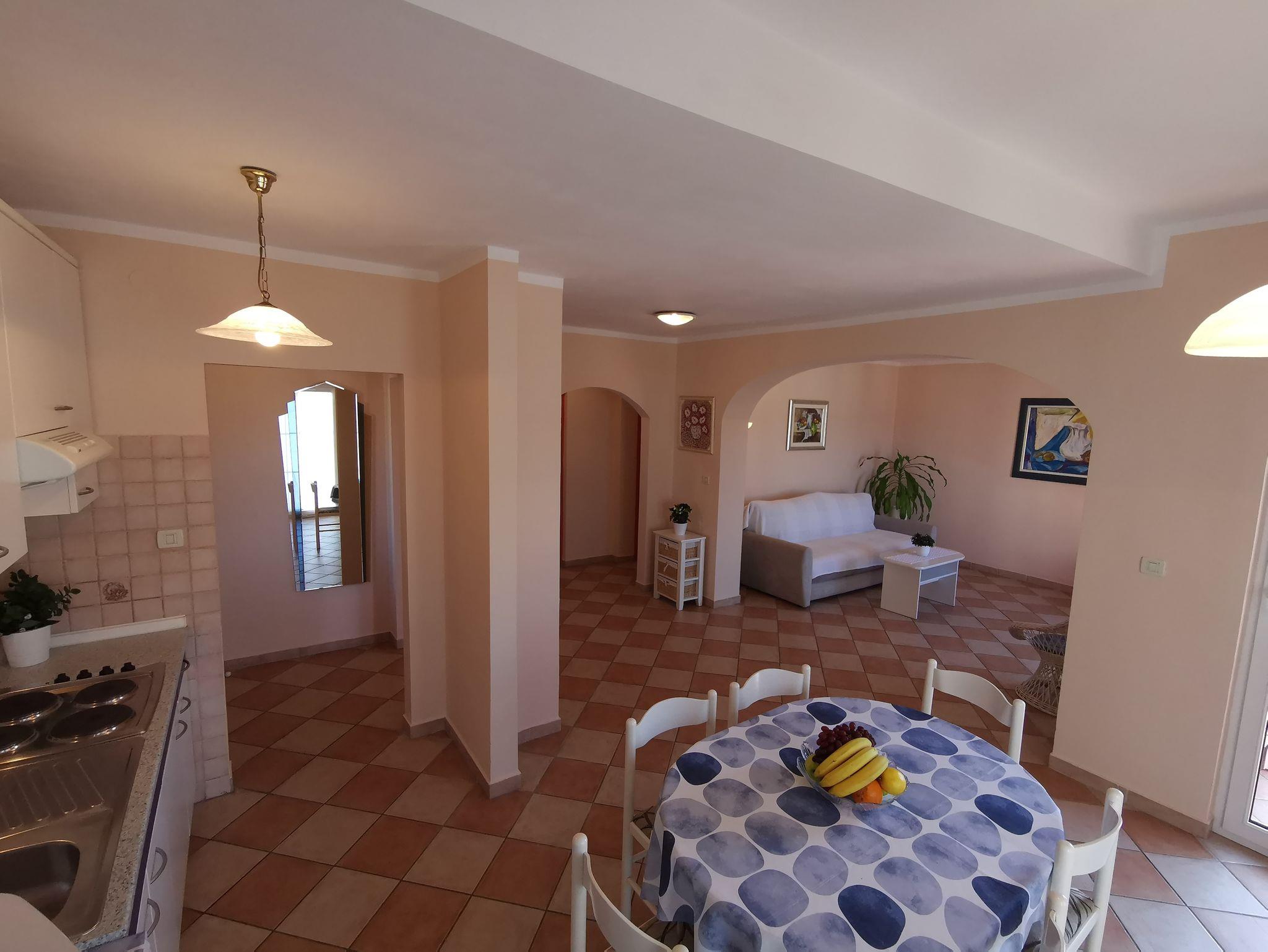 Ferienwohnung bietet Platz für 5 Gäste. Die Betten sind in Schlafzimmern, die es 2 gibt, und in Wohnzimmer, innerhalb einer Gesamtfläche von 70m2, angeordnet. Die Gäste haben einen eigenen Balkon zur Verfügung, auf der sie in warmen Sommernächten genießen können. Das Apartment bietet Meerblick. In der gebuchten Unterkunftseinheit zahlt man am Ort ein Depositum ( der Preis ist an der Internetseite angeführt ). IM PREIS INBEGRIFFEN: Kurtaxe, Endreinigung, Klimatisierung, Parkplatz, Internet, Föhn. VERBINDLICHE ZUSÄTZLICHE KOSTEN: Kaution (100,00 € Einmalzahlung). Die Verfügbarkeit zusätzlicher Dienstleistungen in Ihrem reservierten Termin und die Preise derselben (falls nicht aufgeführt) müssen im Voraus überprüft werden. Zusätzliche Dienstleistungen die in der Zahlungsaufforderung nicht aufgeführt sind werden direkt beim Vermieter bezahlt, angenommen der Gast nutzt auch diese.