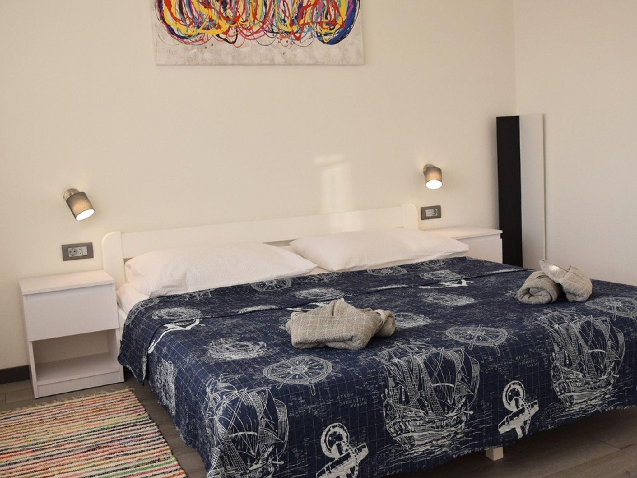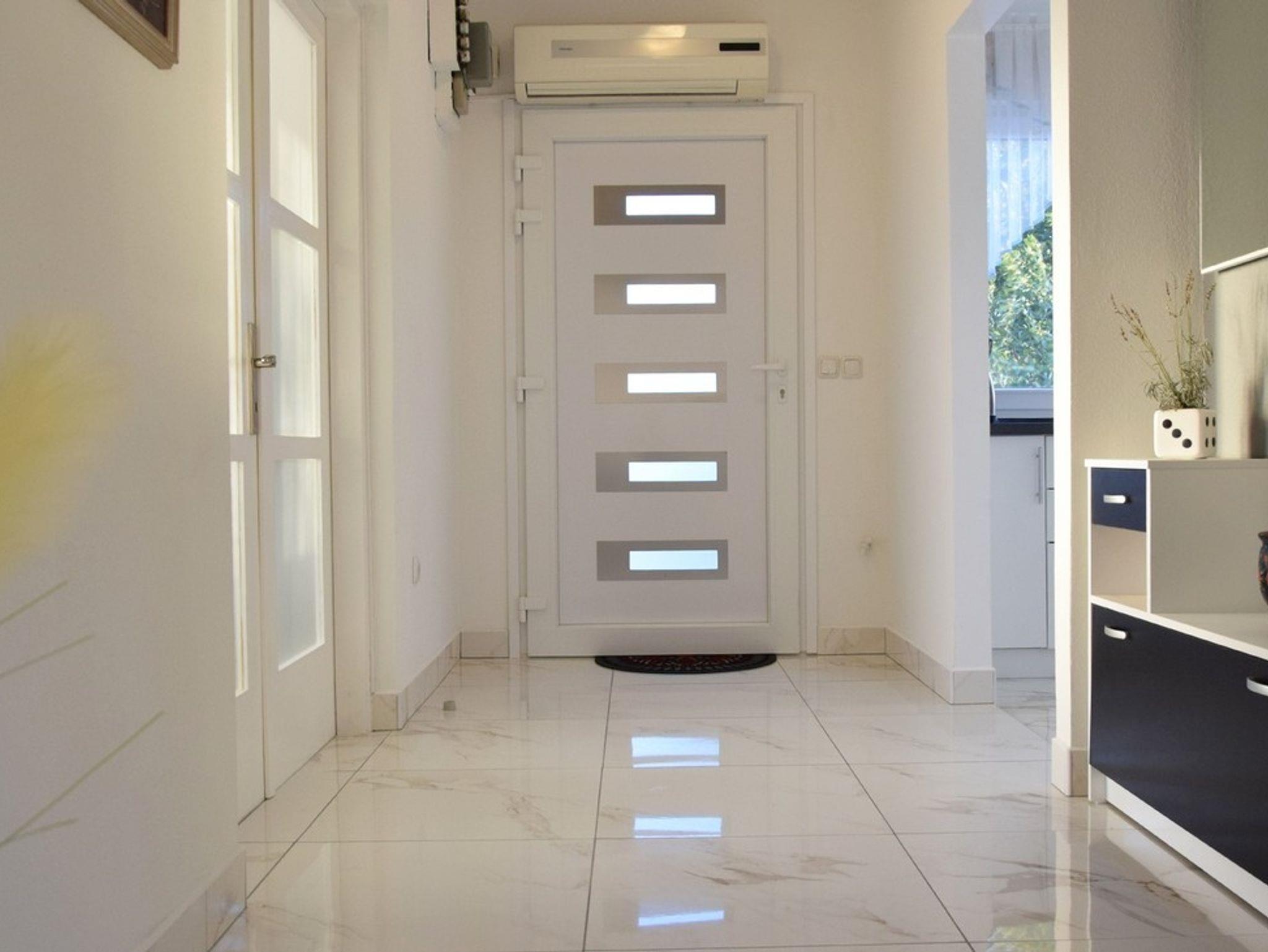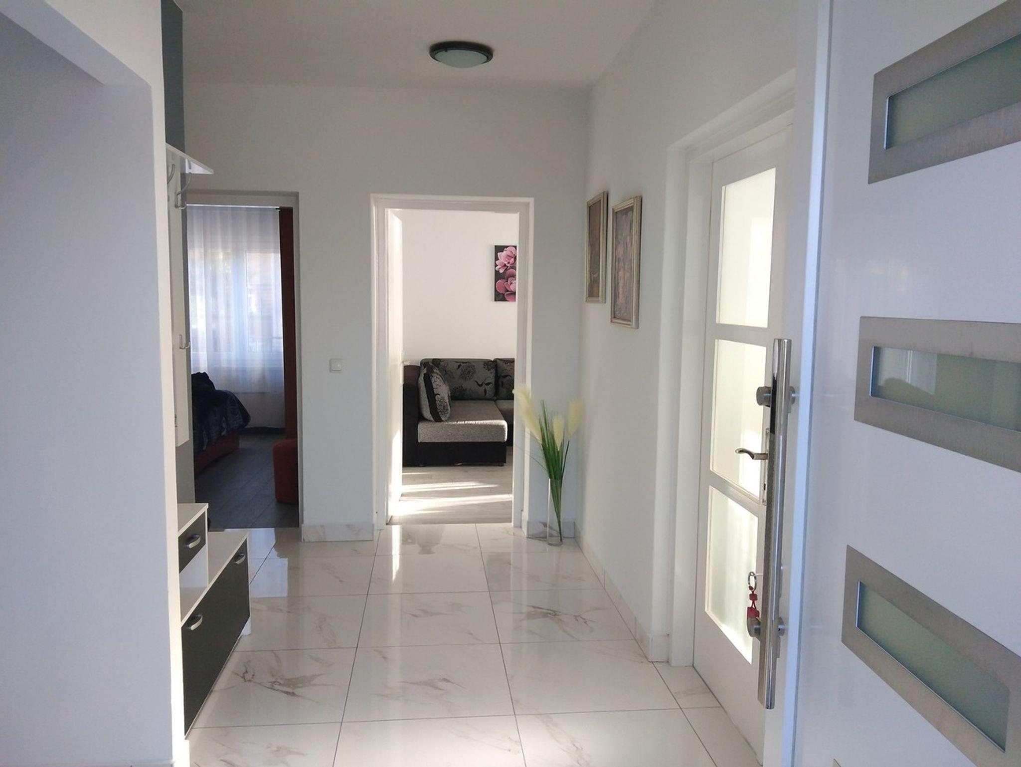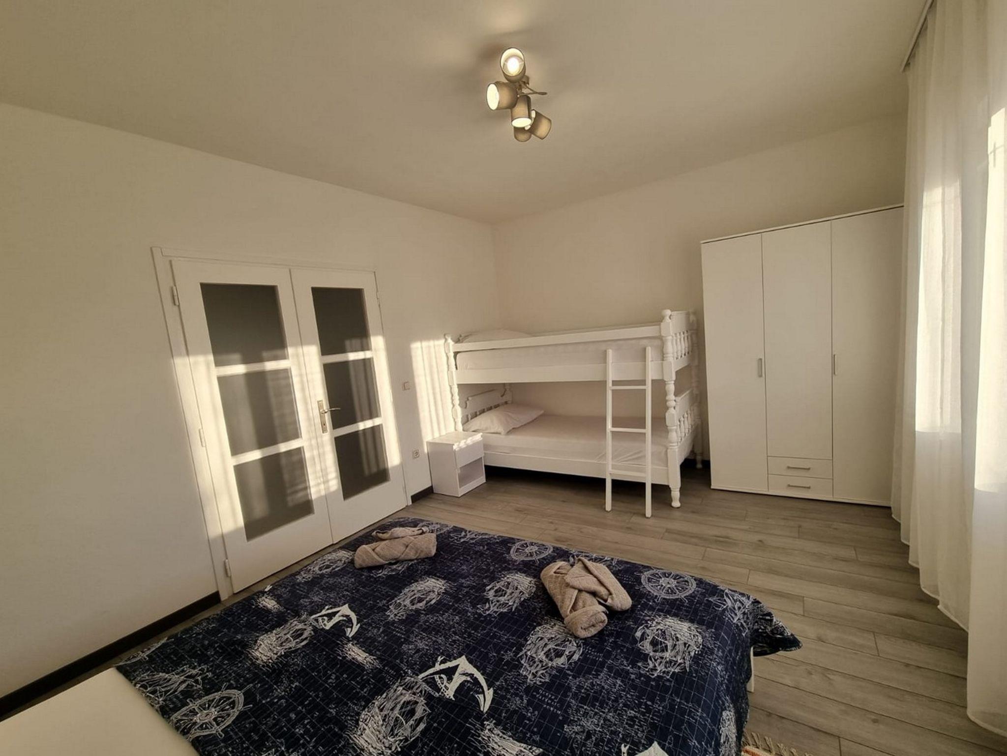 Ferienwohnung bietet Platz für 6 Gäste. Die Betten sind in Schlafzimmern, die es 2 gibt, innerhalb einer Gesamtfläche von 75m2, angeordnet. Die Gäste haben eine eigene Terrasse zur Verfügung, auf der sie in warmen Sommernächten genießen können. Das Apartment bietet Meerblick. Es ist erlaubt, Speisen auf dem Gemeinschafts-Grill vorzubereiten. IM PREIS INBEGRIFFEN: Kurtaxe, Endreinigung, Klimatisierung, Parkplatz, Internet, Bügeleisen, Föhn, tragbarer Grill. VERBINDLICHE ZUSÄTZLICHE KOSTEN: Aufzahlung für Kurzaufenthalte (prozentualer Zuschlag pro Nächtigungsanzahl: 30% - 1, 20% - 2, 10% - 3). Die Verfügbarkeit zusätzlicher Dienstleistungen in Ihrem reservierten Termin und die Preise derselben (falls nicht aufgeführt) müssen im Voraus überprüft werden. Zusätzliche Dienstleistungen die in der Zahlungsaufforderung nicht aufgeführt sind werden direkt beim Vermieter bezahlt, angenommen der Gast nutzt auch diese. Ermäßigung auf den Grundpreis: Gratistag 14=13 (bei einem Aufenthalt von 14 Tagen oder mehr erhalten Sie einen Gratistag für den Aufenthalt bis 31.12.26).