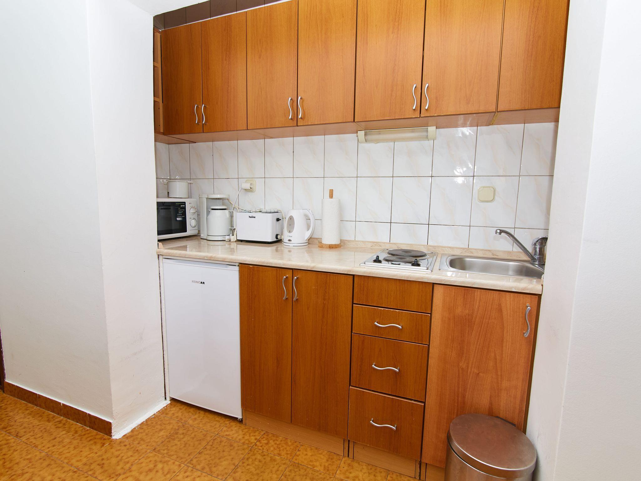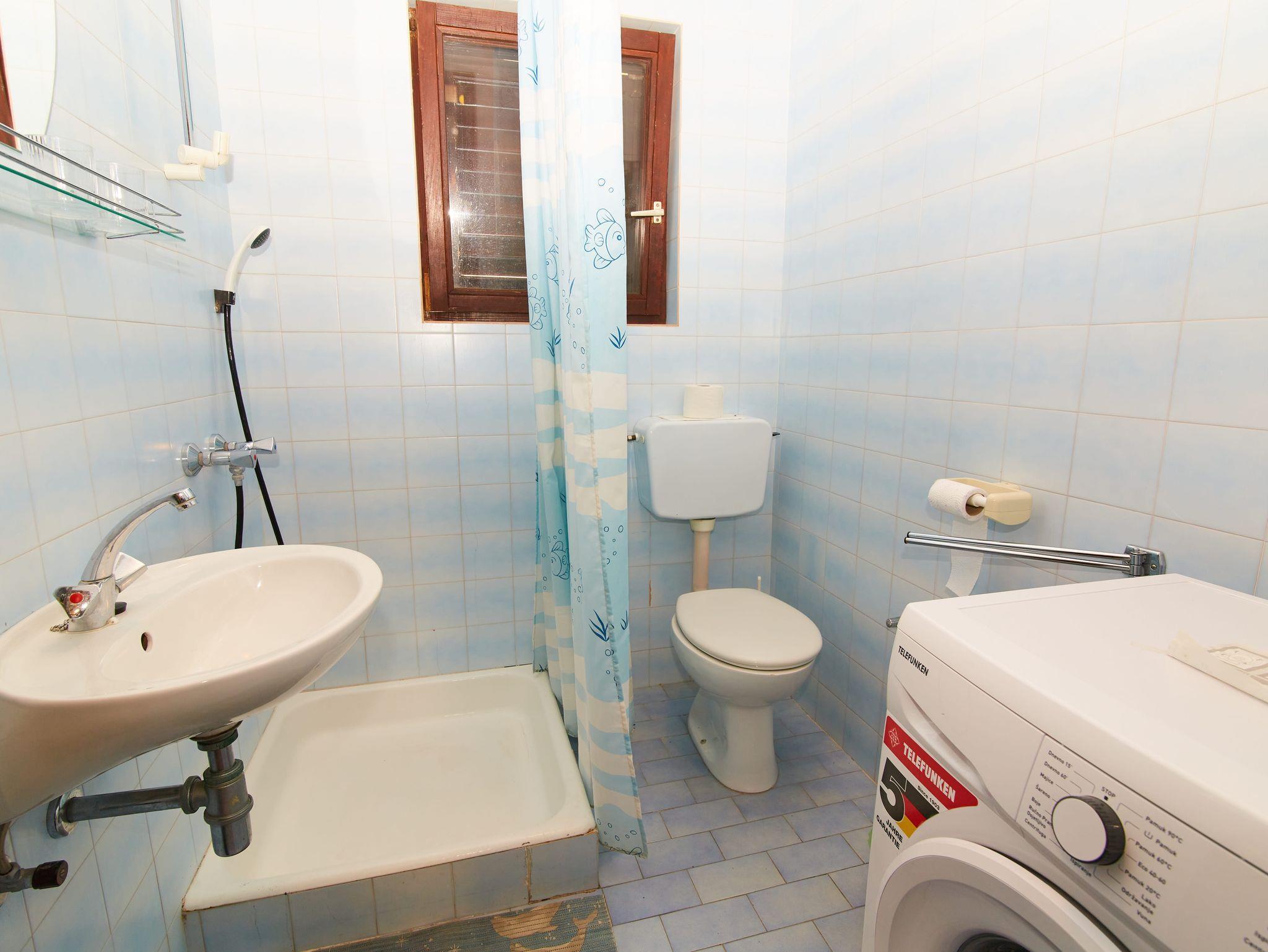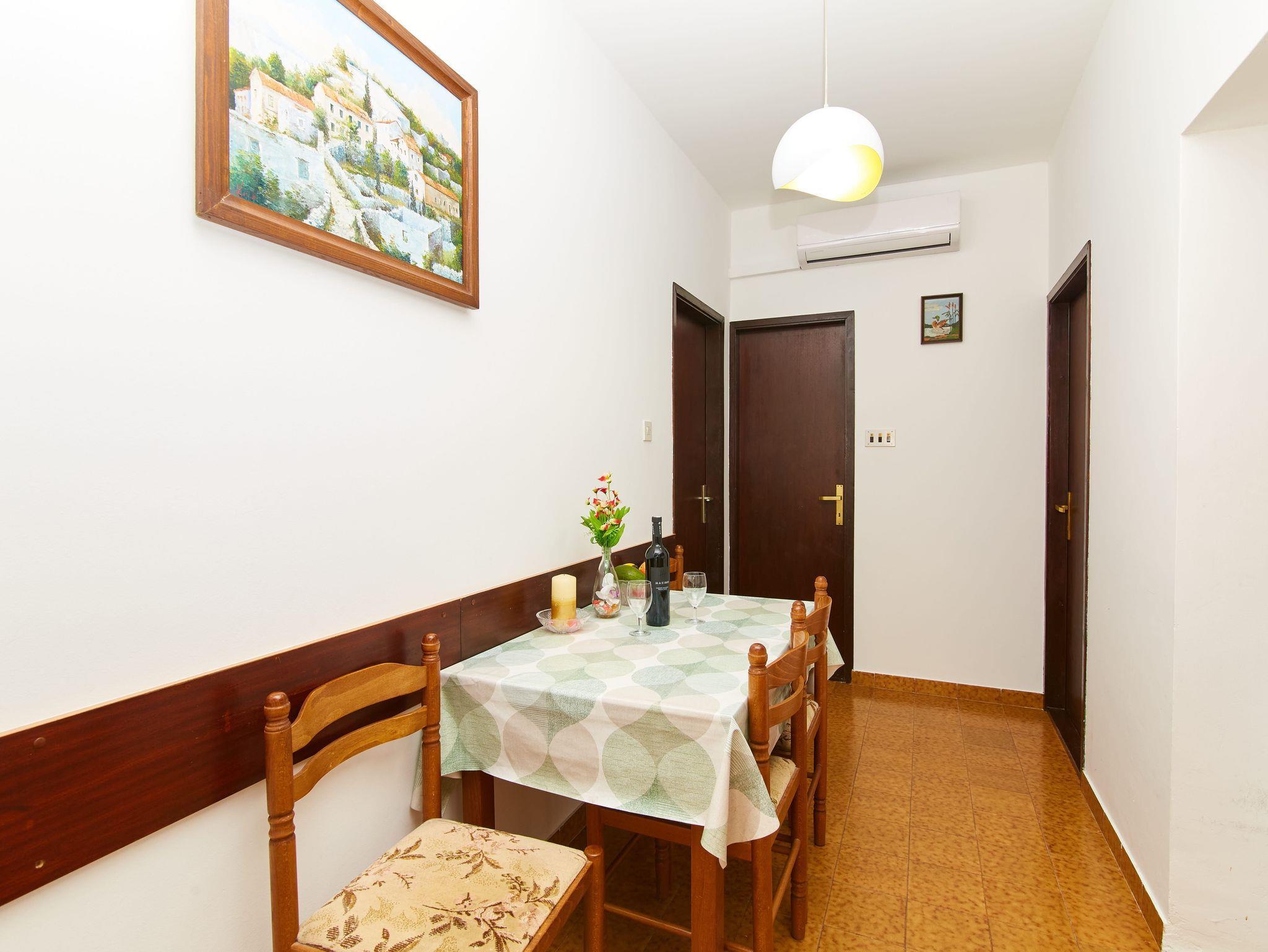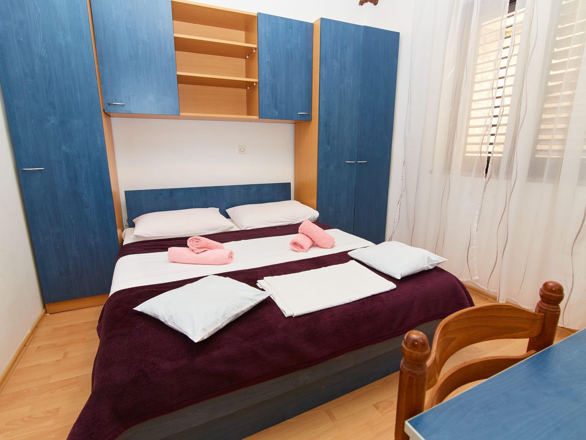 Ferienwohnung bietet Platz für 4 Gäste. Die Betten sind in Schlafzimmern, die es 2 gibt, innerhalb einer Gesamtfläche von 38m2, angeordnet. Die Gäste haben eine eigene Terrasse zur Verfügung, auf der sie in warmen Sommernächten genießen können. Das Apartment bietet Meerblick. Es ist erlaubt, Speisen auf dem Gemeinschafts-Grill vorzubereiten. IM PREIS INBEGRIFFEN: Kurtaxe, Endreinigung, Klimatisierung, Parkplatz, Internet, Kinderbett, Bügeleisen, Bügelbrett, Föhn. VERBINDLICHE ZUSÄTZLICHE KOSTEN: Aufzahlung für Kurzaufenthalte (prozentualer Zuschlag pro Nächtigungsanzahl: 30% - 1, 20% - 2, 10% - 3). Die Verfügbarkeit zusätzlicher Dienstleistungen in Ihrem reservierten Termin und die Preise derselben (falls nicht aufgeführt) müssen im Voraus überprüft werden. Zusätzliche Dienstleistungen die in der Zahlungsaufforderung nicht aufgeführt sind werden direkt beim Vermieter bezahlt, angenommen der Gast nutzt auch diese.