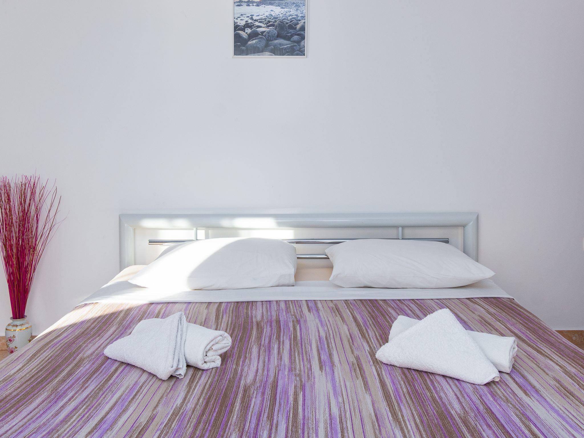 Ferienwohnung bietet Platz für 5 Gäste. Die Betten sind in Schlafzimmern, die es 2 gibt, und in Wohnzimmer, innerhalb einer Gesamtfläche von 68m2, angeordnet. Die Gäste haben einen eigenen Balkon zur Verfügung, auf der sie in warmen Sommernächten genießen können. Das Apartment bietet Meerblick. Es ist erlaubt, Speisen auf dem Gemeinschafts-Grill vorzubereiten. Während ihres Aufenthalts können Gäste das gemeinsam zur Nutzung stehende Schwimmbad benutzen. In der Unterkunftseinheit besteht die Möglichkeit des Mitbringens von Haustieren gegen Aufpreis. IM PREIS INBEGRIFFEN: Kurtaxe, Endreinigung, Klimatisierung, Pool, Parkplatz, Internet, Föhn. UNVERBINDLICHE ZUSÄTZLICHE KOSTEN: Haustiere (10,00 € pro Nacht). Die Verfügbarkeit zusätzlicher Dienstleistungen in Ihrem reservierten Termin und die Preise derselben (falls nicht aufgeführt) müssen im Voraus überprüft werden. Zusätzliche Dienstleistungen die in der Zahlungsaufforderung nicht aufgeführt sind werden direkt beim Vermieter bezahlt, angenommen der Gast nutzt auch diese.
