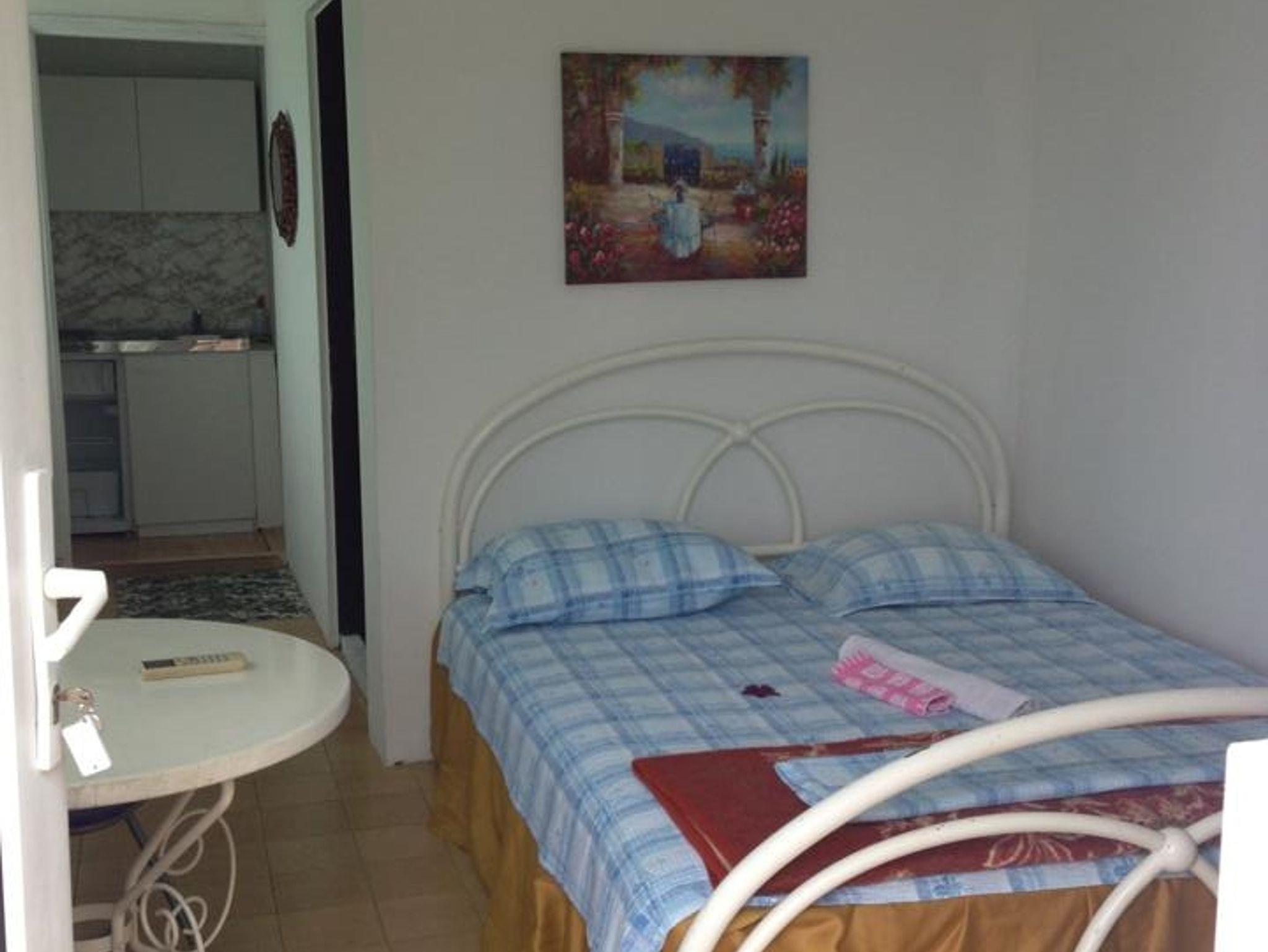 Studio bietet Platz für 2 Gäste. Die Betten sind in Schlafzimmern, die es 1 gibt, innerhalb einer Gesamtfläche von 18m2, angeordnet. Die Gäste haben eine eigene Terrasse zur Verfügung, auf der sie in warmen Sommernächten genießen können. Es ist erlaubt, Speisen auf dem Gemeinschafts-Grill vorzubereiten. IM PREIS INBEGRIFFEN: Kurtaxe, Endreinigung, Klimatisierung, Internet, Bügeleisen, Bügelbrett, Föhn, tragbarer Grill. VERBINDLICHE ZUSÄTZLICHE KOSTEN: Aufzahlung für Kurzaufenthalte (prozentualer Zuschlag pro Nächtigungsanzahl: 30% - 1, 20% - 2, 10% - 3). UNVERBINDLICHE ZUSÄTZLICHE KOSTEN: Wäschewaschen (6,00 € Waschen). Die Verfügbarkeit zusätzlicher Dienstleistungen in Ihrem reservierten Termin und die Preise derselben (falls nicht aufgeführt) müssen im Voraus überprüft werden. Zusätzliche Dienstleistungen die in der Zahlungsaufforderung nicht aufgeführt sind werden direkt beim Vermieter bezahlt, angenommen der Gast nutzt auch diese. Ermäßigung auf den Grundpreis: Gratistag 14=13 (bei einem Aufenthalt von 14 Tagen oder mehr erhalten Sie einen Gratistag für den Aufenthalt bis 31.12.26).