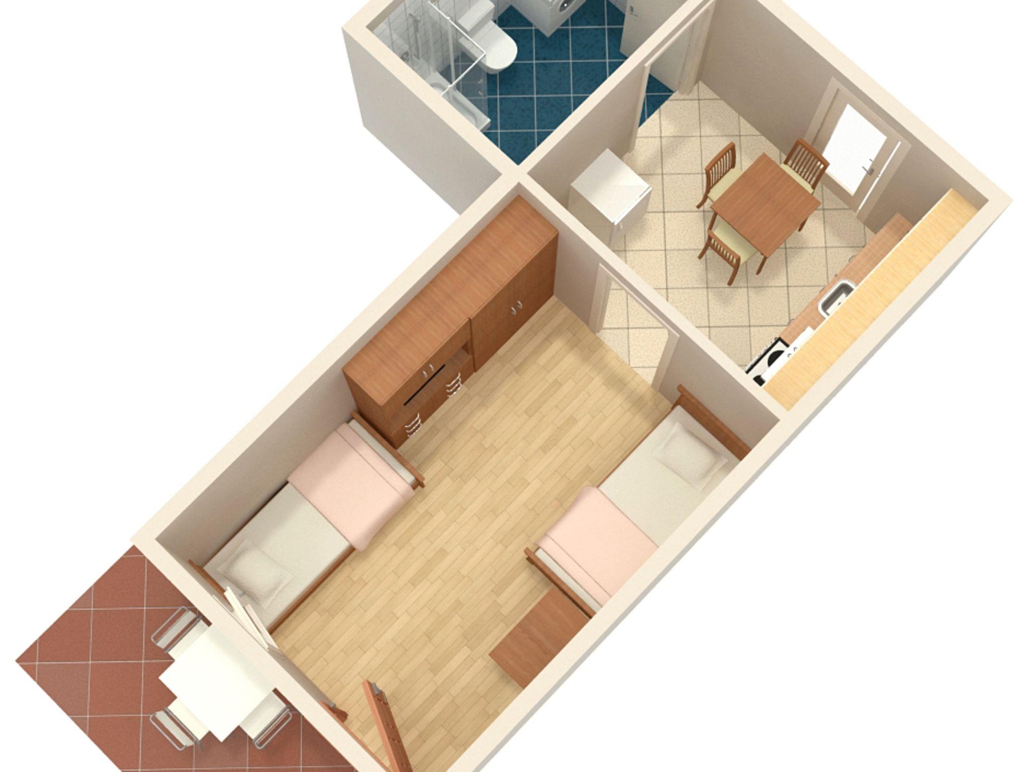 Studio bietet Platz für 3 Gäste. Die Betten sind in Schlafzimmern, die es 1 gibt, und in Esszimmer, innerhalb einer Gesamtfläche von 30m2, angeordnet. Die Gäste haben eine eigene Terrasse zur Verfügung, auf der sie in warmen Sommernächten genießen können. Das Studio-Apartment bietet Meerblick. Es ist erlaubt, Speisen auf dem Gemeinschafts-Grill vorzubereiten. In der Unterkunftseinheit besteht die Möglichkeit des Mitbringens von Haustieren gegen Aufpreis. IM PREIS INBEGRIFFEN: Kurtaxe, Endreinigung, Klimatisierung, Parkplatz, Internet, Bügeleisen, Bügelbrett. VERBINDLICHE ZUSÄTZLICHE KOSTEN: Aufzahlung für Kurzaufenthalte (prozentualer Zuschlag pro Nächtigungsanzahl: 30% - 1, 20% - 2, 10% - 3). UNVERBINDLICHE ZUSÄTZLICHE KOSTEN: Haustiere (10,00 € pro Nacht), Zusatzbett (5,00 € pro Nacht). Die Verfügbarkeit zusätzlicher Dienstleistungen in Ihrem reservierten Termin und die Preise derselben (falls nicht aufgeführt) müssen im Voraus überprüft werden. Zusätzliche Dienstleistungen die in der Zahlungsaufforderung nicht aufgeführt sind werden direkt beim Vermieter bezahlt, angenommen der Gast nutzt auch diese.