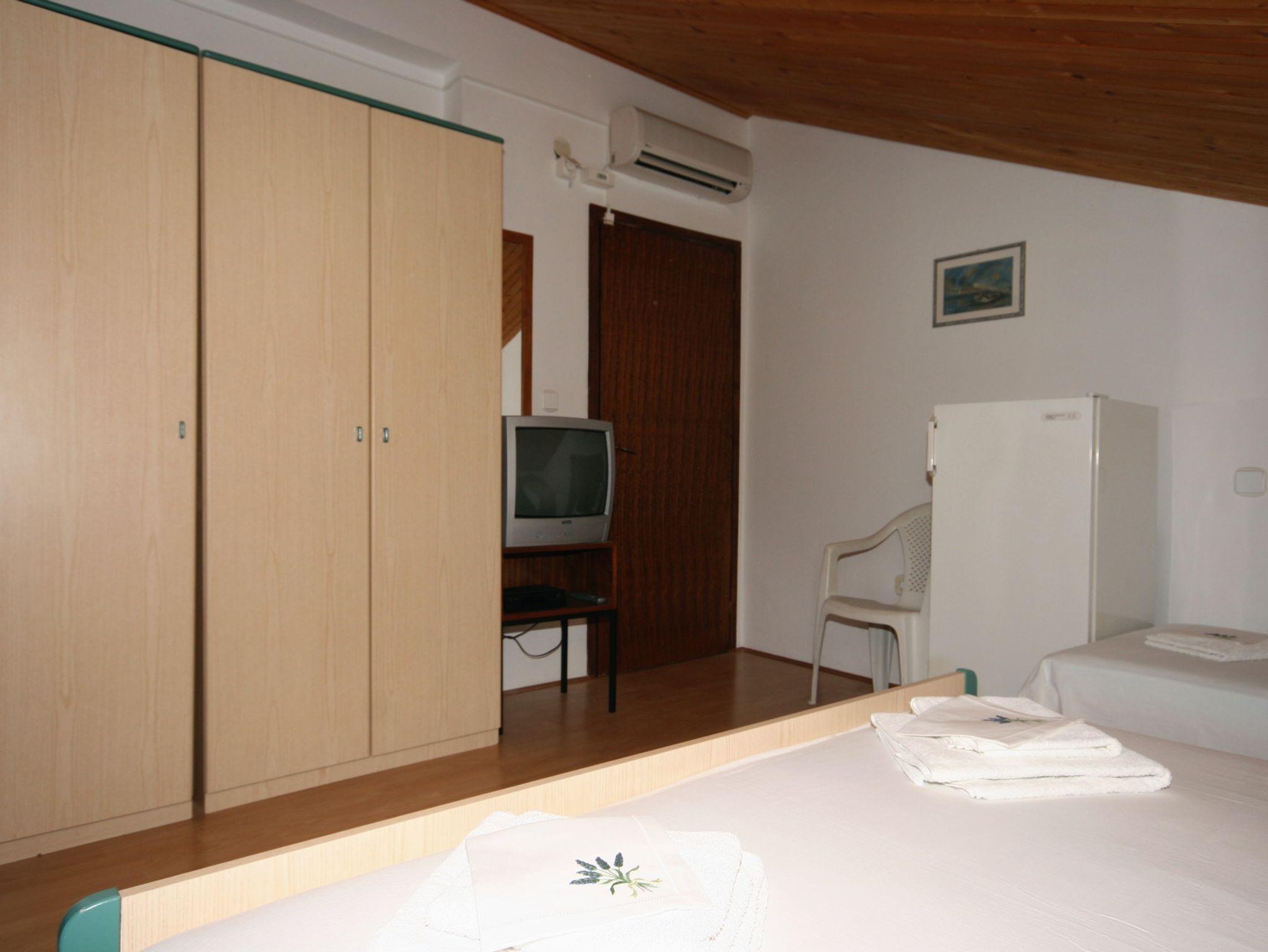 Studio bietet Platz für 3 Gäste. Die Betten sind in Schlafzimmern, die es 1 gibt, innerhalb einer Gesamtfläche von 21m2, angeordnet. Es ist erlaubt, Speisen auf dem Gemeinschafts-Grill vorzubereiten. In der Unterkunftseinheit besteht die Möglichkeit des Mitbringens von Haustieren gegen Aufpreis. Die reservierte Unterkunftseinheit hat keinen Balkon und keine Terrasse. IM PREIS INBEGRIFFEN: Kurtaxe, Endreinigung, Klimatisierung, Internet. VERBINDLICHE ZUSÄTZLICHE KOSTEN: Aufzahlung für Kurzaufenthalte (prozentualer Zuschlag pro Nächtigungsanzahl: 30% - 1, 20% - 2, 10% - 3). UNVERBINDLICHE ZUSÄTZLICHE KOSTEN: Wäschewaschen (5,00 € Waschen), Haustiere (5,00 € pro Nacht). Die Verfügbarkeit zusätzlicher Dienstleistungen in Ihrem reservierten Termin und die Preise derselben (falls nicht aufgeführt) müssen im Voraus überprüft werden. Zusätzliche Dienstleistungen die in der Zahlungsaufforderung nicht aufgeführt sind werden direkt beim Vermieter bezahlt, angenommen der Gast nutzt auch diese. Ermäßigung auf den Grundpreis: Gratistag 14=13 (bei einem Aufenthalt von 14 Tagen oder mehr erhalten Sie einen Gratistag für den Aufenthalt bis 31.12.26).