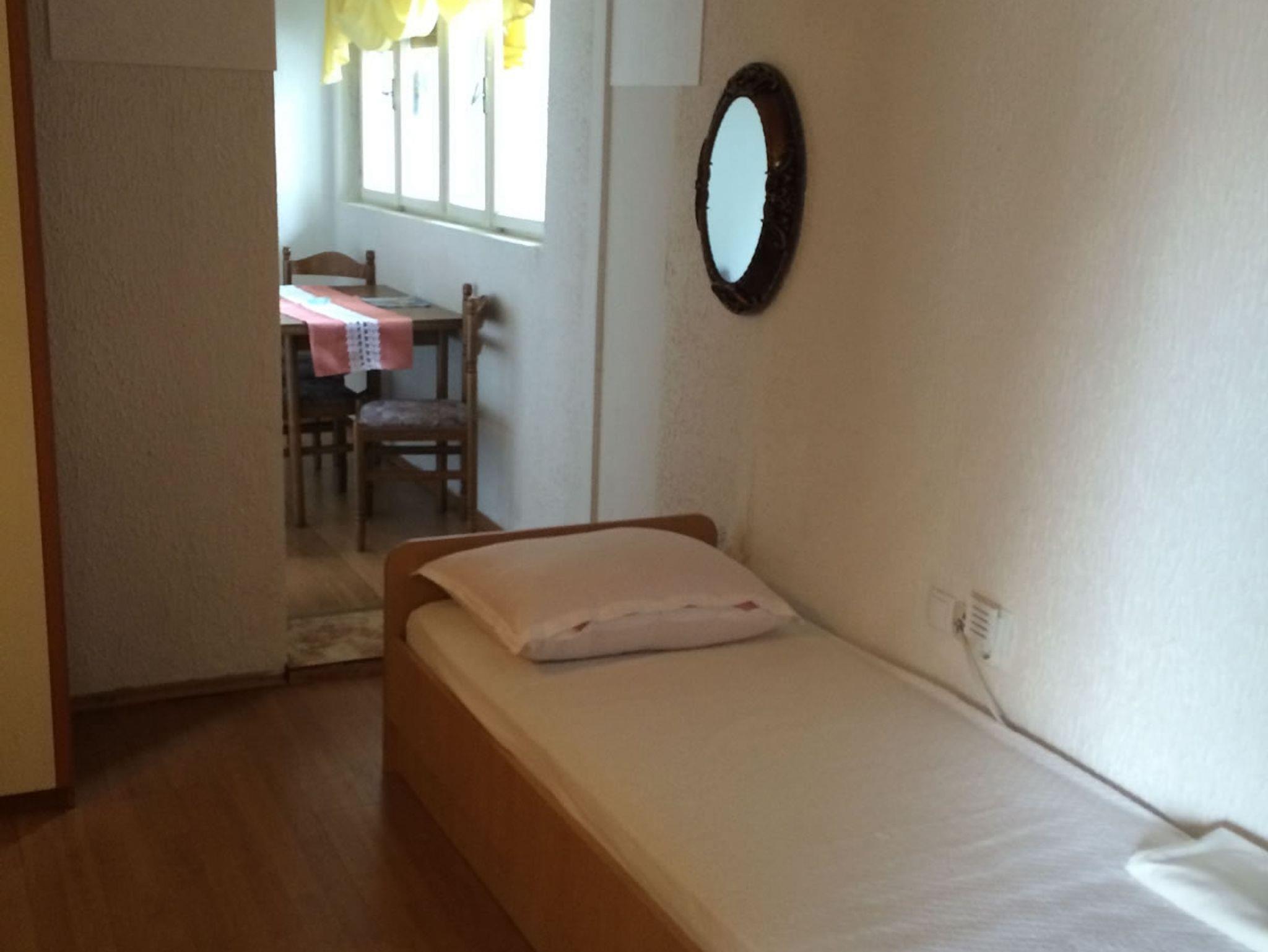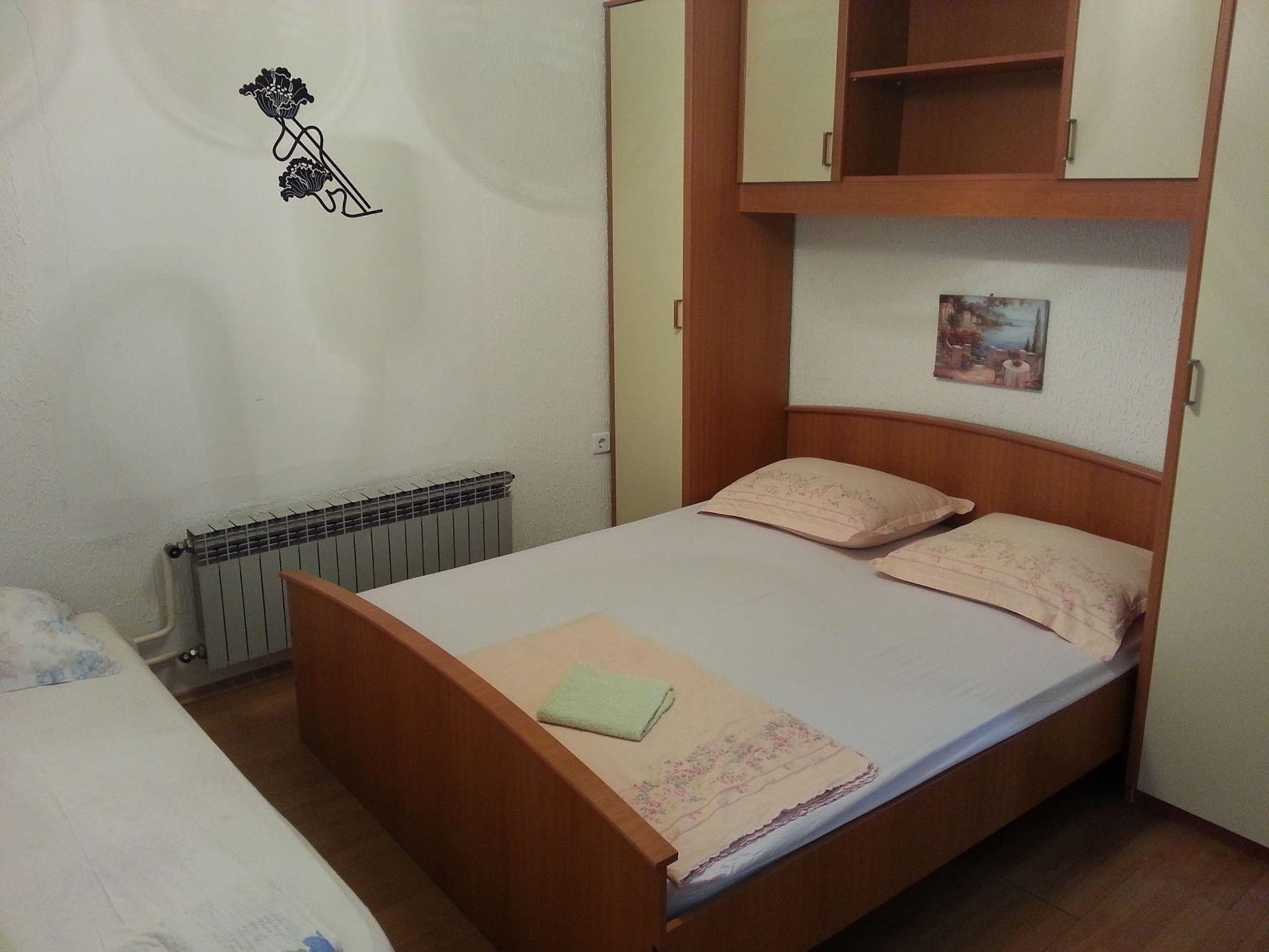 Studio bietet Platz für 5 Gäste. Die Betten sind in Schlafzimmern, die es 1 gibt, und in Wohnzimmer, innerhalb einer Gesamtfläche von 26m2, angeordnet. Es ist erlaubt, Speisen auf dem Gemeinschafts-Grill vorzubereiten. Die reservierte Unterkunftseinheit verfügt über einen gemeinsame Terrasse. Räume der gebuchten Unterkunftseinheit werden nicht in eine Ganze verbunden. IM PREIS INBEGRIFFEN: Kurtaxe, Endreinigung, Klimatisierung, Zentralheizung, Internet, Bügeleisen, Bügelbrett, Föhn, tragbarer Grill. VERBINDLICHE ZUSÄTZLICHE KOSTEN: Aufzahlung für Kurzaufenthalte (prozentualer Zuschlag pro Nächtigungsanzahl: 30% - 1, 20% - 2, 10% - 3). UNVERBINDLICHE ZUSÄTZLICHE KOSTEN: Wäschewaschen (6,00 € Waschen). Die Verfügbarkeit zusätzlicher Dienstleistungen in Ihrem reservierten Termin und die Preise derselben (falls nicht aufgeführt) müssen im Voraus überprüft werden. Zusätzliche Dienstleistungen die in der Zahlungsaufforderung nicht aufgeführt sind werden direkt beim Vermieter bezahlt, angenommen der Gast nutzt auch diese. Ermäßigung auf den Grundpreis: Gratistag 14=13 (bei einem Aufenthalt von 14 Tagen oder mehr erhalten Sie einen Gratistag für den Aufenthalt bis 31.12.26).