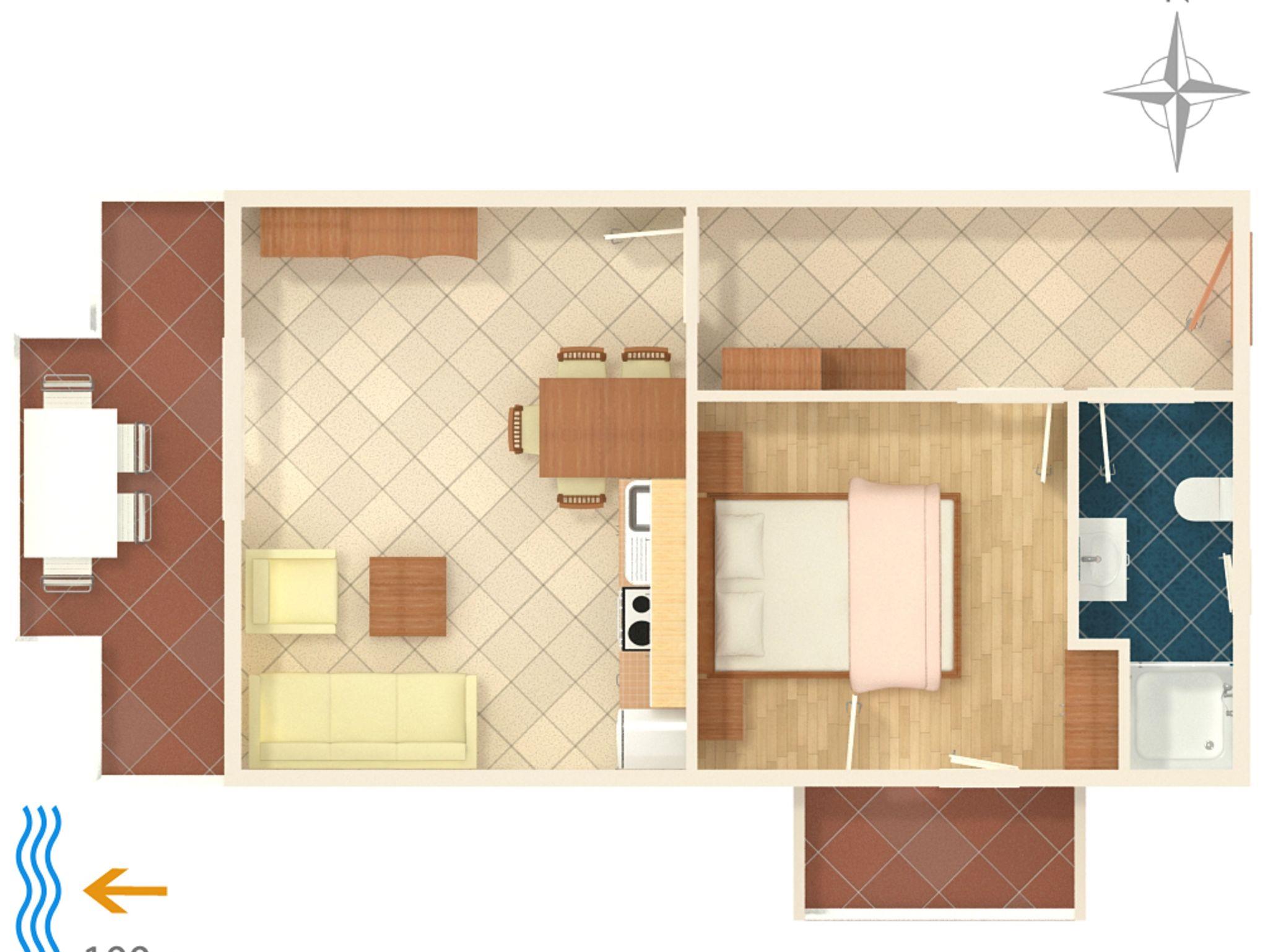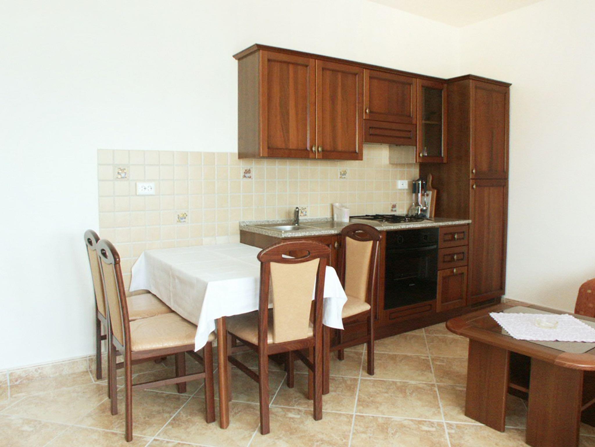 Ferienwohnung bietet Platz für 4 Gäste. Die Betten sind in Schlafzimmern, die es 1 gibt, und in Wohnzimmer, innerhalb einer Gesamtfläche von 42m2, angeordnet. Die Gäste haben eine eigene Terrasse zur Verfügung, auf der sie in warmen Sommernächten genießen können. Das Apartment bietet Meerblick. Es ist erlaubt, Speisen auf dem Gemeinschafts-Grill vorzubereiten. In der Unterkunftseinheit besteht die Möglichkeit des Mitbringens von Haustieren gegen Aufpreis. IM PREIS INBEGRIFFEN: Kurtaxe, Endreinigung, Klimatisierung, Parkplatz, Internet, Bügeleisen, Bügelbrett. VERBINDLICHE ZUSÄTZLICHE KOSTEN: Aufzahlung für Kurzaufenthalte (prozentualer Zuschlag pro Nächtigungsanzahl: 30% - 1, 20% - 2, 10% - 3). UNVERBINDLICHE ZUSÄTZLICHE KOSTEN: Haustiere (10,00 € pro Nacht), Zusatzbett (5,00 € pro Nacht). Die Verfügbarkeit zusätzlicher Dienstleistungen in Ihrem reservierten Termin und die Preise derselben (falls nicht aufgeführt) müssen im Voraus überprüft werden. Zusätzliche Dienstleistungen die in der Zahlungsaufforderung nicht aufgeführt sind werden direkt beim Vermieter bezahlt, angenommen der Gast nutzt auch diese.