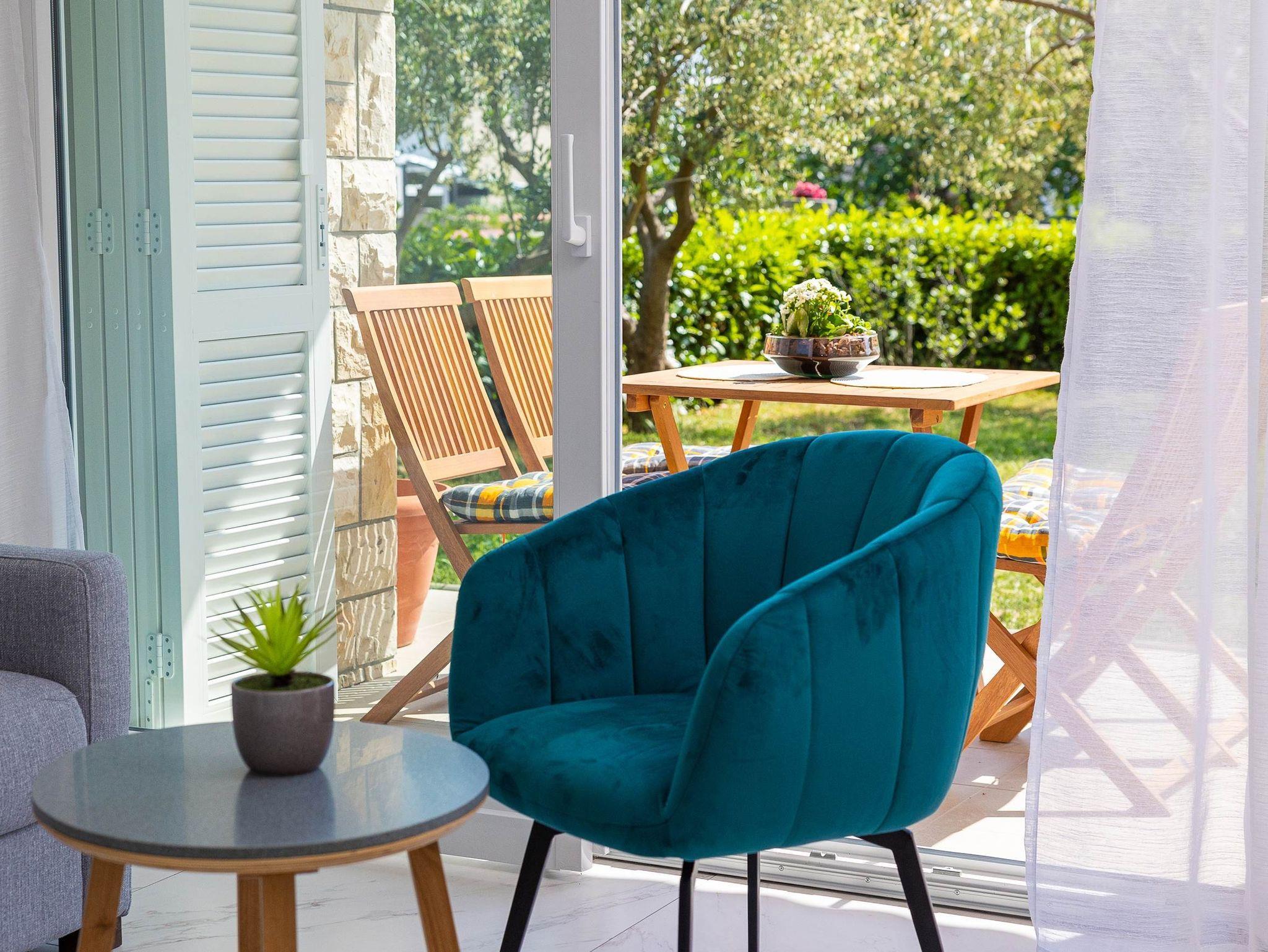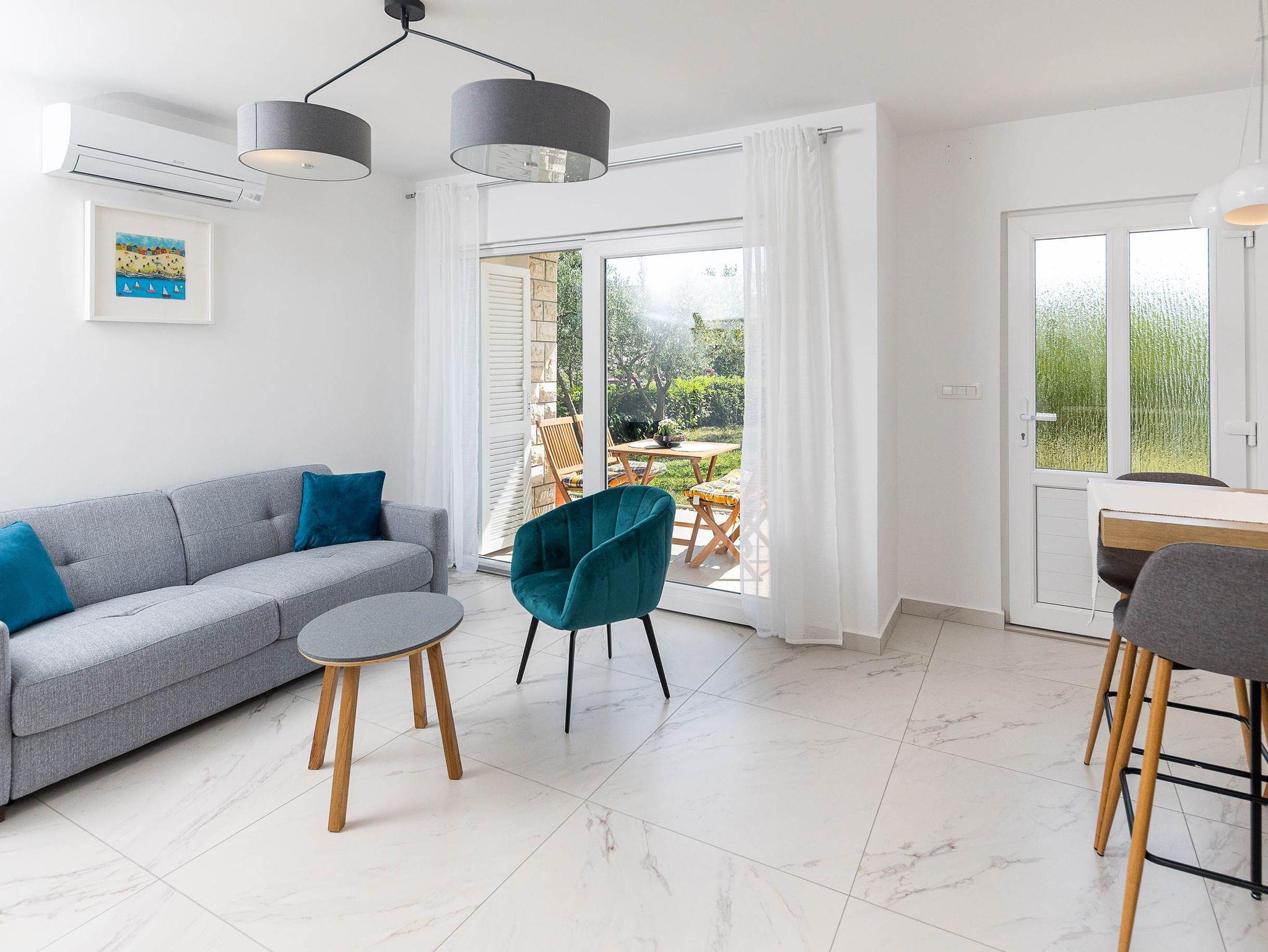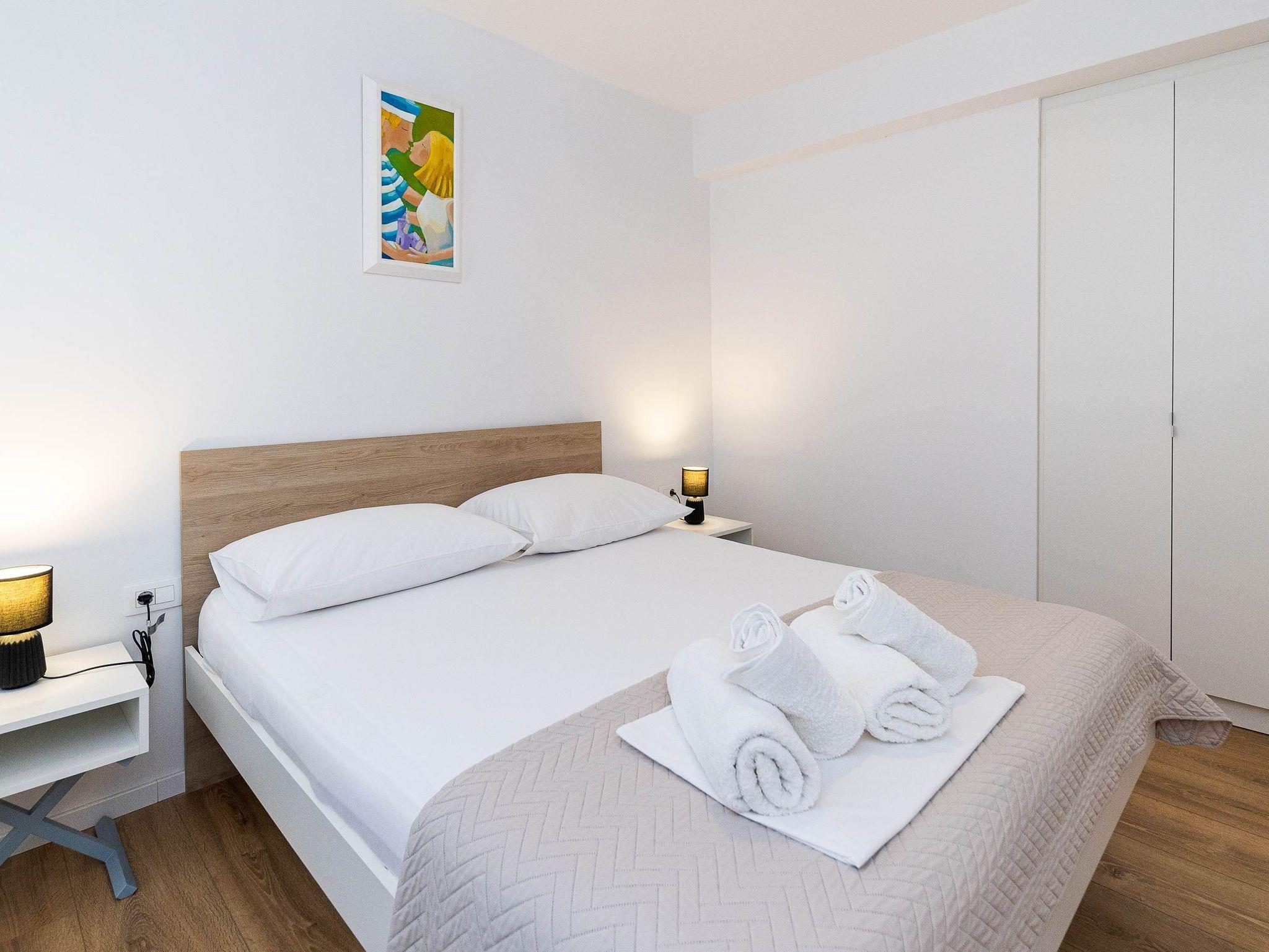 Ferienwohnung bietet Platz für 4 Gäste. Die Betten sind in Schlafzimmern, die es 1 gibt, und in Wohnzimmer, innerhalb einer Gesamtfläche von 36m2, angeordnet. Die Gäste haben eine eigene Terrasse zur Verfügung, auf der sie in warmen Sommernächten genießen können. IM PREIS INBEGRIFFEN: Kurtaxe, Endreinigung, Klimatisierung, Parkplatz, Internet, Bügeleisen, Bügelbrett, Föhn. VERBINDLICHE ZUSÄTZLICHE KOSTEN: Aufzahlung für Kurzaufenthalte (prozentualer Zuschlag pro Nächtigungsanzahl: 30% - 1, 20% - 2, 10% - 3). UNVERBINDLICHE ZUSÄTZLICHE KOSTEN: Wäschewaschen (5,00 € Waschen). Die Verfügbarkeit zusätzlicher Dienstleistungen in Ihrem reservierten Termin und die Preise derselben (falls nicht aufgeführt) müssen im Voraus überprüft werden. Zusätzliche Dienstleistungen die in der Zahlungsaufforderung nicht aufgeführt sind werden direkt beim Vermieter bezahlt, angenommen der Gast nutzt auch diese.