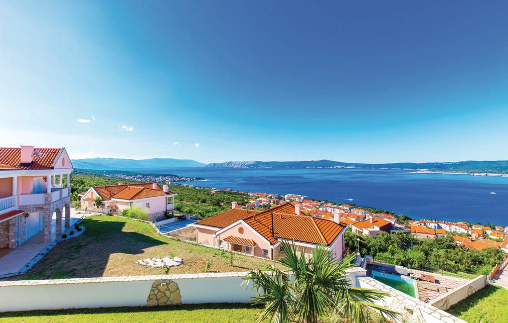 Ferienhaus mit 3 nebeneinander angeordneten Apartments, Terrassen, Balkone, Garten mit Grill, Außenpool (8x4) und Panoramablick auf das Meer die Insel Krk und die Ortschaften Crikvenica, Selce... Jedes Apartment verfügt über einen separaten Eingang, ein klimatisiertes Wohnzimmer mit Küche und Bad im Erdgeschoß sowie die klimatisierten Schlafräume mit eigenen Bädern im Obergeschoß. Vor dem Haus stehen 5 Parkplätze auf Privatgrund zur Verfügung.