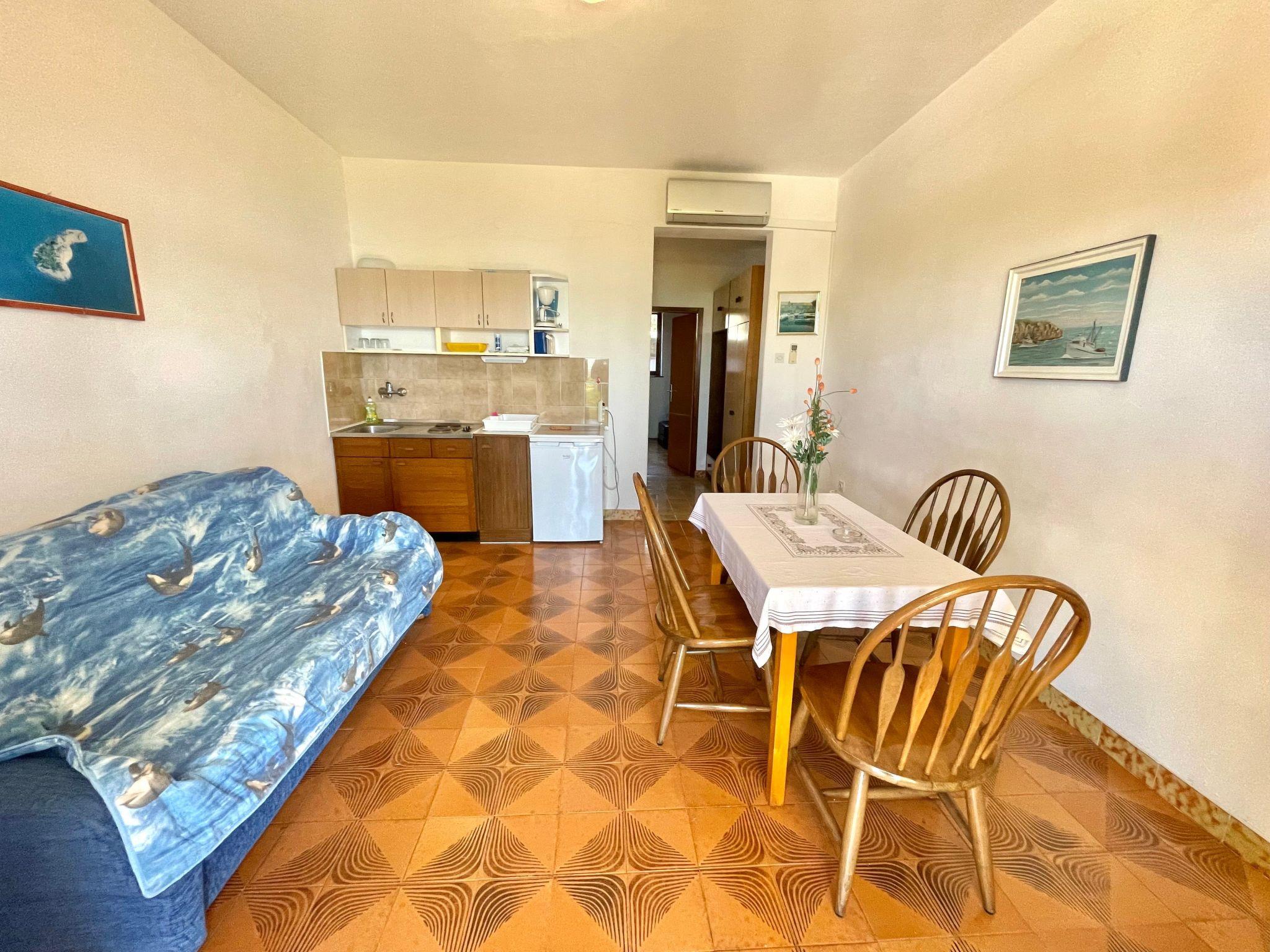 The interior of Apartment Luky 3 promises a pleasant stay with well thought-out amenities. The bedroom is cosily furnished to ensure a peaceful night's sleep after a long day of exploring or relaxing on the beach. The living room offers additional sleeping space and therefore enough room for all guests. A breeze of freshness is provided by the partial air conditioning, which ensures pleasant temperatures inside on warm days. There is also a washing machine for communal use in the building, which is particularly practical for longer stays.