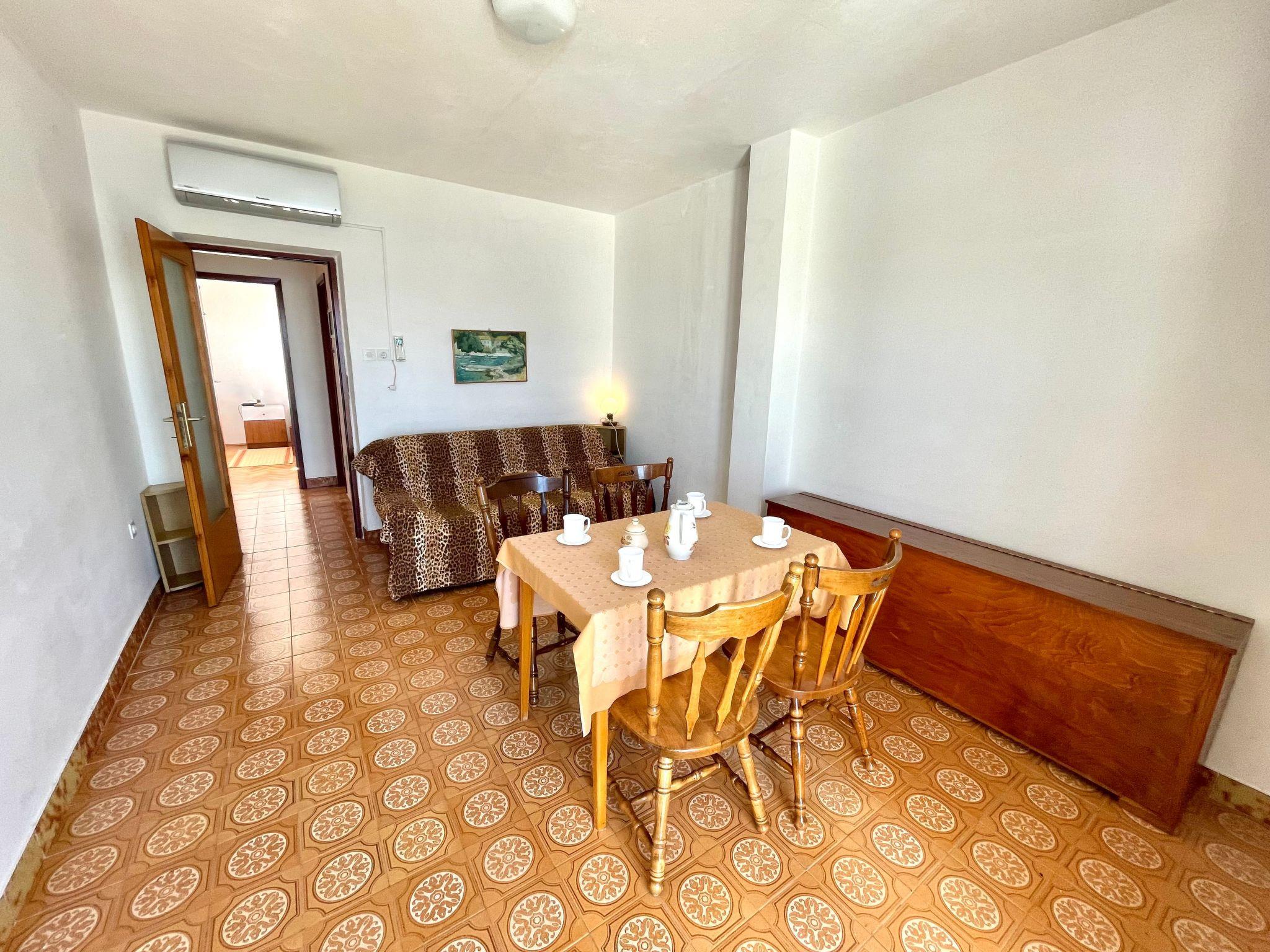 Inside, the flat illustrates a thoughtful layout with a cosy bedroom and an inviting living room. It is equipped with everything necessary to make your stay as comfortable as possible, including partial air conditioning to provide a refreshing breeze during the warm summer months. The ambience within the flat is designed to give you a feeling of home away from home while you enjoy the beauty of Croatia.