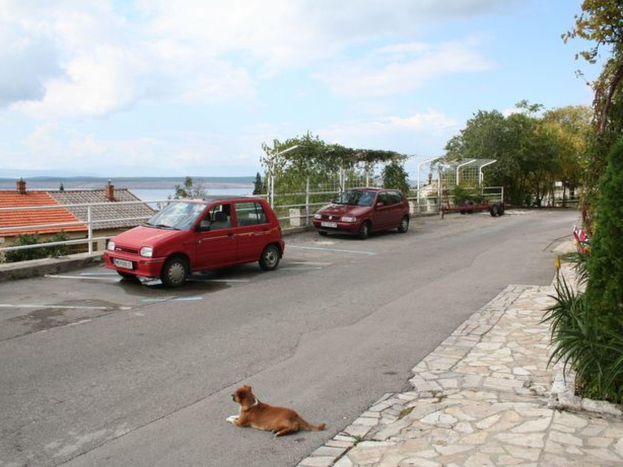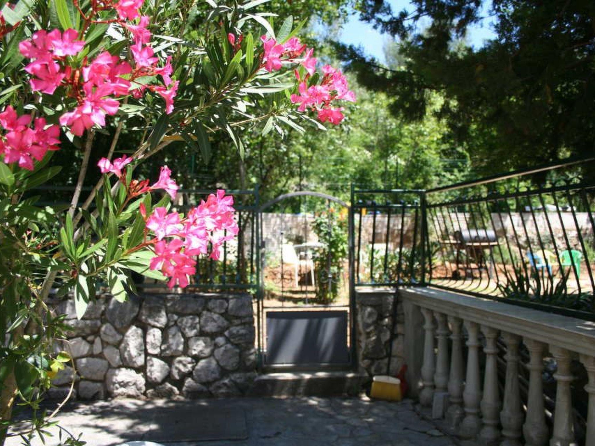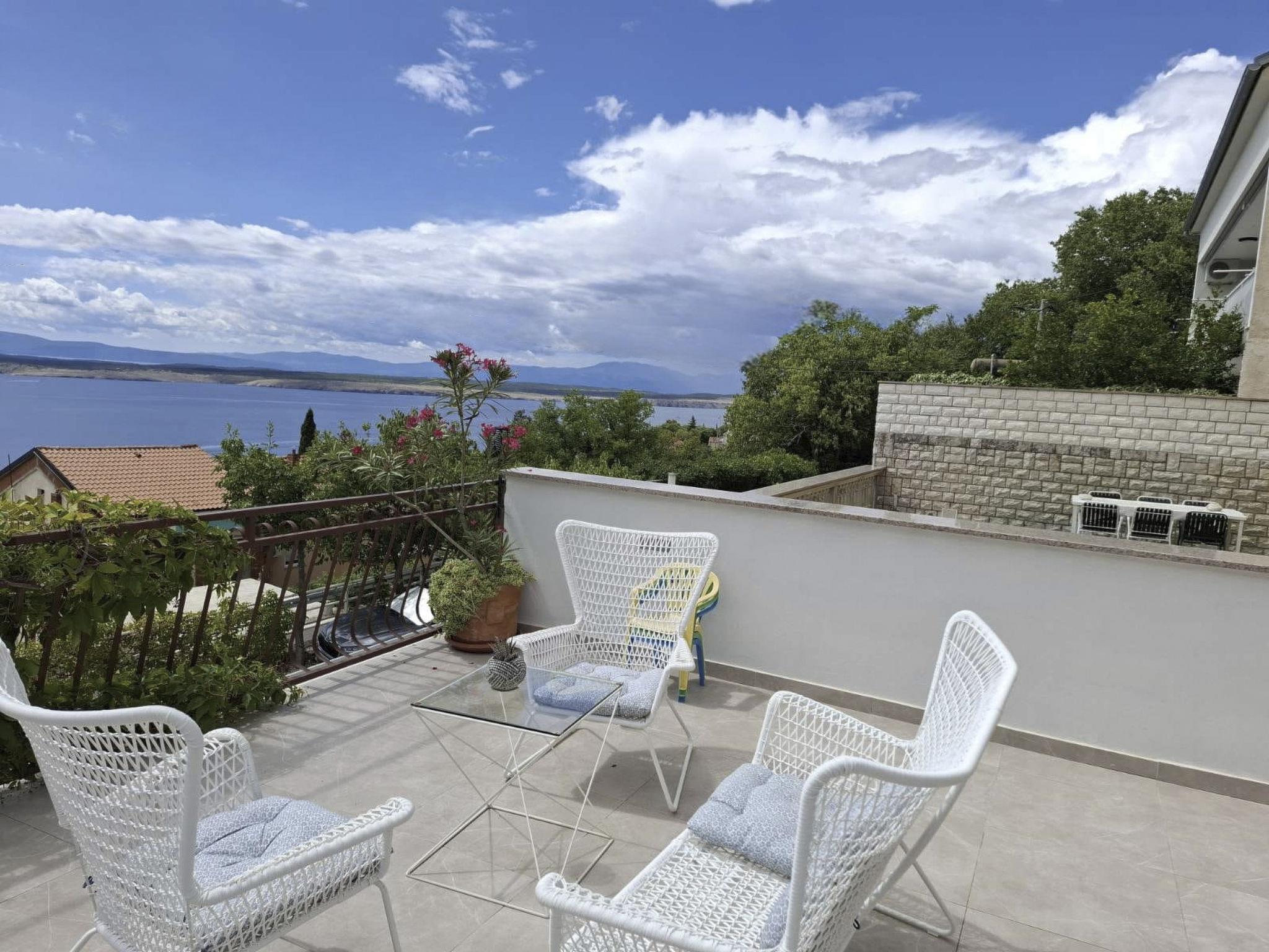 The outdoor area of the flat invites you to relax and enjoy. A small terrace on the mezzanine floor provides the perfect backdrop for sunbathing or cosy evening hours with a glass of wine while enjoying the view of the sea and the island of Krk. A few steps up, there is a small, cosy garden surrounded by greenery, equipped with a barbecue, which invites you to socialise.