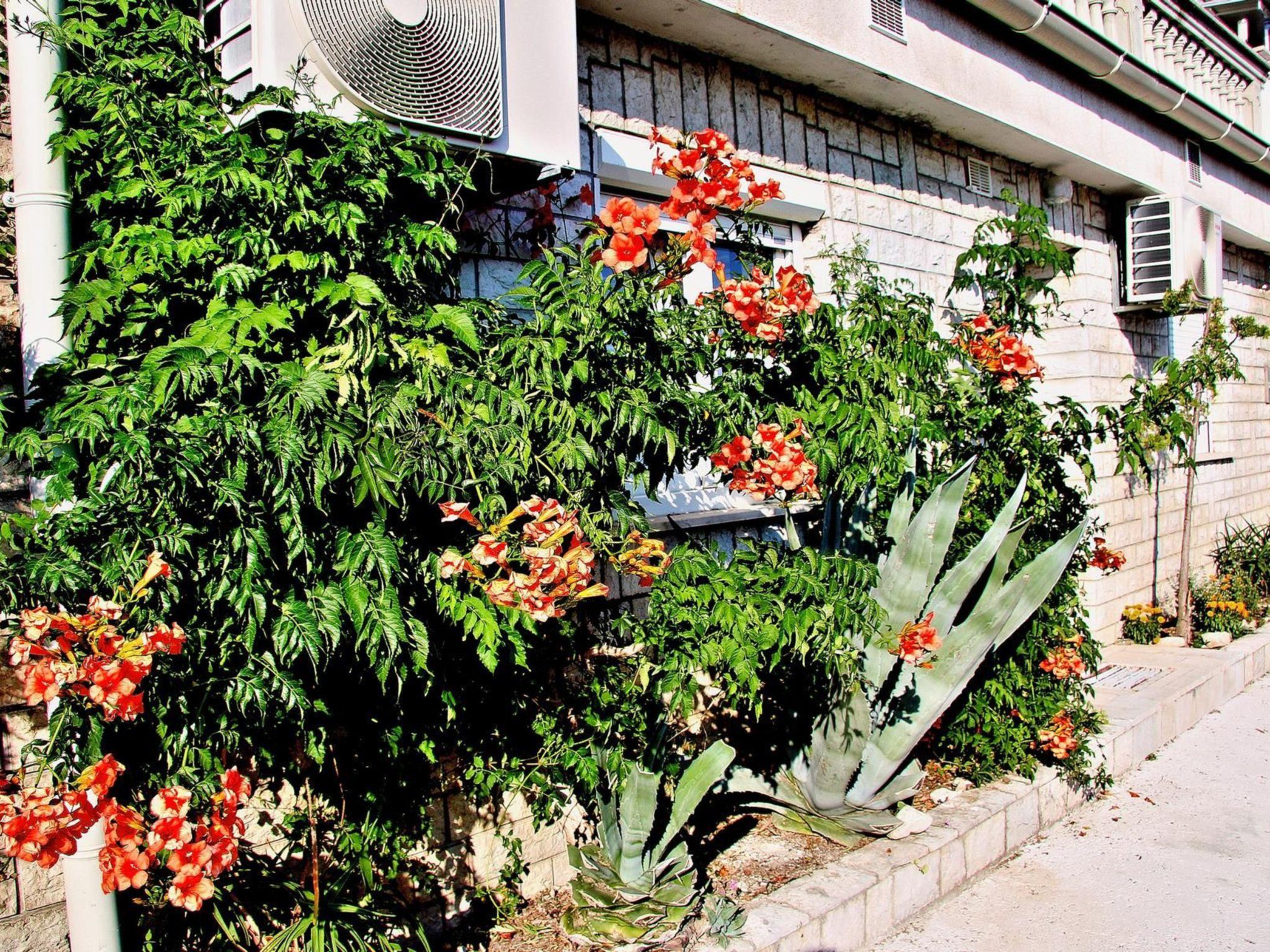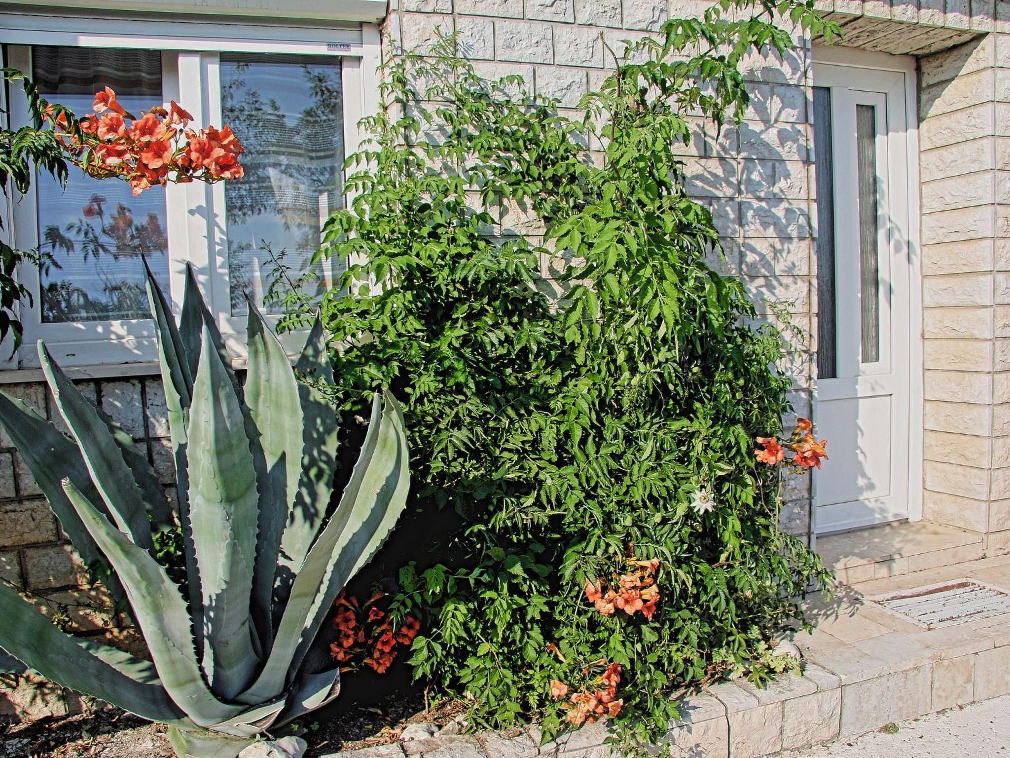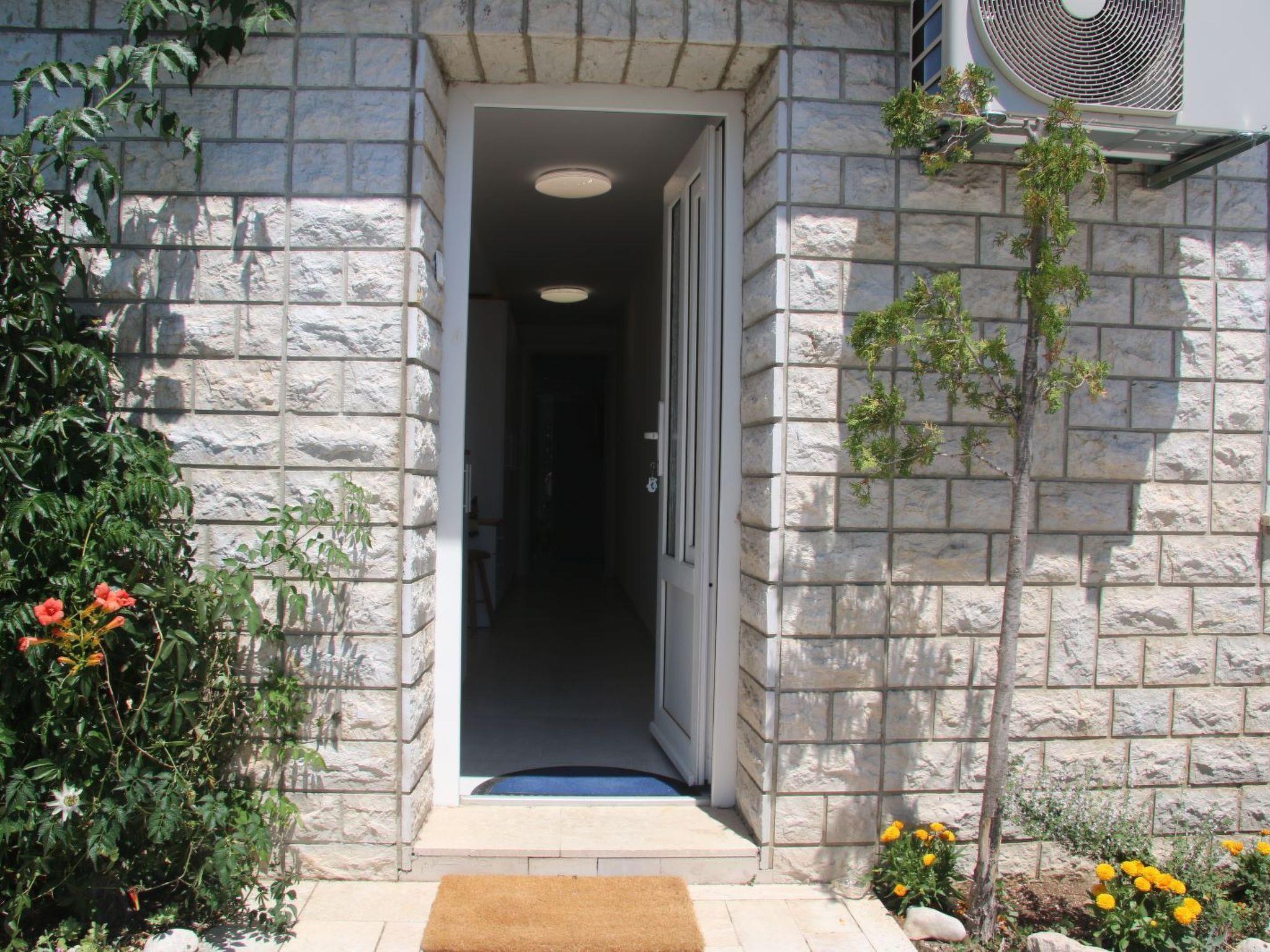 The outdoor area of the flat invites you to relax and enjoy. A small terrace on the mezzanine floor provides the perfect backdrop for sunbathing or cosy evening hours with a glass of wine while enjoying the view of the sea and the island of Krk. A few steps up, there is a small, cosy garden surrounded by greenery, equipped with a barbecue, which invites you to socialise.