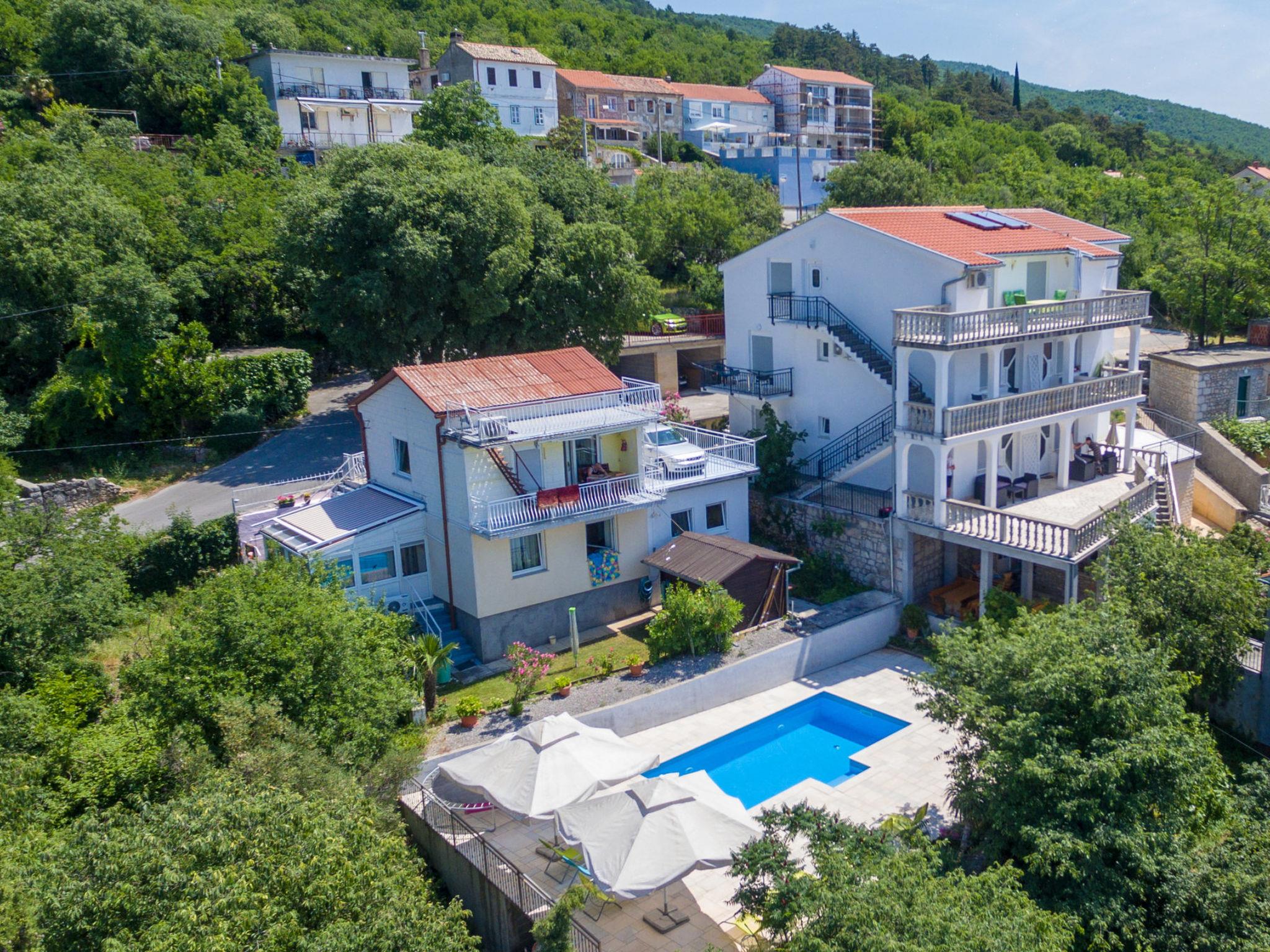 This 80 m² two-storey apartment is located in Dramalj the suburb of Crikvenica. Dramalj is located next to Crikvenica and belongs to the municipality of Crikvenica.There is also a shared terrace and swimming pool that can be used by all guests. The swimming pool is in funktion from 01.06.-30.09.Parking and barbecue facilities are also available.The 80 m² are divided over two floors as follows:First Floor:This floor consists of a living/dining room with a kitchen and a separate toilet. The living room can be opened with a balcony door, giving you a so-called French balcony on this floor.2nd floor:The 2nd floor includes two bedrooms and a bathroom. From this floor you have access to your own balcony.Outdoor area:A second shared terrace, which is also covered and furnished is located near the beautiful swimming pool area. The pool area offers free sun loungers and a barbecue.DETAILED DESCRIPTION:Living area:Living/dining room and kitchen are one room, sofa, sea view, tiles, satellite TVKitchen:Kitchen, dishes, kitchen towels, electric stove, cooking rings: 2, refrigerator with freezer, filter coffee machineBedrooms:Double room with double bed, balcony, sea view, tilesDouble room with double bed, sea view, tilesBathrooms:Bathroom with toilet, showerSeparate toiletBalcony/terrace:Own balcony, sea view, seating, parasol, balcony size: 4 m², shared terrace, covered, sea view, one floor down, seating, chairs, parasol, terrace size: 50 m²More information:Garden for use, barbecue, parking on the property, swimming pool, swimming pool size: 26 m², pets not allowed, air conditioning, daily fee for air cobditiong: 7.00 euro, owner lives in the same house, bed linen available, towels available, washing machine at the landlord for a fee: 4.00 euro, internet via W- LANSmoking is only permitted outside in this apartment.Distances:To the sea 700 m, sandy beach 3000 m, fine pebble beach 800 m, pebble beach 800 m, rocky beach 700 m, center 3000 m, restaurant 770 m, supermarket 450 m, boat mooring 700 m, diving center 3000 m, disco 4000 m
