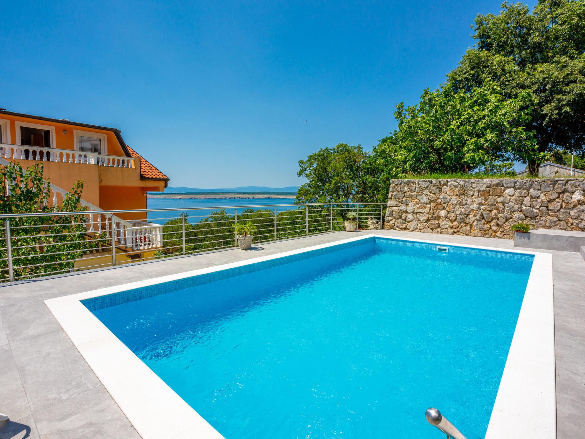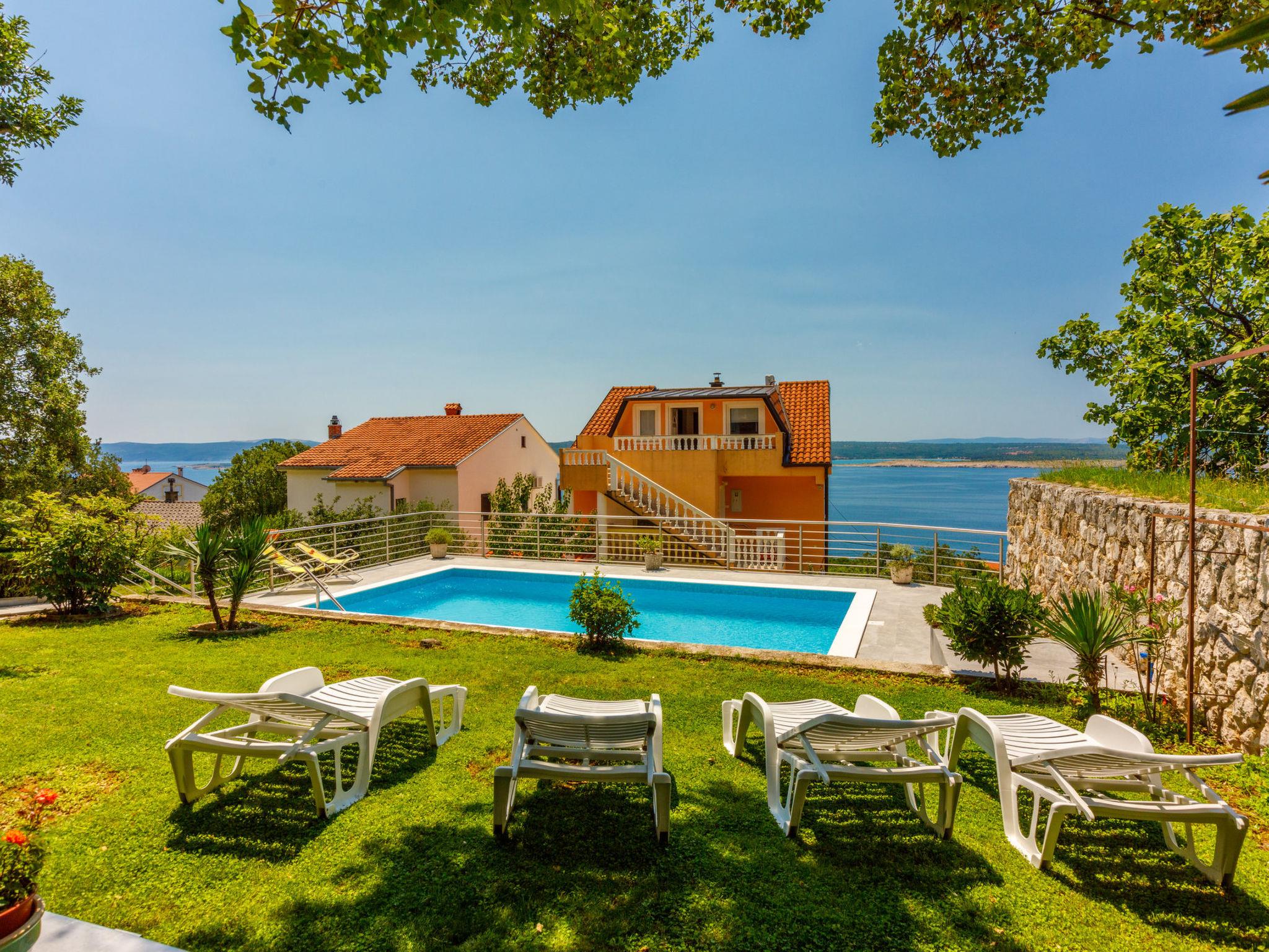 Not far from the sea and the quiet bays of the Kacjak peninsula, this beautiful holiday apartment awaits you, which is suitable for up to six people and is also equipped with a swimming pool. The apartment has a cozy living and dining room with sea views and access to the balcony, two bedrooms, a bathroom and a hallway.Another highlight is the private balcony and a spacious terrace, which is located in the garden and is equipped with a grill - perfect for sociable evenings outdoors. Outside you can relax on a covered terrace with a table and chairs for six people while you enjoy the beautiful view and the peace and quiet. The 32 m² swimming pool offers refreshment on warm days, and around the pool there are six sun loungers and a lawn for relaxing in the sun.The facilities include air conditioning, which is included in the price, and free WiFi. A washing machine can be used after consultation with the landlord. Unfortunately, pets are not allowed in the apartment and smoking is only permitted outside.This holiday apartment combines modern comfort with an idyllic location and is the ideal place to enjoy a relaxing holiday. FurnishingLiving area Living and dining room are one room Sofa bed for two people balcony Sea view parquetkitchen kitchen dishes Kitchen towels Electric cooker Cooking plates: 4 Oven Fridge with freezer Filter coffee machine water heater Toasterbedroom Double room with double bed, balcony, sea view, parquet Double room with double bed, parquetbathroom Bathroom with toilet, bathtubBalcony & terrace own balcony covered Sea view Seating parasol Balcony size: 12 m² shared terrace covered one floor down Seating Terrace size: 20 m²Further information Garden for use grill Bring a grill Parking on the property Swimming pool Swimming pool size: 32 m² Outdoor shower Pets not Allowed Air conditioner is included in the price Heating is included in the price Owner lives in the same house Sheets available Towels available hairdryer Washing machine at the landlord (after consultation) Internet via WiFi