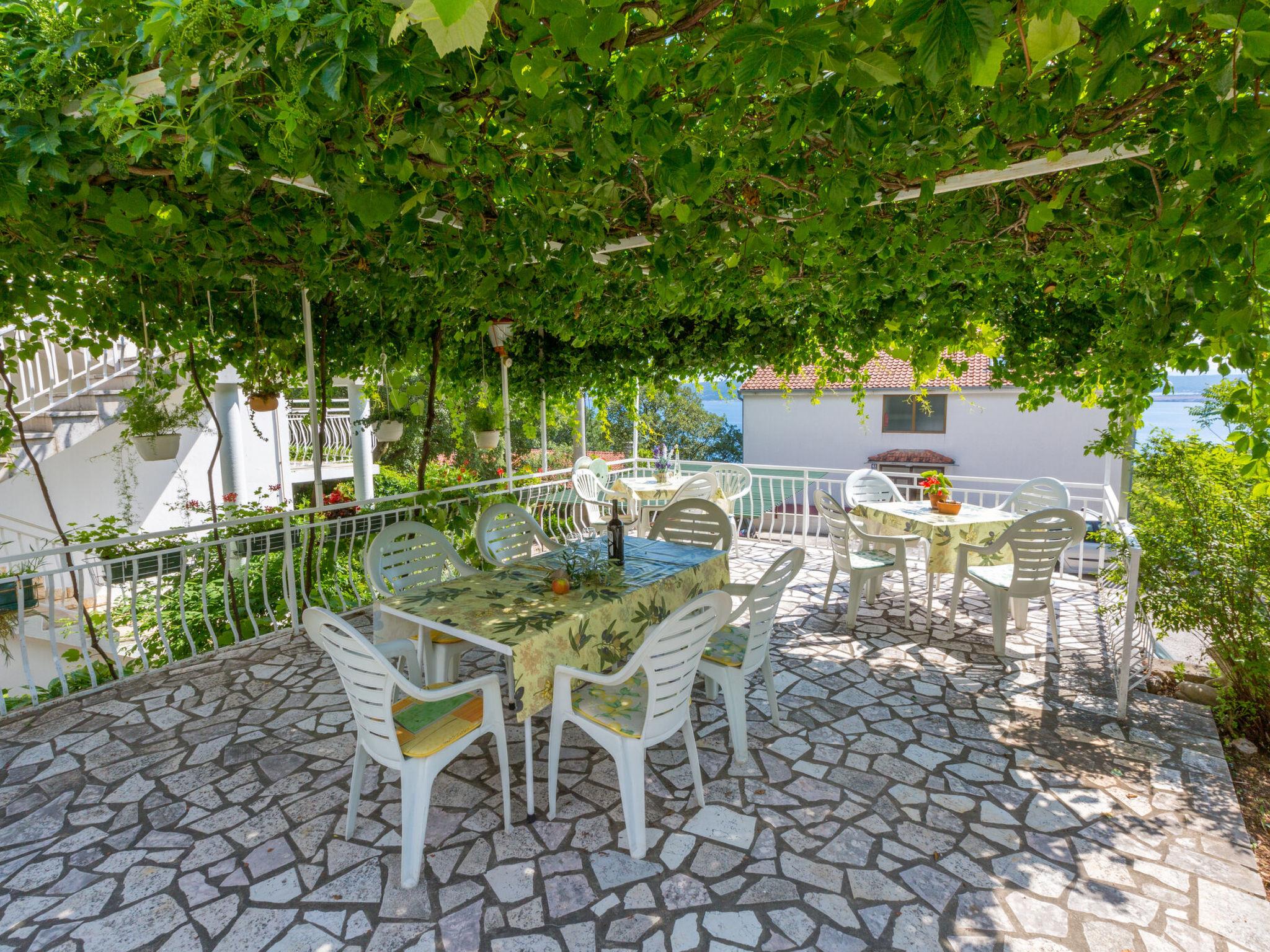 Surrounded by Mediterranean plants, this house is located in Dramalj, only a few minutes' walk from the nearest beach.The pretty studio apartment is located on the 1st floor and is equipped with a double bed, a kitchenette, a bathroom with shower and a small balcony.Living area:Living room, bedroom and dining room are one room, kitchenette, double bed, satellite TVKitchen:Kitchen, dishes, kitchen towels, electric cooker, hot plates: 2, refrigerator with freezer, filter coffee machineBathroom:Bathroom with toilet, showerBalcony / terrace:Private balcony, covered, sea view, seating, shared terrace - sea view, seating, parasolThere is a possibility for the guests of all units to use the garden, the grill and the shady terrace at any time.The parking space on the property is also reserved.Garden for use, barbecue, parking on the property, only small pets allowed for a fee, owner lives in the same house, aircondition, suitable for allergy sufferers, bed linen available, towels available, Internet via W-LANSandy beach 2500 m, fine pebble beach 700 m, pebble beach 500 m, rocky beach 700 m, concrete beach 600 m, center 3000 m, restaurant 300 m, supermarket 300 m, boat mooring 600 m, diving center 2000 m, discotheque 3000 m