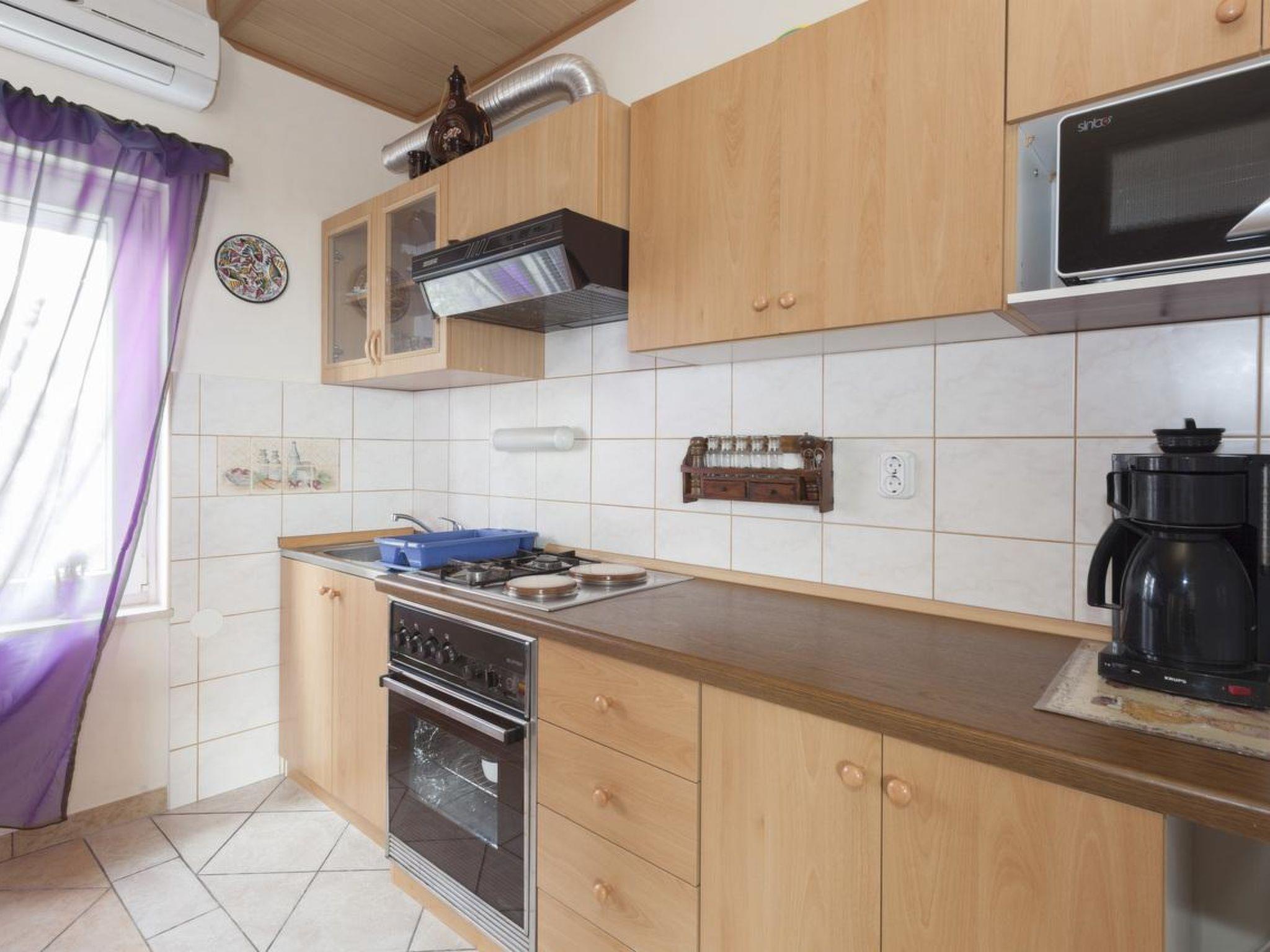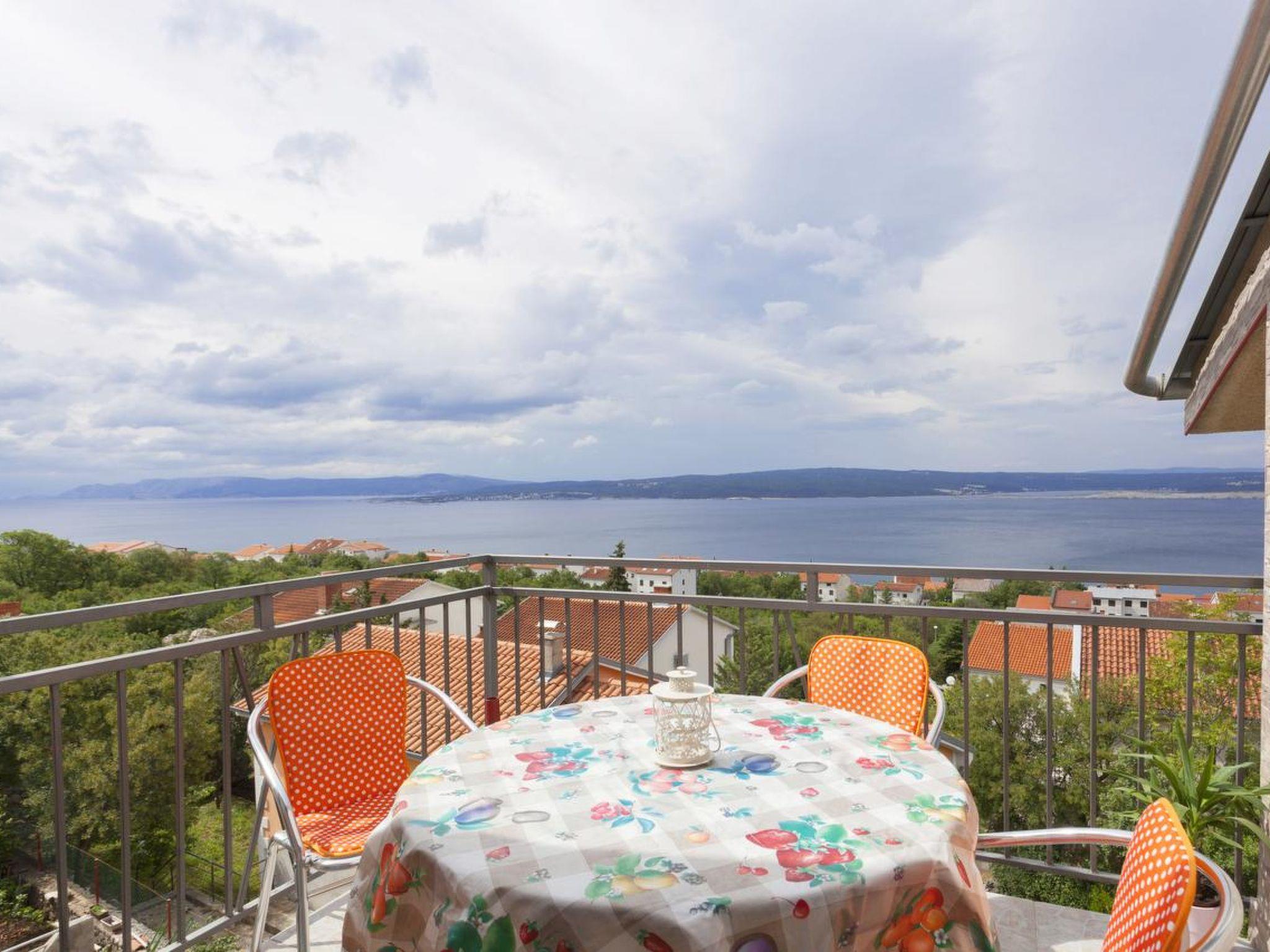 This beautiful holiday accommodation for 4 people is located in Dramalj near Crikvenica.50 m² in the attic of the house is divided into two bedrooms, a bathroom and a dining room with a kitchen.The apartment is equipped with satellite TV, WiFi internet, grill and microwave. The dining area leads to the spacious terrace, which is furnished with a parasol, loungers and patio seating.Living area:Living / dining room and kitchen are in one room, couch, balcony, tiles, satellite TVKitchen description:Kitchen, dishes, kitchen towels, combined electric / gas cooker, hot plates: 4, oven, refrigerator with freezer, filter coffee machine, microwave, toasterBedroom:Double room with double bed, parquetDouble room with double bed, parquetBathroom:Bathroom with toilet, showerBalcony / Terrace:private balcony, sea view, seating, parasol, balcony size: 6 m²A parking space for the vehicle is on the property in the courtyard.Barbecue, you can bring your own barbecue, parking on the property, pets allowed for a daily fee of 7 eur, heating, air conditioning for a daily fee of 6 eur, owner lives in the same house, bed linen available, towels available, washing machine in apartment, washing machine at the landlord for a fee of 3 eur, internet via W-LANSandy beach 2500 m, fine pebble beach 700 m, pebble beach 700 m, rocky beach 730 m, concrete beach 730 m, center 3000 m, restaurant 830 m, supermarket 400 m, diving center 2500 m, busy street 150 m