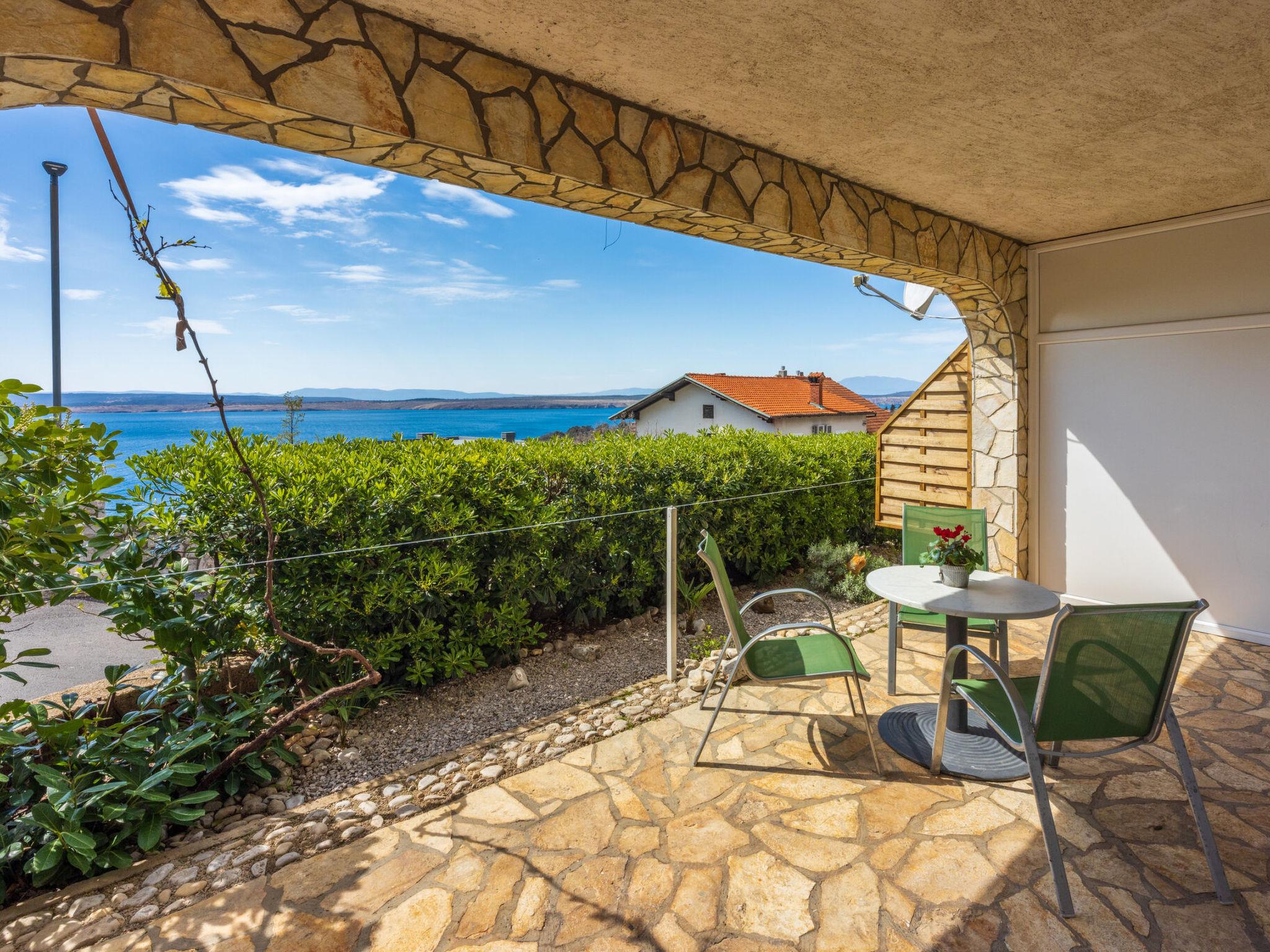 The apartment is located in a very quiet district of Kacjak, so it is ideal for a quiet and relaxing holiday. The nearest beach is only a few meters away.The apartment is for 2 people and is divided into a living and sleeping area, equipped kitchen and a bathroom. The large terrace offers a beautiful sea view and is covered and with chairs.The parking lot is on the property. Furnishingliving areaLiving, sleeping and dining room are in one room, terrace, sea view, tiles, satellite TVKitchenDishes, kitchen towels, electric cooker, hotplates: 2, refrigerator with freezer compartment, filter coffee machine, kettlebedroomDouble room with double bed, terrace, tiles, open bedroombathroomBathroom with toilet, showerbalcony & terraceown covered terrace, sea view, seating, terrace size: 10 m²Further informationBarbecue, parking on the property, pets not allowed, air conditioning included in the price, owner lives in the same house, bed linen available, towels available, washing machine at the landlord for a fee: 3.00 €, Internet via W- LANDistances:Sandy beach 3,5 km, fine pebble beach 200 m, pebble beach 865 m, rocky beach 120 m, concrete beach 120 m, center 5 km, restaurant 120 m, supermarket 800 m, diving center 3,5 km, disco 5 km