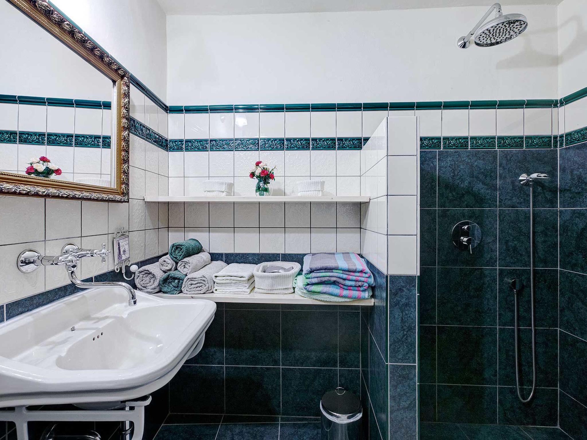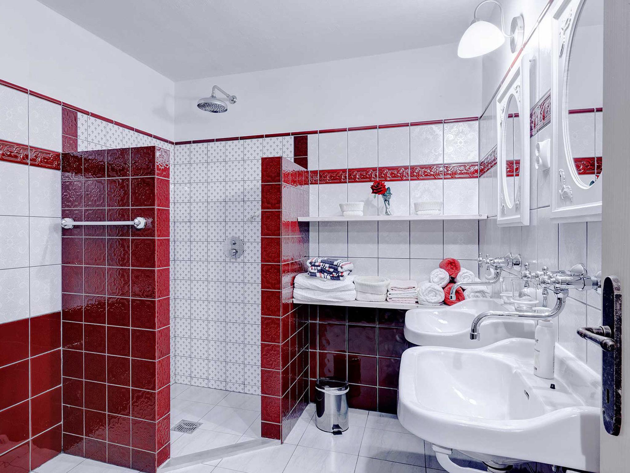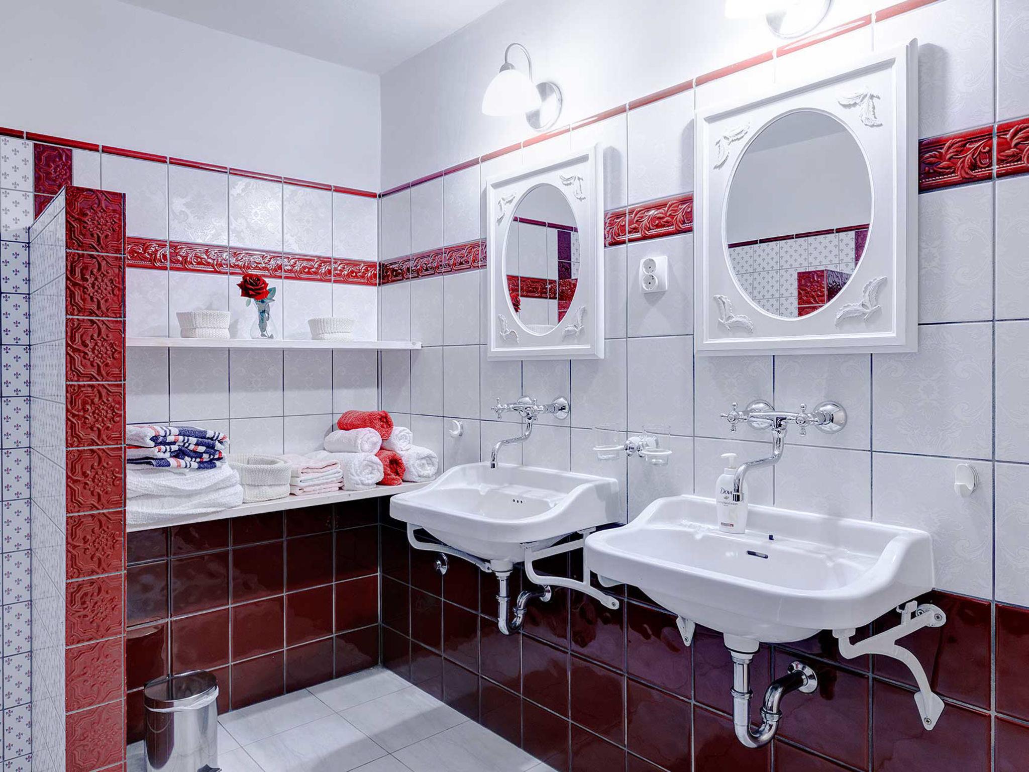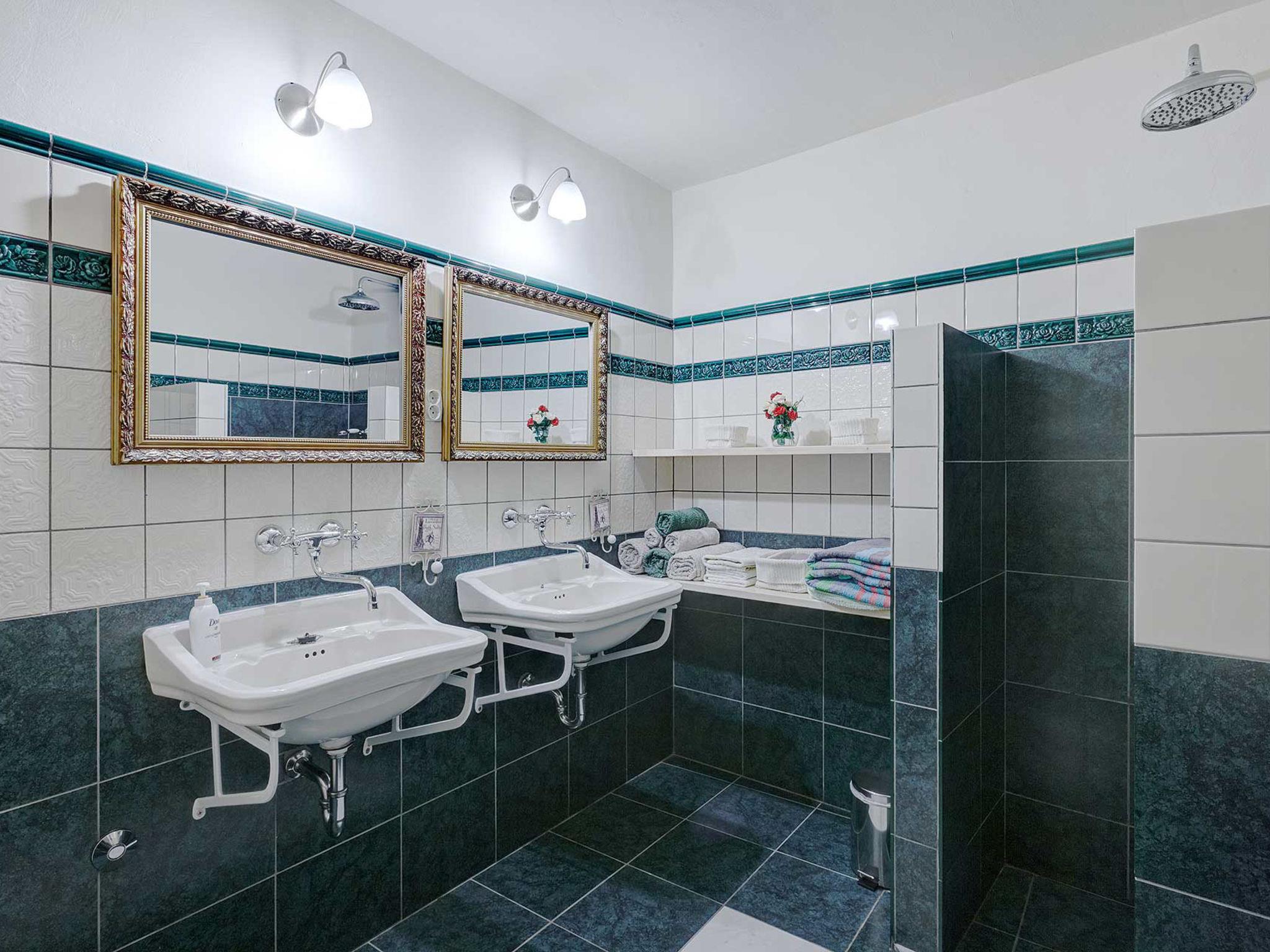 4-room house 242 m2. Living room with open-hearth fireplace, satellite TV and air conditioning. Exit to the terrace. 1 room with 1 french bed (140 cm, length 200 cm). Open kitchen (4 hot plates, oven, dishwasher, toaster, kettle, microwave, freezer, electric coffee machine) with dining table. Exit to the terrace. Sep. WC. On the lower ground floor: 2 rooms, each room with 1 bed (90 cm, length 200 cm), 1 french bed (180 cm, length 200 cm), shower/WC. Facilities: safe, iron, mosquito net, hair dryer. Internet (WiFi, free). Please note: fire extinguisher.