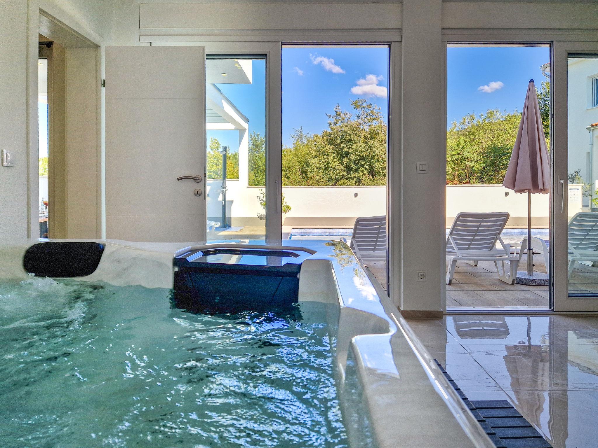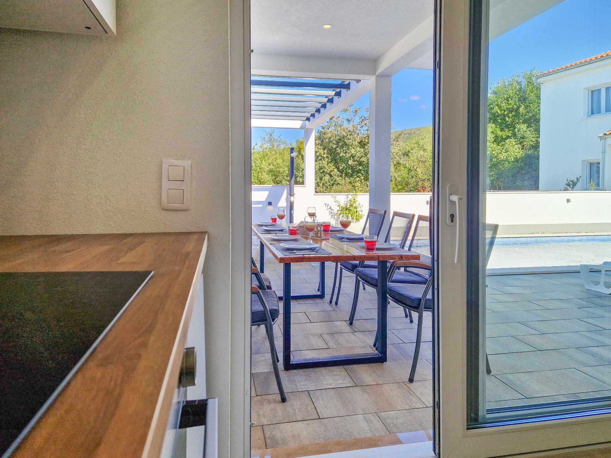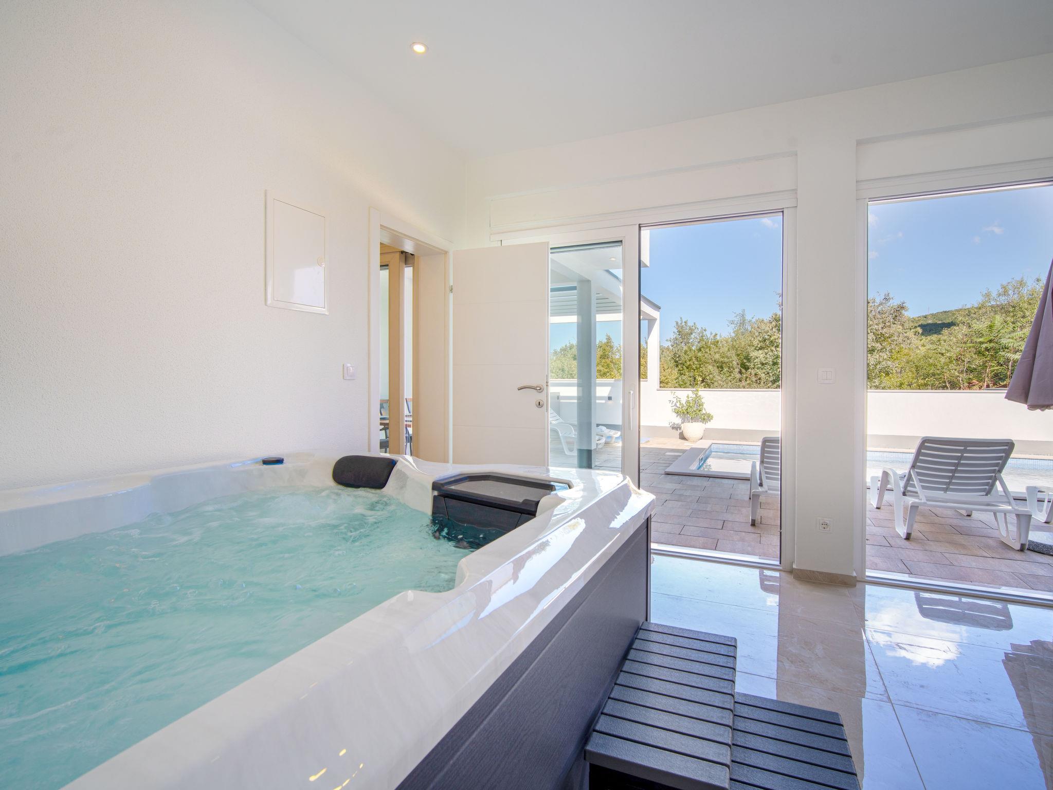 Jadranovo 7 km from Crikvenica: 2-family house "Villa Lea", 2 storeys, built in 2022. 1.5 km from the centre of Jadranovo, 1.8 km from the sea, 1.8 km from the beach. Private: property 500 m2, swimming pool angular, heated (8 x 4 m, depth 145 cm, seasonal availability: 30.Mar. - 30.Oct.) with internal staircase. Outdoor shower, hot tub, pool house with shower and WC, barbecue, pool maintenance by the owner/gardener. In the house: internet access, infrared sauna, washing machine. Parking (for 2 cars) at the house on the premises. Shop, restaurant 800 m, bus stop 1.6 km, pebble beach 1.8 km, concrete beach 1.8 km. Please note: airfield 15 km from the property.
