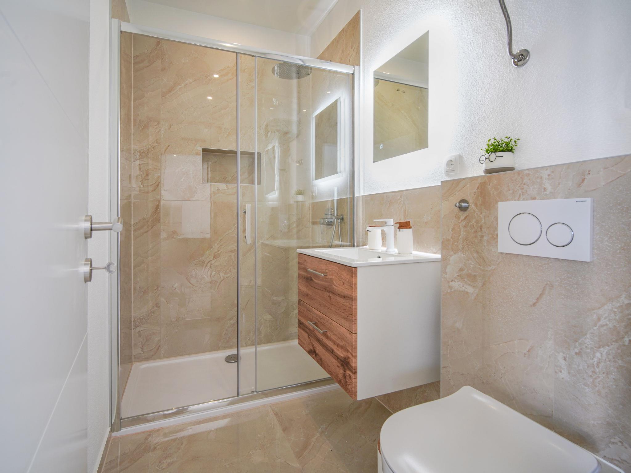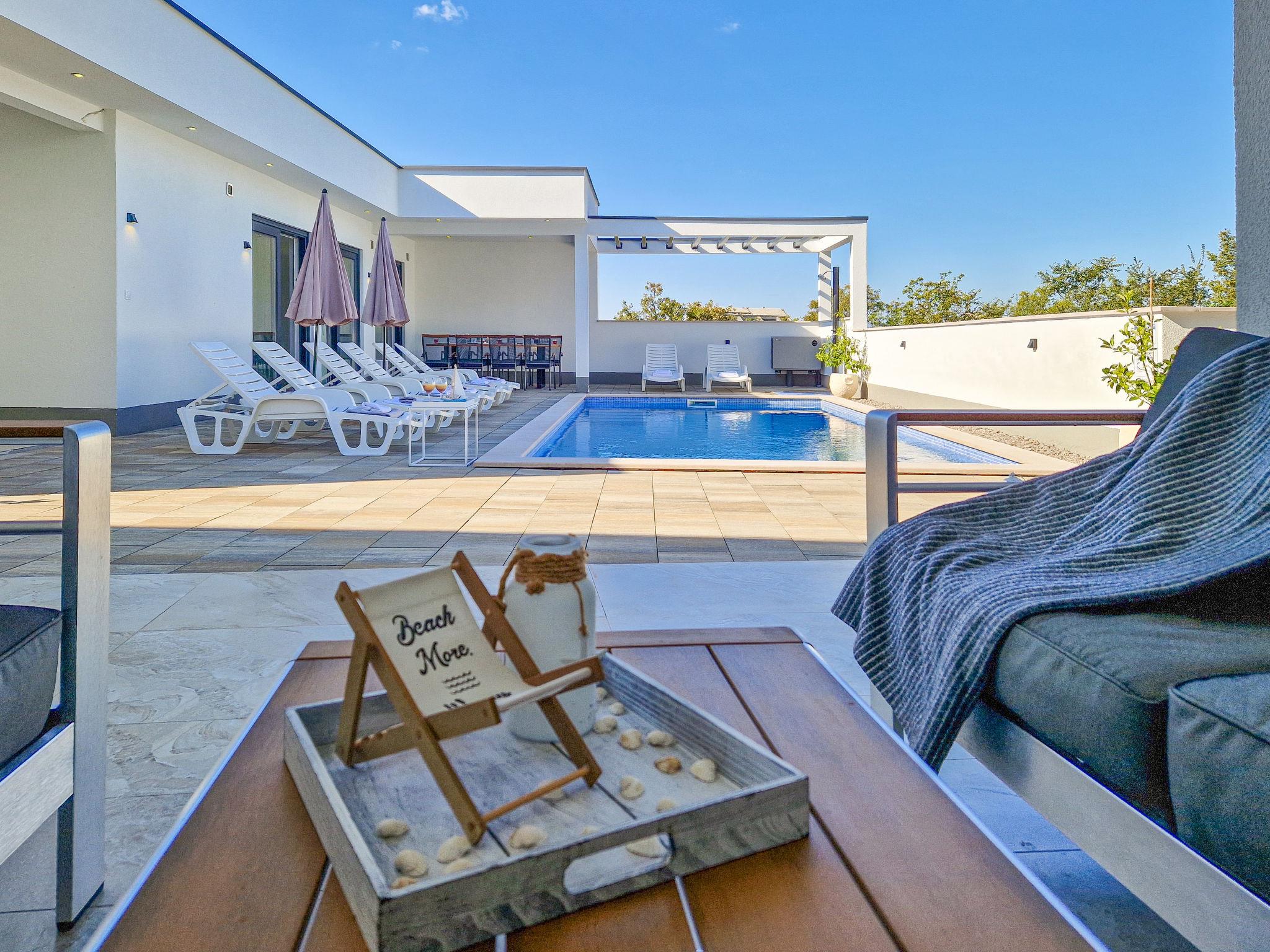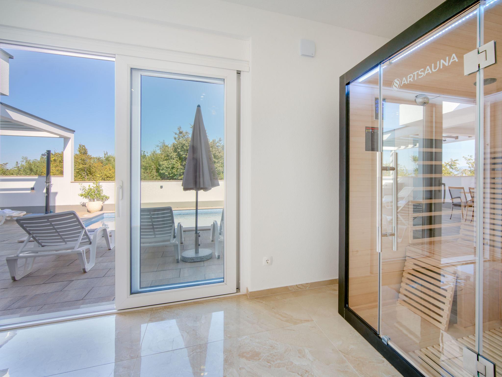 Jadranovo 7 km from Crikvenica: 2-family house "Villa Lea", 2 storeys, built in 2022. 1.5 km from the centre of Jadranovo, 1.8 km from the sea, 1.8 km from the beach. Private: property 500 m2, swimming pool angular, heated (8 x 4 m, depth 145 cm, seasonal availability: 30.Mar. - 30.Oct.) with internal staircase. Outdoor shower, hot tub, pool house with shower and WC, barbecue, pool maintenance by the owner/gardener. In the house: internet access, infrared sauna, washing machine. Parking (for 2 cars) at the house on the premises. Shop, restaurant 800 m, bus stop 1.6 km, pebble beach 1.8 km, concrete beach 1.8 km. Please note: airfield 15 km from the property.