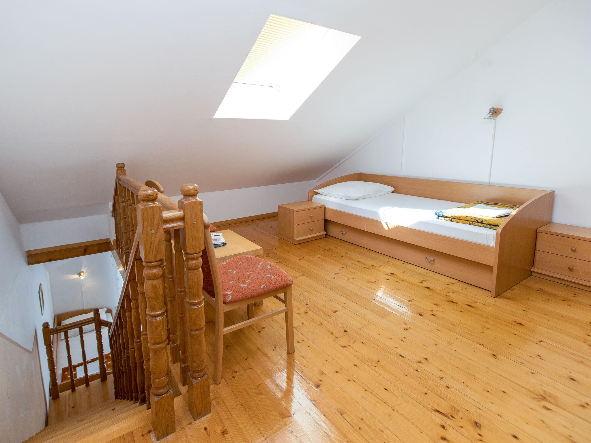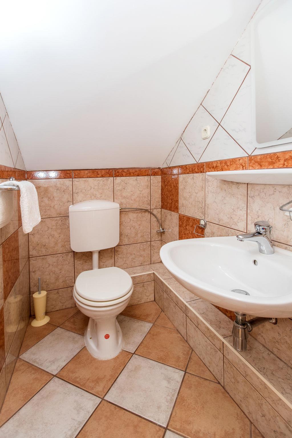 "Villa Anna", 2-room apartment 49 m2, on the top floor. Open living/sleeping room with 2 beds (90 cm, length 200 cm), dining table, satellite TV and air conditioning. Exit to the balcony. Open gallery with sloping ceilings with 1 bed (90 cm, length 200 cm), 1 double bed (2 x 80 cm, length 200 cm). Open kitchen (4 hot plates, dishwasher, toaster, kettle, microwave, electric coffee machine). Shower/WC, sep. WC. Heating (extra), air-conditioning (extra). Balcony 7 m2. Balcony furniture. Facilities: Internet (WiFi, free). Parking. Please note: non-smokers only.