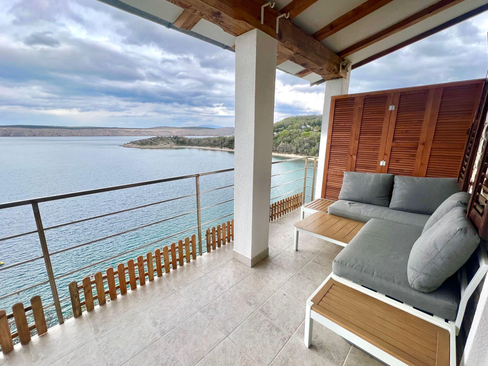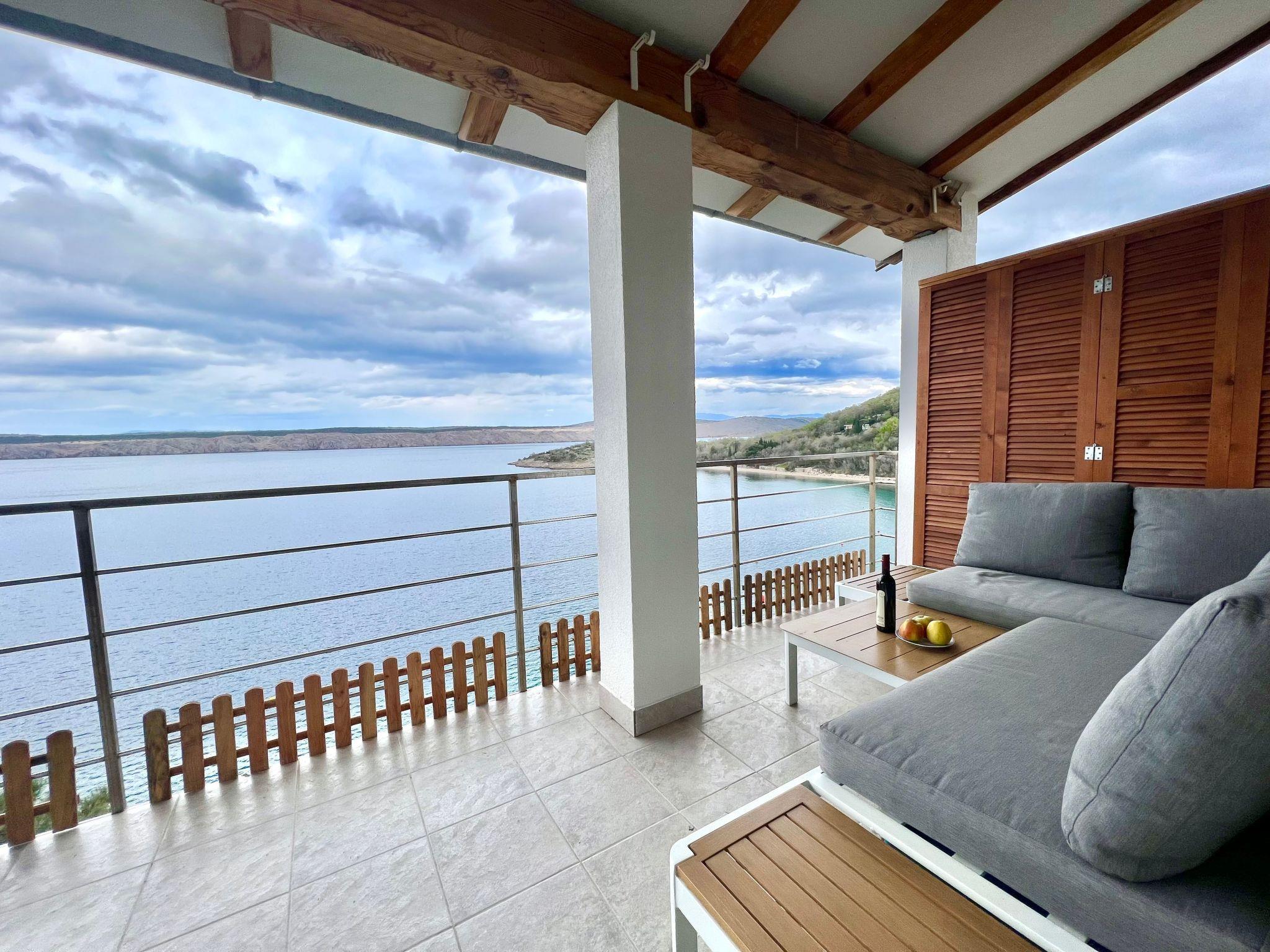 The outdoor area of this property enchants with a spacious covered terrace, which offers enough space for shared meals or relaxing hours outdoors. An unrivalled panoramic view of the sea and the island of Krk makes every minute spent here a real pleasure. The terrace is sure to quickly become your favourite spot, where you can enjoy the sea breeze and the tranquillity of the surroundings to the full.