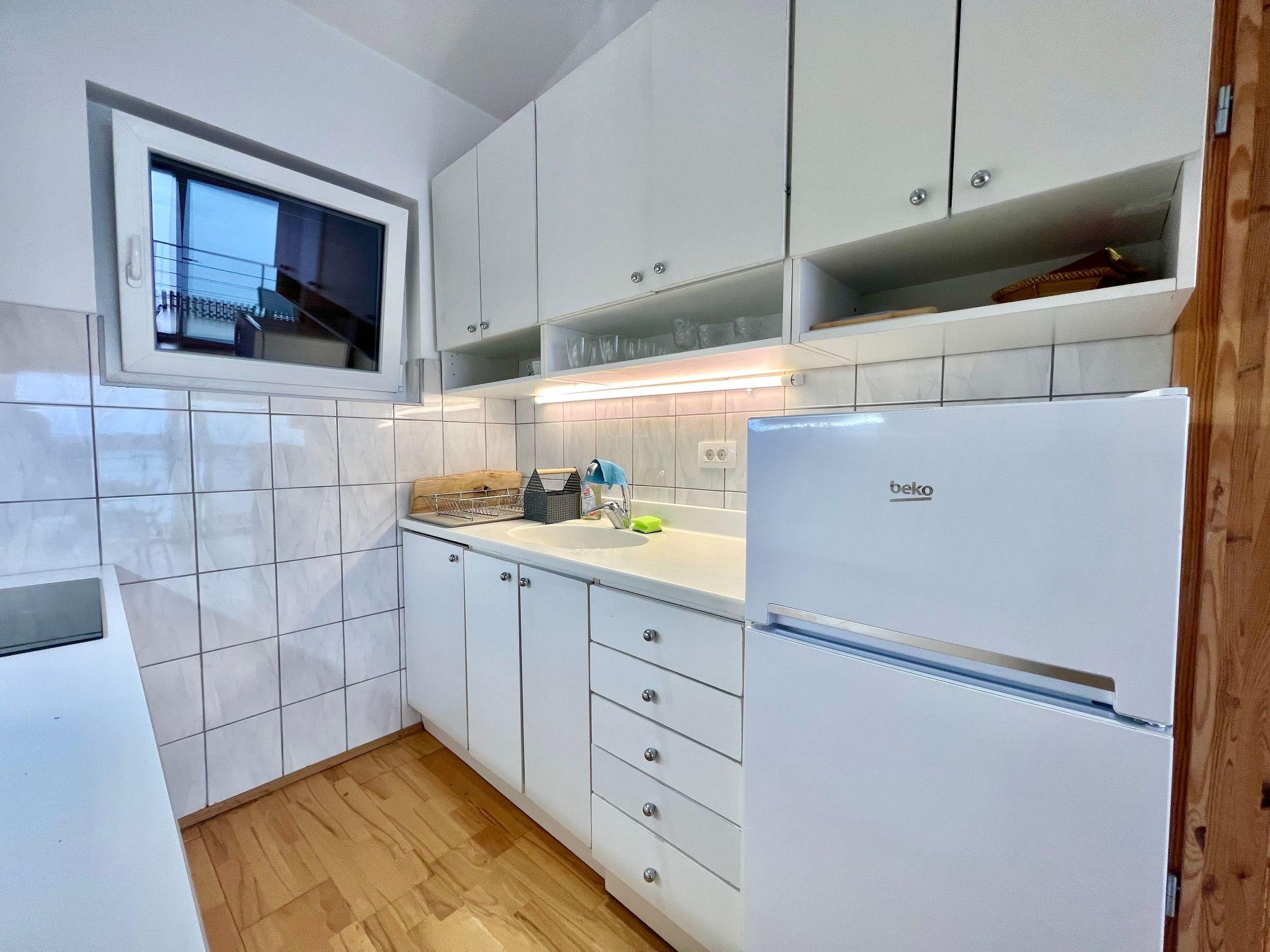 The interior of the flat includes everything you need for a carefree stay. In addition to two inviting bedrooms that promise peaceful nights, the flat has a practical configuration. Partial air conditioning ensures pleasant temperatures even in the warmer months. A kettle is also available, ideal for making coffee or tea at any time of day.