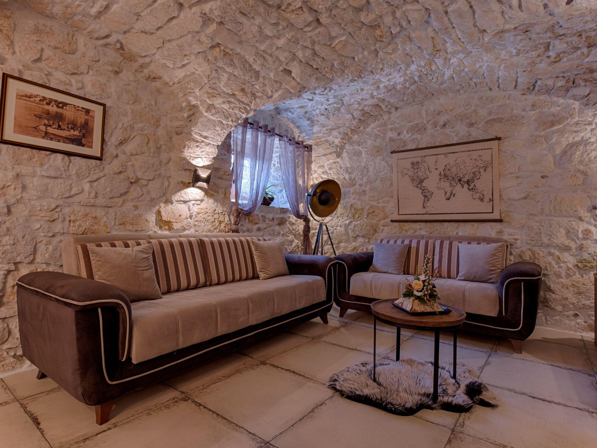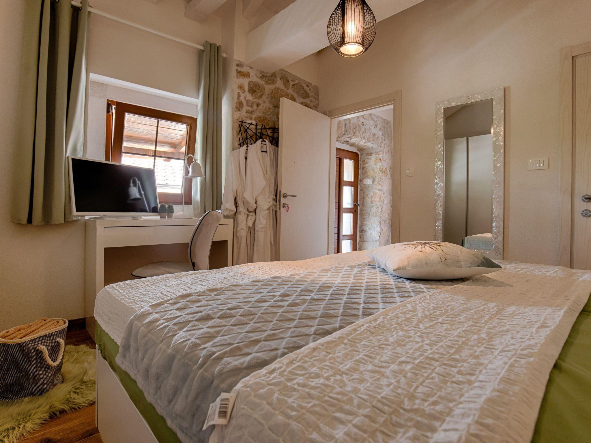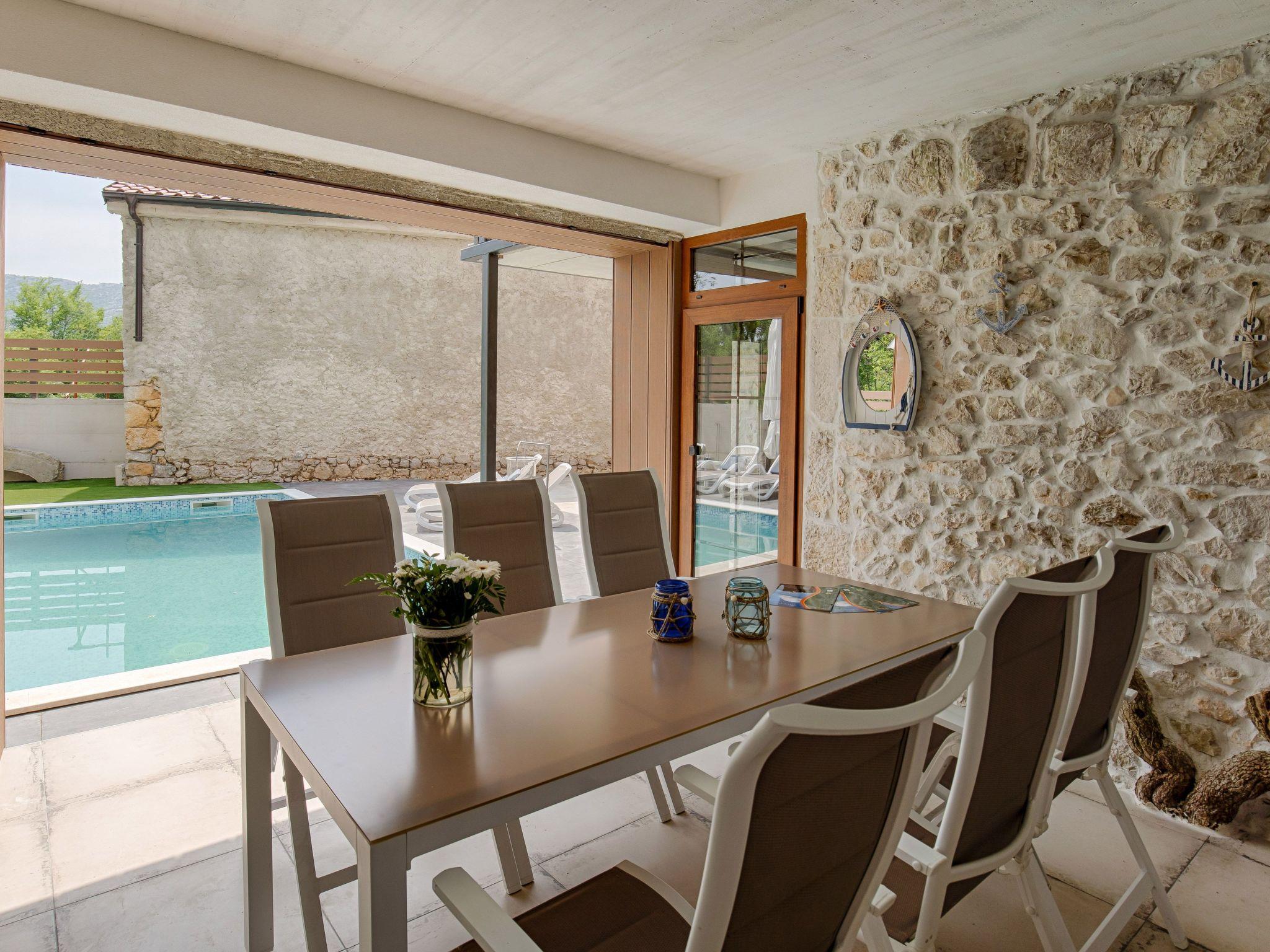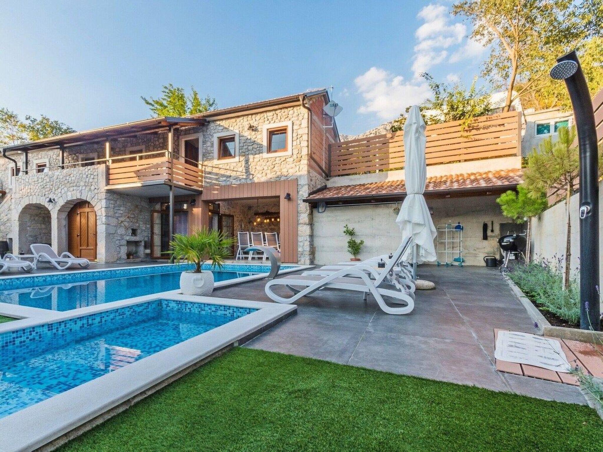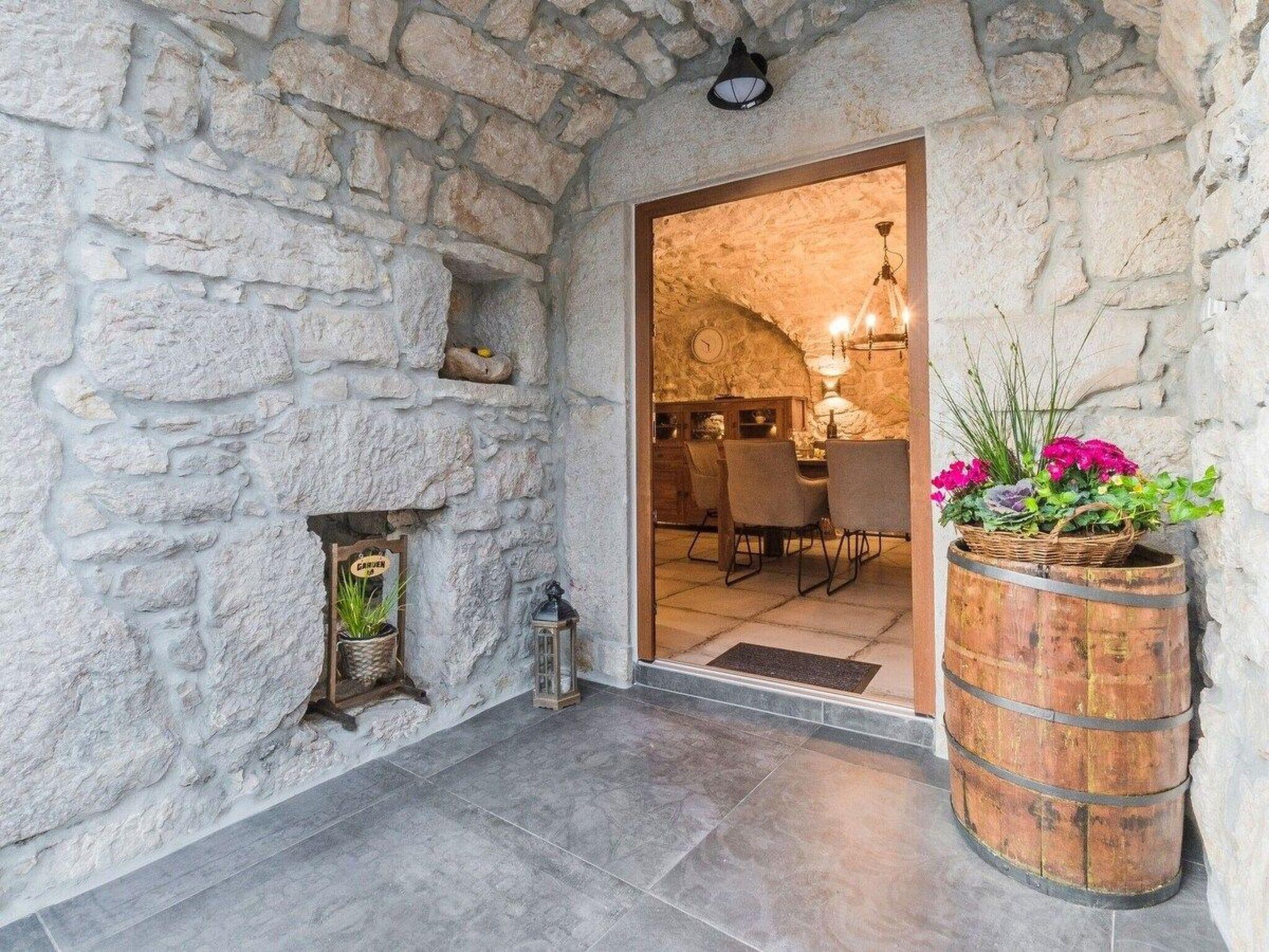 The old stone house was completely renovated in 2018. It is located 6 kilometers from Crikvenica. Crikvenica is one of the most popular tourist resorts in the Kvarner Bay with its beautiful beaches, walking paths and tourist attractions. The house extends over 140 square meters. It has a private swimming pool, a small pool for children, parking and barbecue. On the first floor there is a fully equipped kitchen, a dining room, a living room, a covered terrace and an additional toilet with a washing machine. A stone staircase leads to 3 double bedrooms, one of which can be equipped with an extra bed for one person and a cot on request. Each room has a personal safe and a private bathroom. The rooms are equipped with air conditioning, smart TV and free internet access. Villa can accomodate 7 people. The house is ideal for those who want to spend a nice, romantic and warm family holiday, but with a nostalgic touch of old times. The yard of the house is fenced with a high stone wall and offers complete privacy, as well as relaxation and refreshment by the pool. Children and pets are welcome.