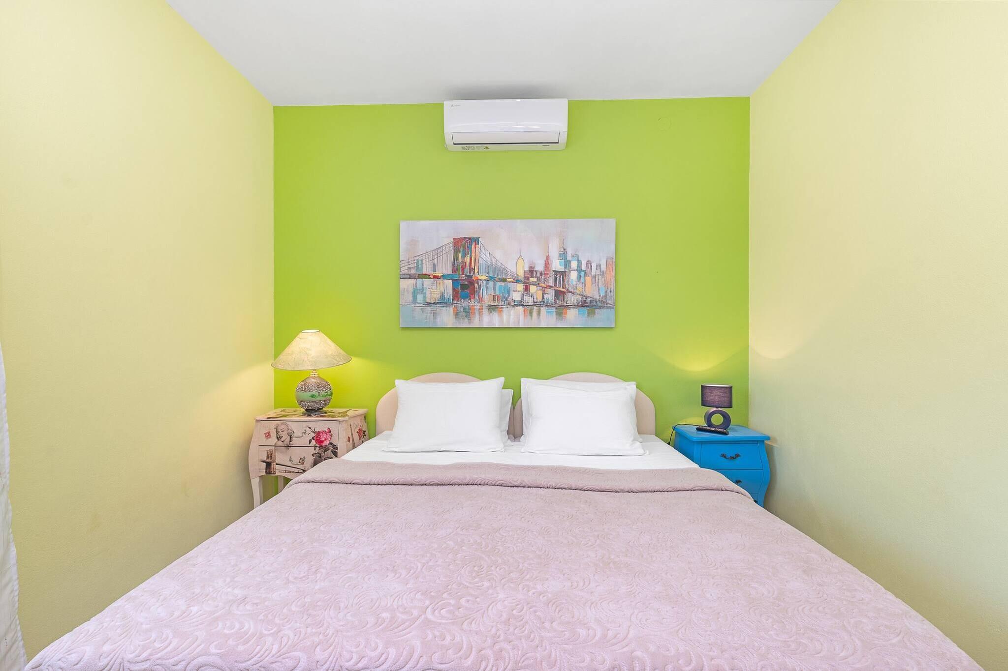 Denne stilfulde villa med 2 soveværelser ligger i den fredelige landsby Danilo Kraljice og tilbyder moderne komfort og landlig charme til op til 6 gæster. Det 100 m² store hus har en smukt anlagt have, privat swimmingpool og en stor indhegnet grund, hvilket gør det ideelt for familier eller venner, der ønsker at slappe af i naturen. Huset kan prale af et fuldt udstyret køkken med gas- og elektriske apparater, herunder opvaskemaskine, kaffemaskine og mikrobølgeovn. En lys opholdsstue, to hyggelige soveværelser og moderne faciliteter som aircondition, Wi-Fi, vaskemaskine og tv sikrer et behageligt ophold. Gæsterne kan slappe af på terrassen, nyde udendørs måltider med grillen eller tage en forfriskende dukkert i poolen. Ejendommen ligger kun 22 km fra vandfaldene i Krka Nationalpark og 34 km fra Aquapark Dalmatia og tilbyder nem adgang til både naturlig skønhed og lokale attraktioner. Med sine rolige landlige omgivelser og moderne bekvemmeligheder er denne villa et perfekt tilflugtssted for både afslapning og eventyr.