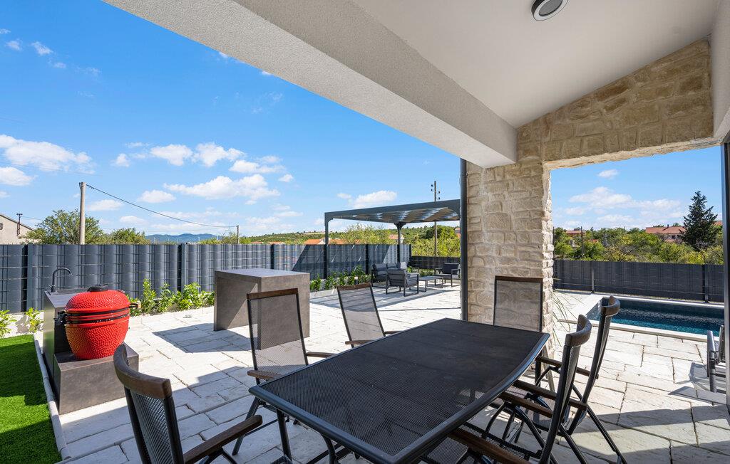 Nyd en afslappende ferie i dette moderne og smagfulde feriehus med pool. Forkæl dig selv med lidt luksus på ferien og tilbring din længe ventede familieferie i dette komfortable og stilfulde feriehus. Her er der tænkt på alt, så det eneste du skal gøre er at sætte fødderne op og slappe af. På kølige aftener kan I samles i opholdsstuen til en filmaften med knitrende åben ild, eller fremtrylle lækre retter i det åbne køkken. Du kan også opdage haven, som indbyder til at hygge dig i poolen. Læs en bog om liggestolene, mens dine børn plasker i vandet. Dette luksuriøse feriehus med pool ligger i Danilo, ikke langt fra Sibenik. Det er omgivet af natur på en smuk grund og er det perfekte valg til en familieferie. I den gamle bydel i Šibenik finder du historiske seværdigheder og livligt byliv. Besøg St. Jacobs katedral og de restaurerede forter med en fantastisk udsigt over havet og de nærliggende øer. Besøg også nationalparkerne Krka og Kornati, som vil tage pusten fra dig, og du vil vende hjem med uforglemmelige oplevelser!