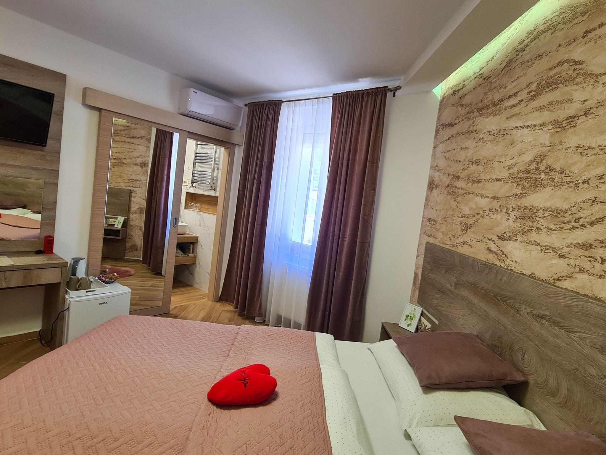 Zimmer bietet Platz für 2 Gäste. Die Betten sind in Schlafzimmern, die es 1 gibt, innerhalb einer Gesamtfläche von 20m2, angeordnet. Die Nutzung einer gemeinsamen Küche ist möglich. Die reservierte Unterkunftseinheit hat keinen Balkon und keine Terrasse. Die reservierte Unterkunftseinheit ist ein Zimmer mit eigenem Badezimmer mit der Möglichkeit der Nutzung einer Küche gegen Zuzahlung (der Preis ist auf der Seite definiert). IM PREIS INBEGRIFFEN: Kurtaxe, Endreinigung, Klimatisierung, Zentralheizung, Parkplatz, Internet, Föhn. VERBINDLICHE ZUSÄTZLICHE KOSTEN: Aufzahlung für Kurzaufenthalte (prozentualer Zuschlag pro Nächtigungsanzahl: 30% - 1, 20% - 2, 10% - 3). UNVERBINDLICHE ZUSÄTZLICHE KOSTEN: gemeinsame Küche (10,00 € pro Nacht), Wäschewaschen (5,00 € Waschen). Die Verfügbarkeit zusätzlicher Dienstleistungen in Ihrem reservierten Termin und die Preise derselben (falls nicht aufgeführt) müssen im Voraus überprüft werden. Zusätzliche Dienstleistungen die in der Zahlungsaufforderung nicht aufgeführt sind werden direkt beim Vermieter bezahlt, angenommen der Gast nutzt auch diese. Ermäßigung auf den Grundpreis: Gratistag 28=25 (bei einem Aufenthalt von 28 oder mehr Tagen erhalten Sie 3 kostenlose Tage für den Aufenthalt bis 31.12.26).