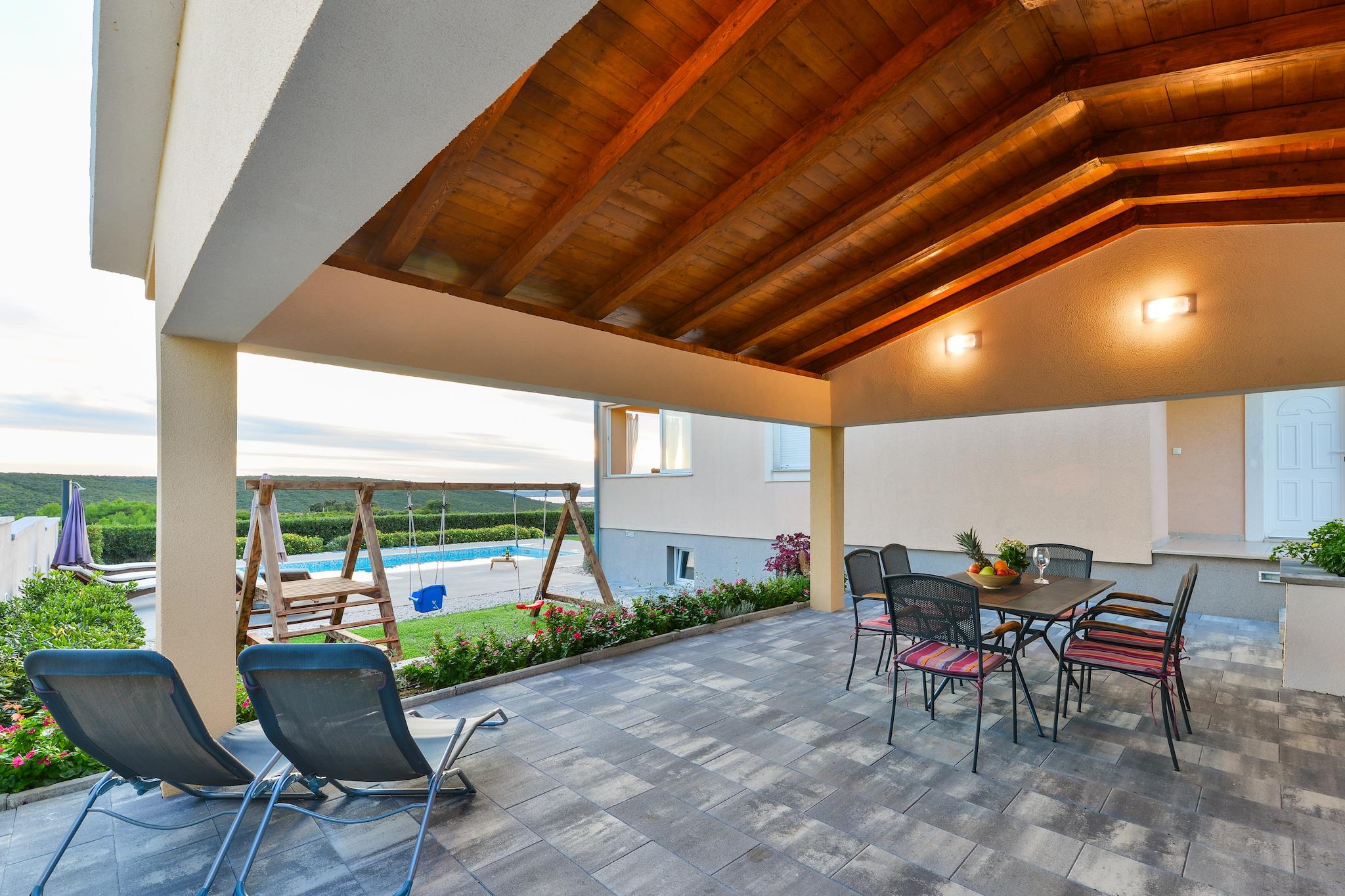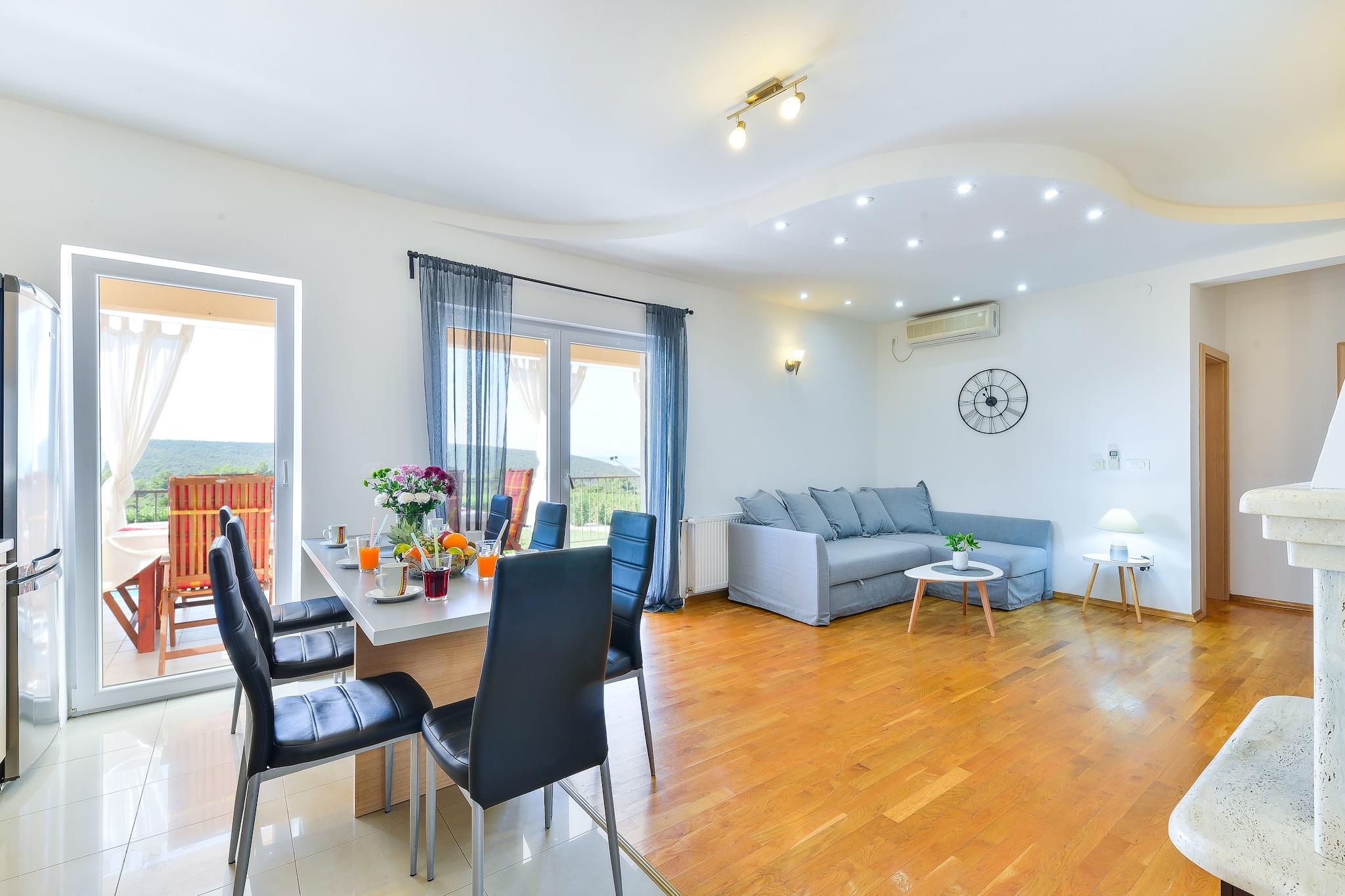 Rummelig komfort og førsteklasses beliggenhed Denne villa til syv gæster tilbyder et roligt tilflugtssted i Debeljak, kun 4,5 km fra havet og 15 km fra Zadar. Med gratis WiFi, en privat indhegnet have og en rummelig terrasse kan gæsterne nyde både afslapning og bekvemmelighed. Villaen ligger 600 meter fra almindelige forsyninger, mens restauranter og posthuset ligger inden for 4,5 km, hvilket sikrer nem adgang til de vigtigste fornødenheder. Moderne faciliteter og afslapning Indenfor har villaen en hyggelig opholds- og spisestue med pejs og satellit-tv, et fuldt udstyret åbent køkken og tre komfortable soveværelser, et med en dobbeltseng, et andet med en køjeseng og et tredje med en enkeltseng. Gæsterne kan slappe af på den private terrasse, nyde udendørs spisning med grill eller tage en forfriskende dukkert i den private swimmingpool. Yderligere faciliteter inkluderer aircondition, en vaskemaskine og en kælder med dart til underholdning. Nærliggende attraktioner og spisesteder Udforsk Punta Rata-stranden, kendt for sit krystalklare vand, eller besøg Zadars havorgel, et arkitektonisk vidunder, der forvandler bølger til musik. Til spisning tilbyder Konoba Anton middelhavsretter, mens Proto Food & More serverer frisk fisk og skaldyr i hyggelige omgivelser. Uanset om du søger eventyr eller ro, er denne villa det perfekte tilflugtssted.