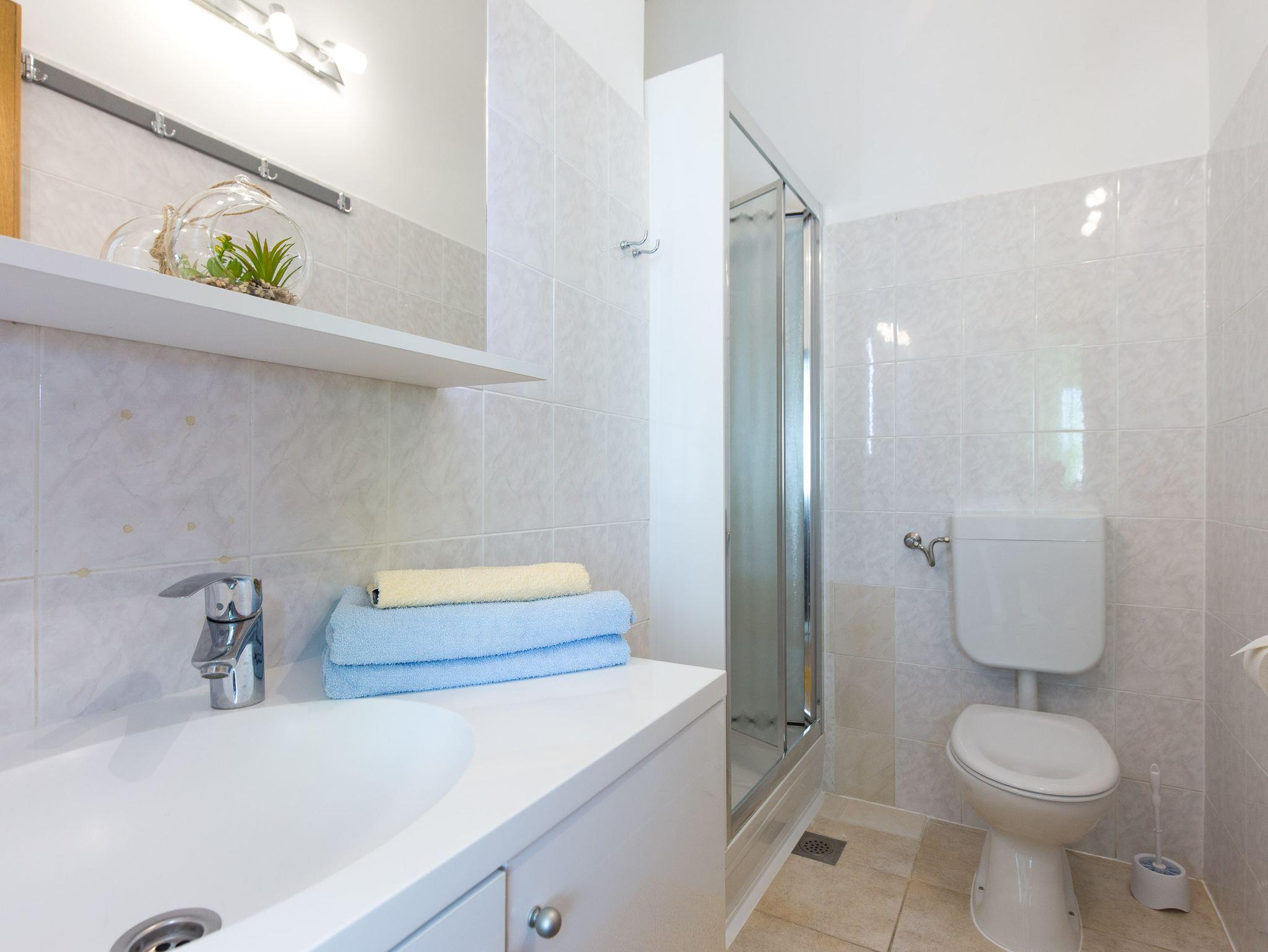 Ferienwohnung bietet Platz für 3 Gäste. Die Betten sind in Schlafzimmern, die es 1 gibt, und in Wohnzimmer, innerhalb einer Gesamtfläche von 31m2, angeordnet. Die Gäste haben einen eigenen Balkon zur Verfügung, auf der sie in warmen Sommernächten genießen können. Das Apartment bietet Meerblick. Es ist erlaubt, Speisen auf dem Gemeinschafts-Grill vorzubereiten. In der Unterkunftseinheit besteht die Möglichkeit des Mitbringens von Haustieren gegen Aufpreis. IM PREIS INBEGRIFFEN: Kurtaxe, Endreinigung, Klimatisierung, Parkplatz, Internet. VERBINDLICHE ZUSÄTZLICHE KOSTEN: Aufzahlung für Kurzaufenthalte (prozentualer Zuschlag pro Nächtigungsanzahl: 30% - 1, 20% - 2, 10% - 3). UNVERBINDLICHE ZUSÄTZLICHE KOSTEN: Haustiere (5,00 € pro Nacht). Die Verfügbarkeit zusätzlicher Dienstleistungen in Ihrem reservierten Termin und die Preise derselben (falls nicht aufgeführt) müssen im Voraus überprüft werden. Zusätzliche Dienstleistungen die in der Zahlungsaufforderung nicht aufgeführt sind werden direkt beim Vermieter bezahlt, angenommen der Gast nutzt auch diese.
