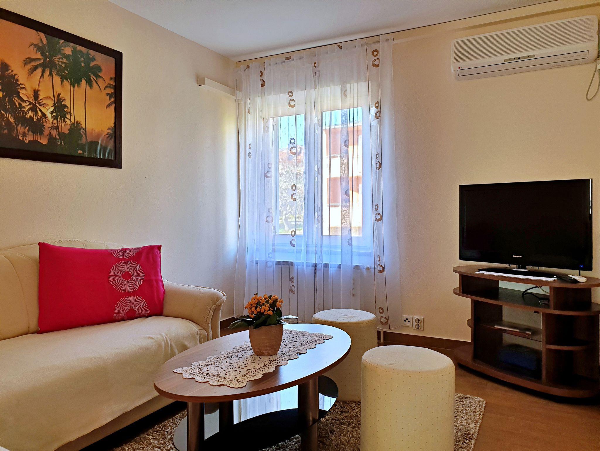 Ferienwohnung bietet Platz für 4 Gäste. Die Betten sind in Schlafzimmern, die es 1 gibt, und in Wohnzimmer, innerhalb einer Gesamtfläche von 38m2, angeordnet. Die Gäste haben eine eigene Terrasse zur Verfügung, auf der sie in warmen Sommernächten genießen können. Das Apartment bietet Meerblick. Es ist erlaubt, Speisen auf dem Gemeinschafts-Grill vorzubereiten. IM PREIS INBEGRIFFEN: Kurtaxe, Endreinigung, Klimatisierung, Parkplatz, Internet. Die Verfügbarkeit zusätzlicher Dienstleistungen in Ihrem reservierten Termin und die Preise derselben (falls nicht aufgeführt) müssen im Voraus überprüft werden. Zusätzliche Dienstleistungen die in der Zahlungsaufforderung nicht aufgeführt sind werden direkt beim Vermieter bezahlt, angenommen der Gast nutzt auch diese.