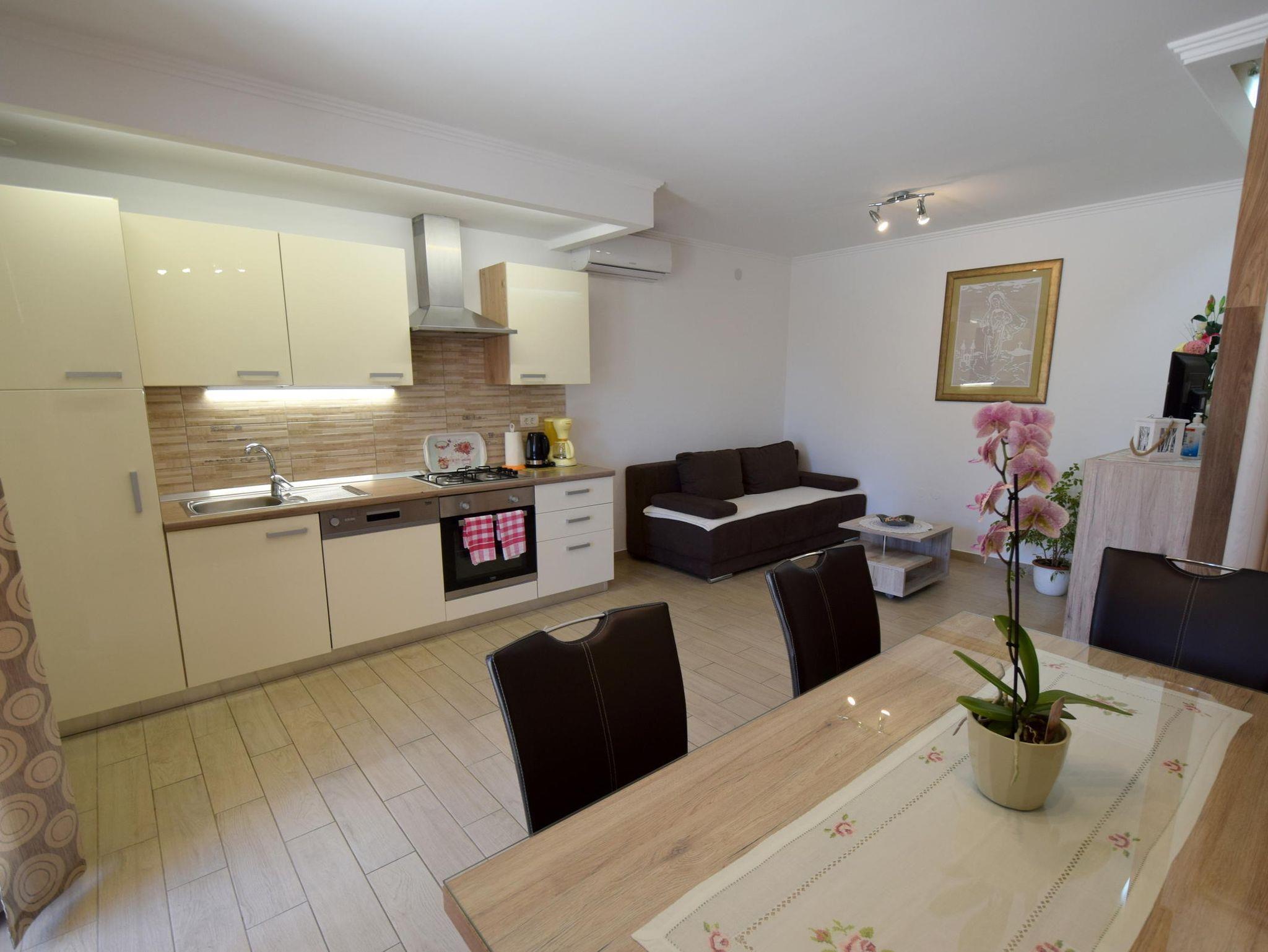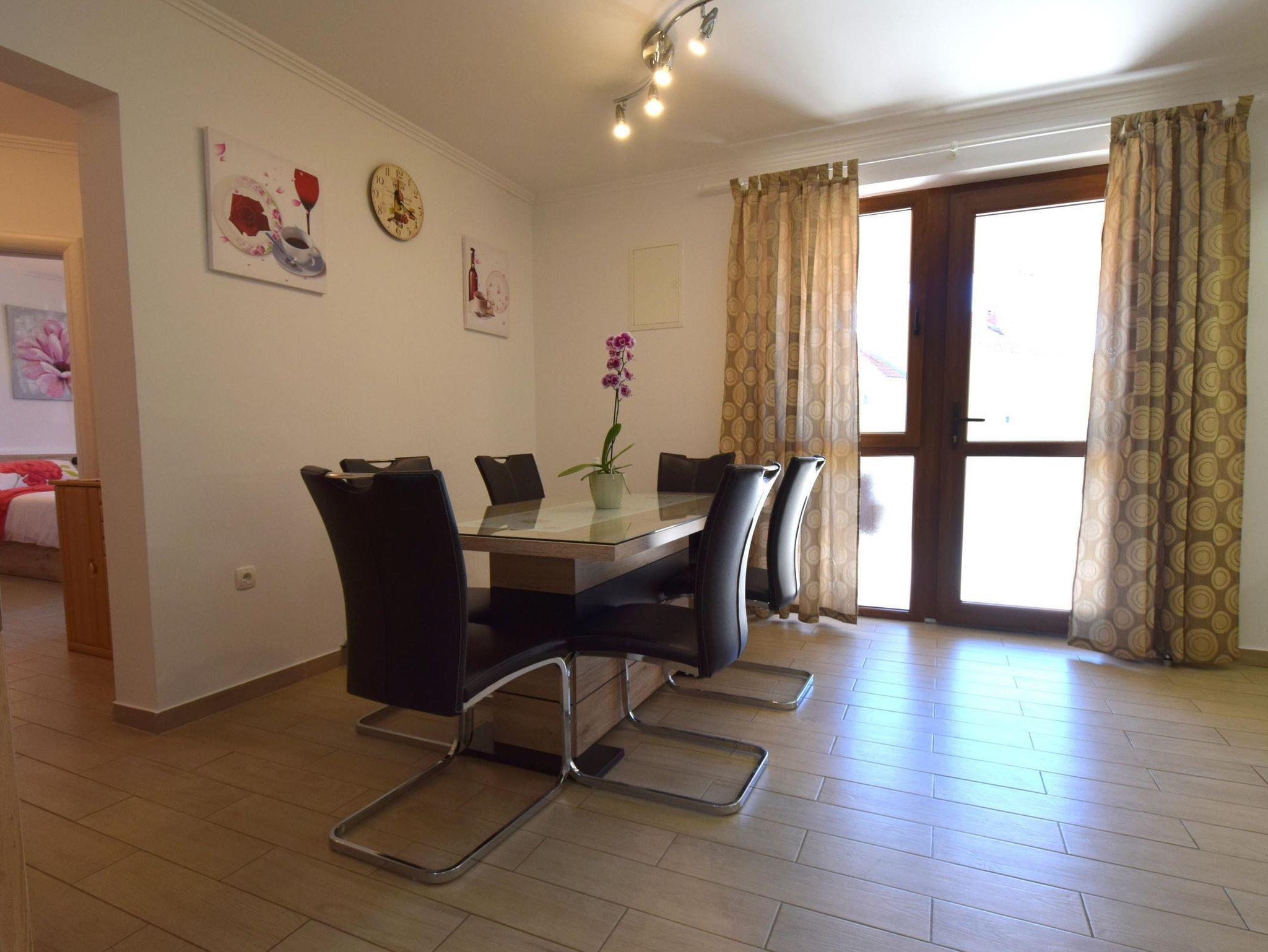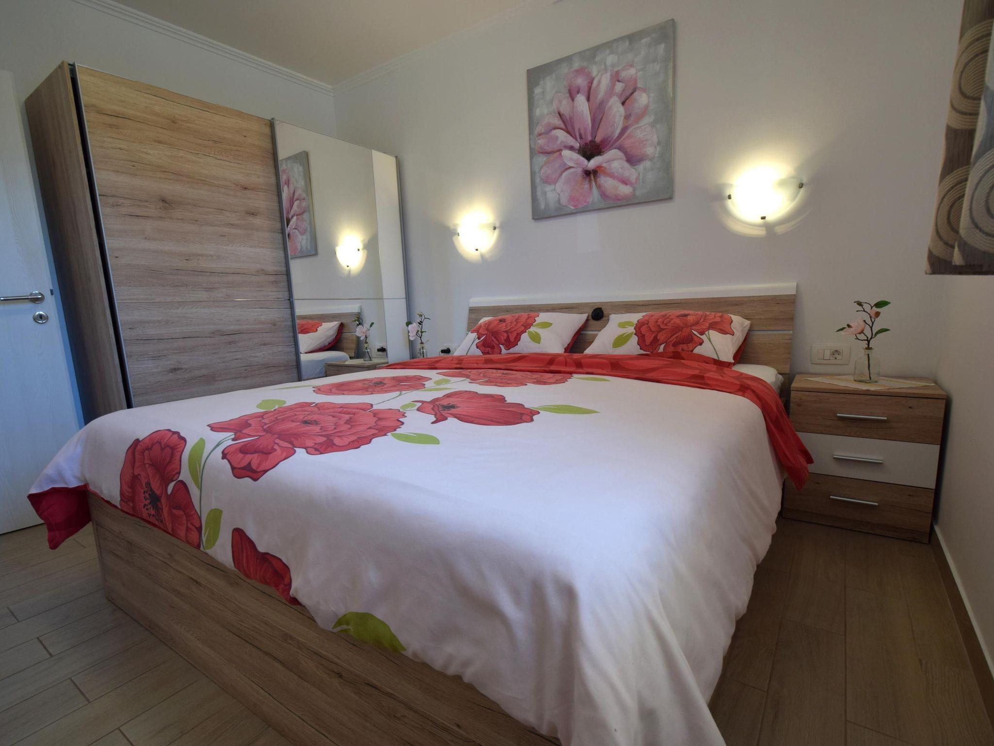 Ferienwohnung bietet Platz für 5 Gäste. Die Betten sind in Schlafzimmern, die es 2 gibt, und in Wohnzimmer, innerhalb einer Gesamtfläche von 60m2, angeordnet. Die Gäste haben eine eigene Terrasse zur Verfügung, auf der sie in warmen Sommernächten genießen können. Für vollen Genuss und Entspannung gibt es einen privaten Grill für Gäste dieser Unterkunft. In der Unterkunftseinheit besteht die Möglichkeit des Mitbringens von Haustieren gegen Aufpreis. IM PREIS INBEGRIFFEN: Kurtaxe, Endreinigung, Klimatisierung, Zentralheizung, Parkplatz, Internet, Bügeleisen, tragbarer Grill. VERBINDLICHE ZUSÄTZLICHE KOSTEN: Aufzahlung für Kurzaufenthalte (prozentualer Zuschlag pro Nächtigungsanzahl: 30% - 1, 20% - 2, 10% - 3). UNVERBINDLICHE ZUSÄTZLICHE KOSTEN: Haustiere (10,00 € pro Nacht). Die Verfügbarkeit zusätzlicher Dienstleistungen in Ihrem reservierten Termin und die Preise derselben (falls nicht aufgeführt) müssen im Voraus überprüft werden. Zusätzliche Dienstleistungen die in der Zahlungsaufforderung nicht aufgeführt sind werden direkt beim Vermieter bezahlt, angenommen der Gast nutzt auch diese.