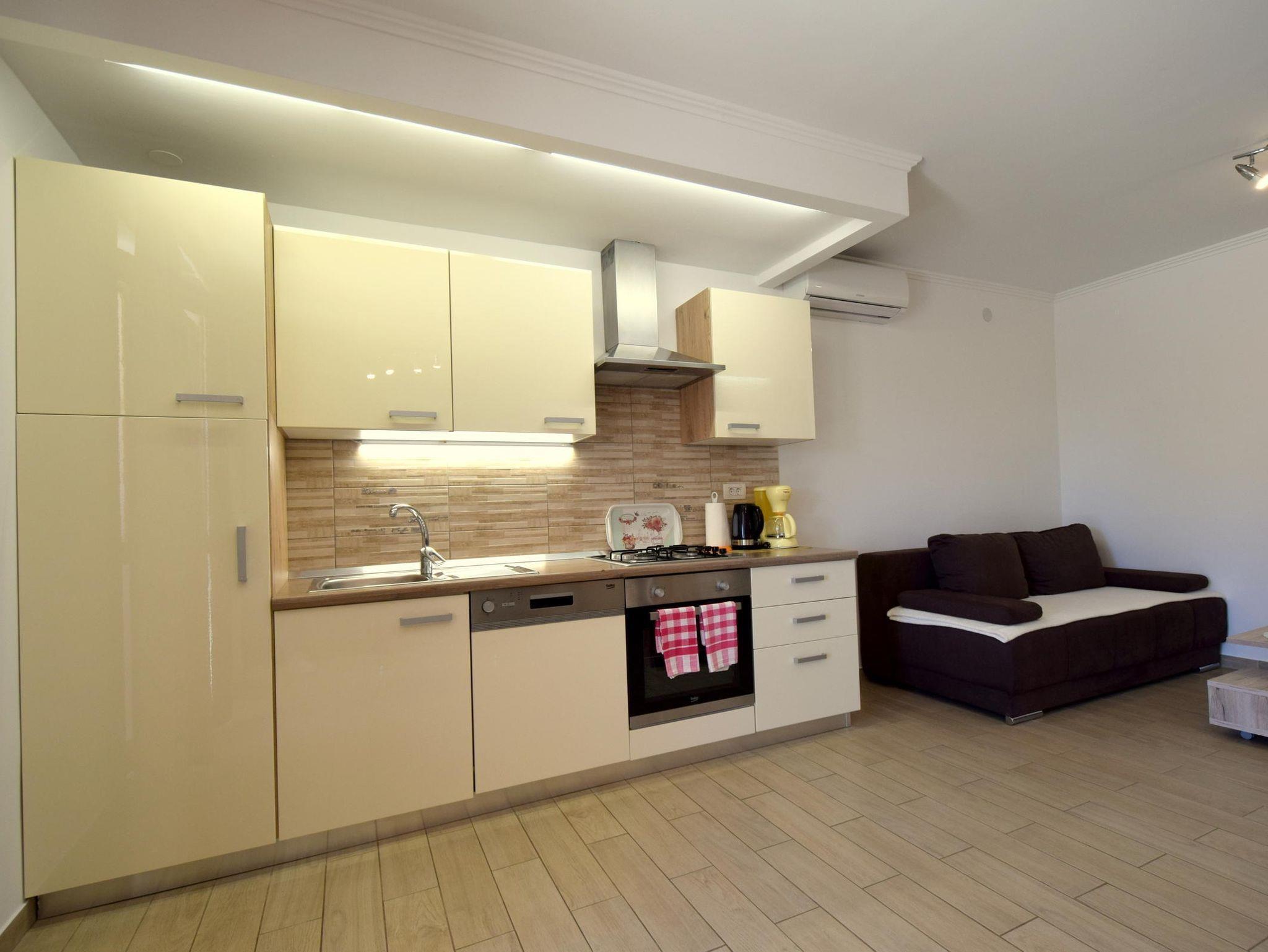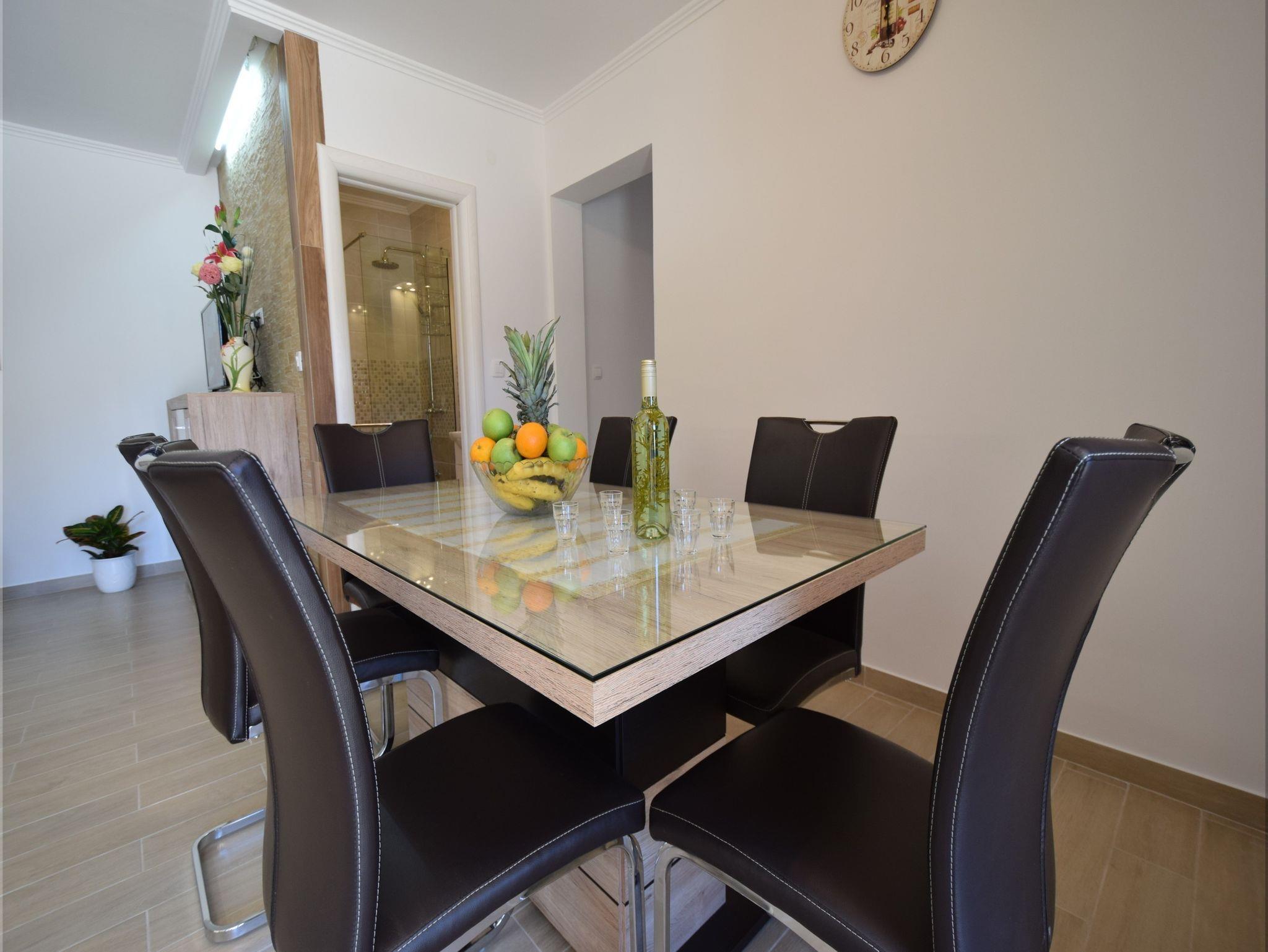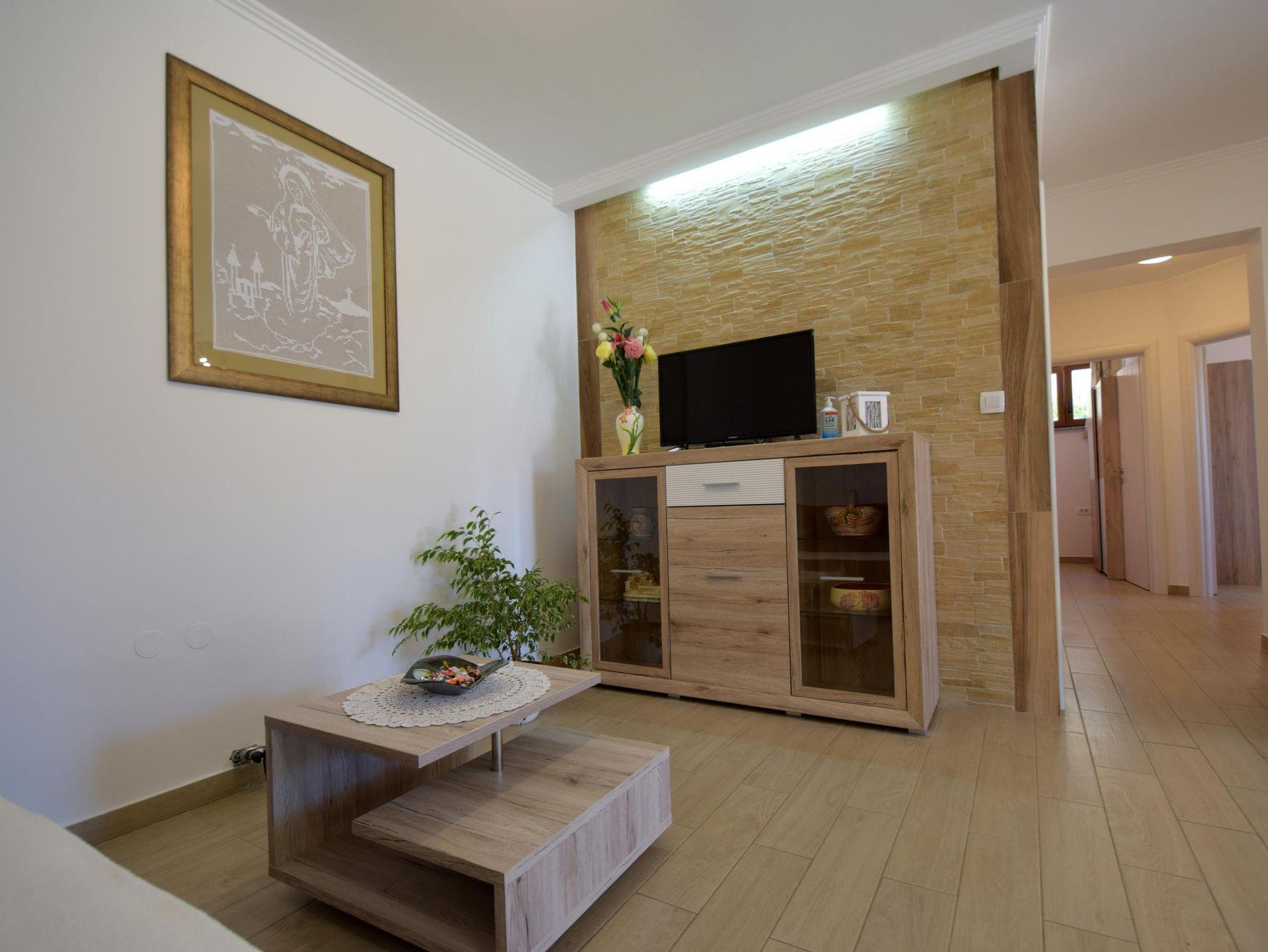 Ferienwohnung bietet Platz für 5 Gäste. Die Betten sind in Schlafzimmern, die es 2 gibt, und in Wohnzimmer, innerhalb einer Gesamtfläche von 60m2, angeordnet. Die Gäste haben eine eigene Terrasse zur Verfügung, auf der sie in warmen Sommernächten genießen können. Für vollen Genuss und Entspannung gibt es einen privaten Grill für Gäste dieser Unterkunft. In der Unterkunftseinheit besteht die Möglichkeit des Mitbringens von Haustieren gegen Aufpreis. IM PREIS INBEGRIFFEN: Kurtaxe, Endreinigung, Klimatisierung, Zentralheizung, Parkplatz, Internet, Bügeleisen, tragbarer Grill. VERBINDLICHE ZUSÄTZLICHE KOSTEN: Aufzahlung für Kurzaufenthalte (prozentualer Zuschlag pro Nächtigungsanzahl: 30% - 1, 20% - 2, 10% - 3). UNVERBINDLICHE ZUSÄTZLICHE KOSTEN: Haustiere (10,00 € pro Nacht). Die Verfügbarkeit zusätzlicher Dienstleistungen in Ihrem reservierten Termin und die Preise derselben (falls nicht aufgeführt) müssen im Voraus überprüft werden. Zusätzliche Dienstleistungen die in der Zahlungsaufforderung nicht aufgeführt sind werden direkt beim Vermieter bezahlt, angenommen der Gast nutzt auch diese.
