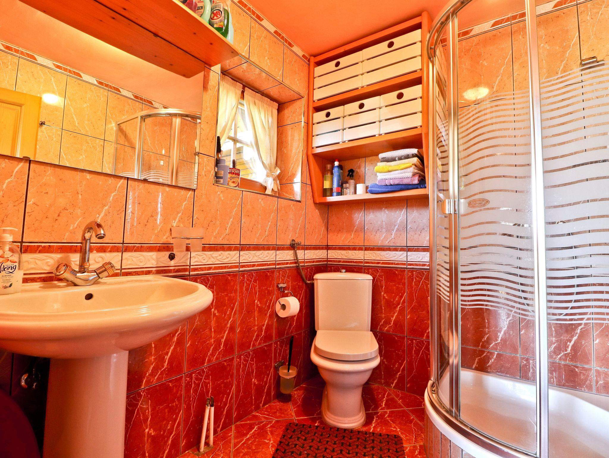 Haus bietet Platz für 7 Gäste. Die Betten sind in Schlafzimmern, die es 3 gibt, innerhalb einer Gesamtfläche von 97m2, angeordnet. Die Gäste haben eine eigene Terrasse zur Verfügung, auf der sie in warmen Sommernächten genießen können. Für vollen Genuss und Entspannung gibt es einen privaten Grill für Gäste dieser Unterkunft. Während ihres Aufenthalts können sich Gäste im privaten Schwimmbad entspannen. In der Unterkunftseinheit besteht die Möglichkeit des Mitbringens von Haustieren, und die Dienstleistung ist im Preis der Unterkunft enthalten. IM PREIS INBEGRIFFEN: Kurtaxe, Endreinigung, Klimatisierung, Pool, Parkplatz, Internet, Haustiere, Fahrrad, Kinderbett, Bügeleisen, Bügelbrett, Föhn. VERBINDLICHE ZUSÄTZLICHE KOSTEN: Aufzahlung für Kurzaufenthalte (prozentualer Zuschlag pro Nächtigungsanzahl: 30% - 1, 20% - 2, 10% - 3). Die Verfügbarkeit zusätzlicher Dienstleistungen in Ihrem reservierten Termin und die Preise derselben (falls nicht aufgeführt) müssen im Voraus überprüft werden. Zusätzliche Dienstleistungen die in der Zahlungsaufforderung nicht aufgeführt sind werden direkt beim Vermieter bezahlt, angenommen der Gast nutzt auch diese.
