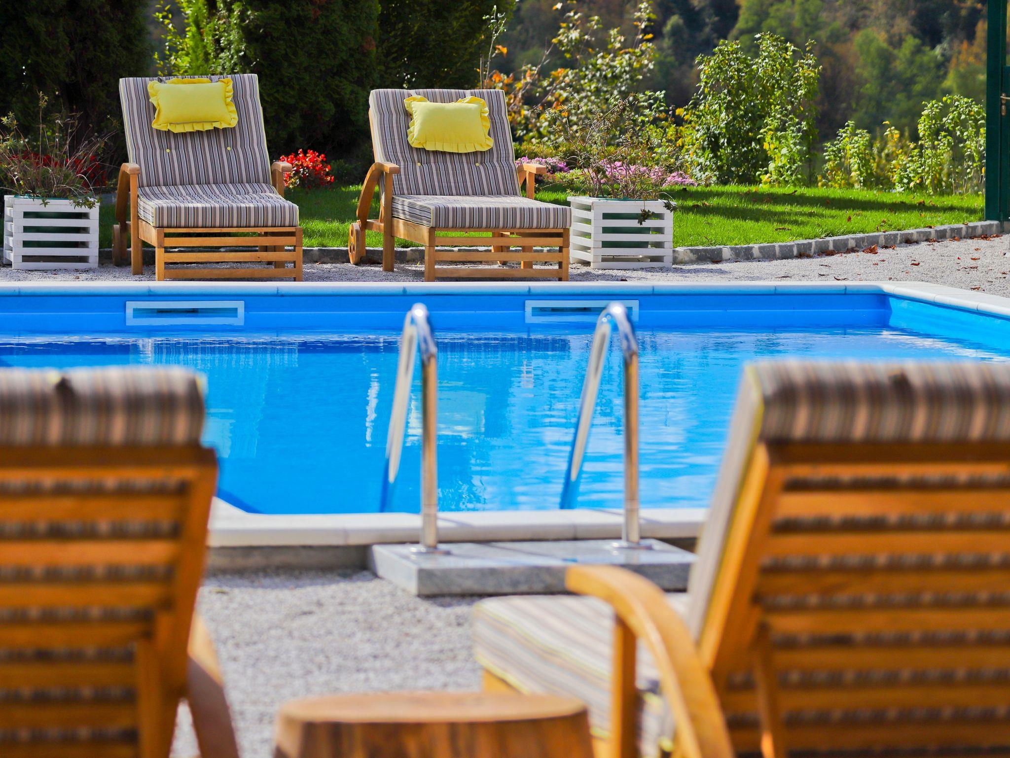 Umgebung des Objekts (Eingerichtet), Hof (3300m2, Kinderbereich, Sitzbereich), Parkplatz (Anzahl der Parkplätze: 7, Entfernung vom Objekt: im Hof), Pool: privat, Dimensionen: 10m x 5m x 1.5m, Wassertyp: Süßwasser, WiFi Internet, Fahrrad (Anzahl: 8), Föhn, Bügeleisen, Bügelbrett, Kinderbett