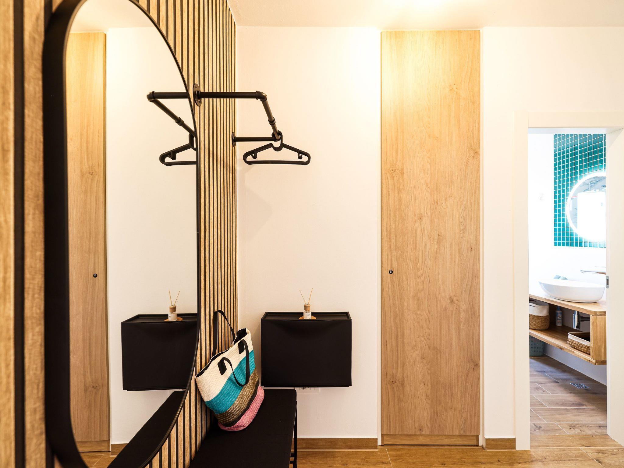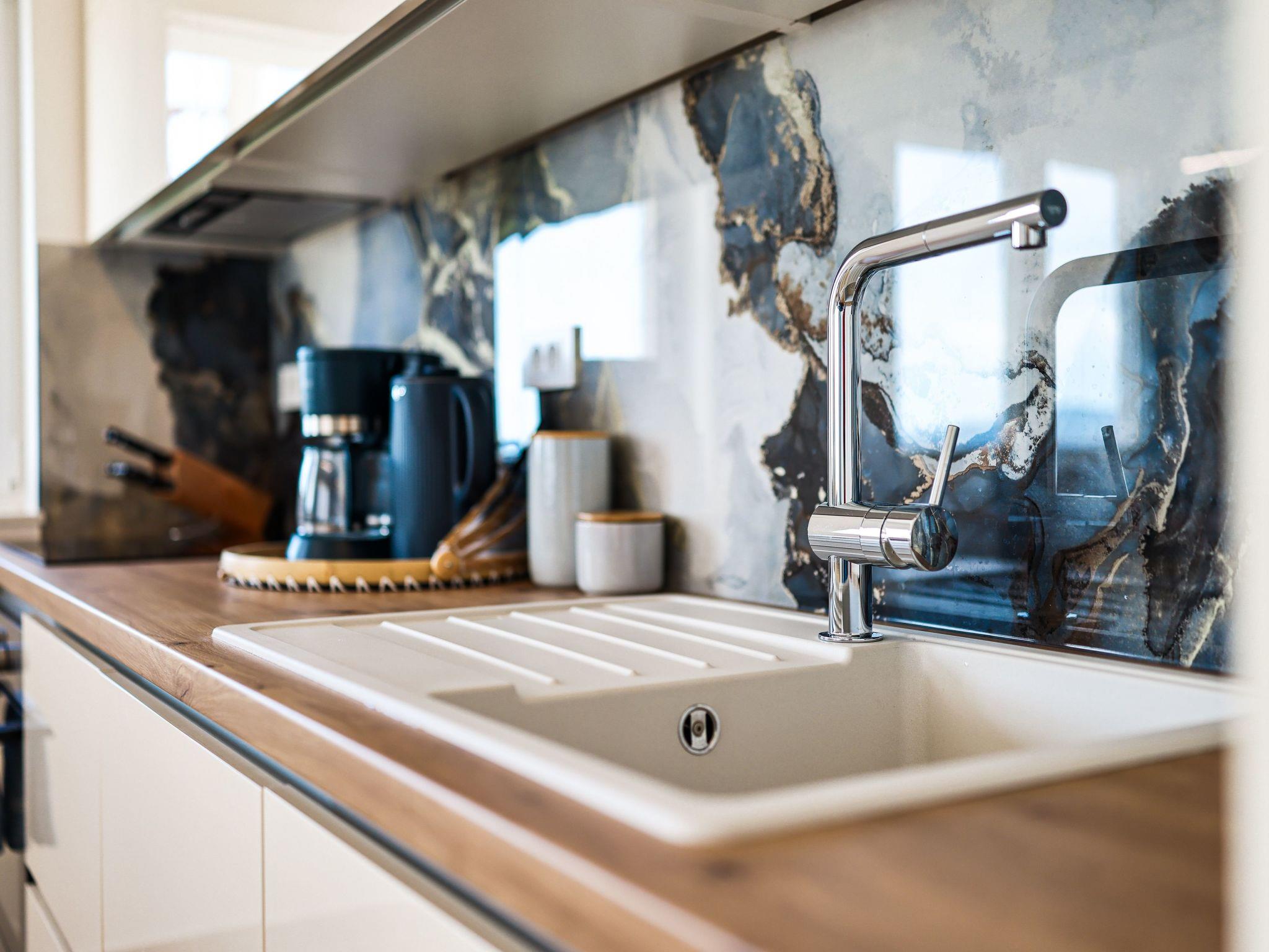 The holiday flat is equipped with the latest technology and amenities to make your stay as comfortable as possible. The underfloor heating throughout the flat ensures pleasant temperatures at any time of year, complemented by 3 air conditioning units that ensure an optimal indoor climate. The smart TV provides entertainment, while the fully equipped kitchen with ceramic hob, coffee machine, kettle and dishwasher makes preparing meals a pleasure. The bathroom offers additional comfort with a walk-in shower, rain shower and modern fittings.