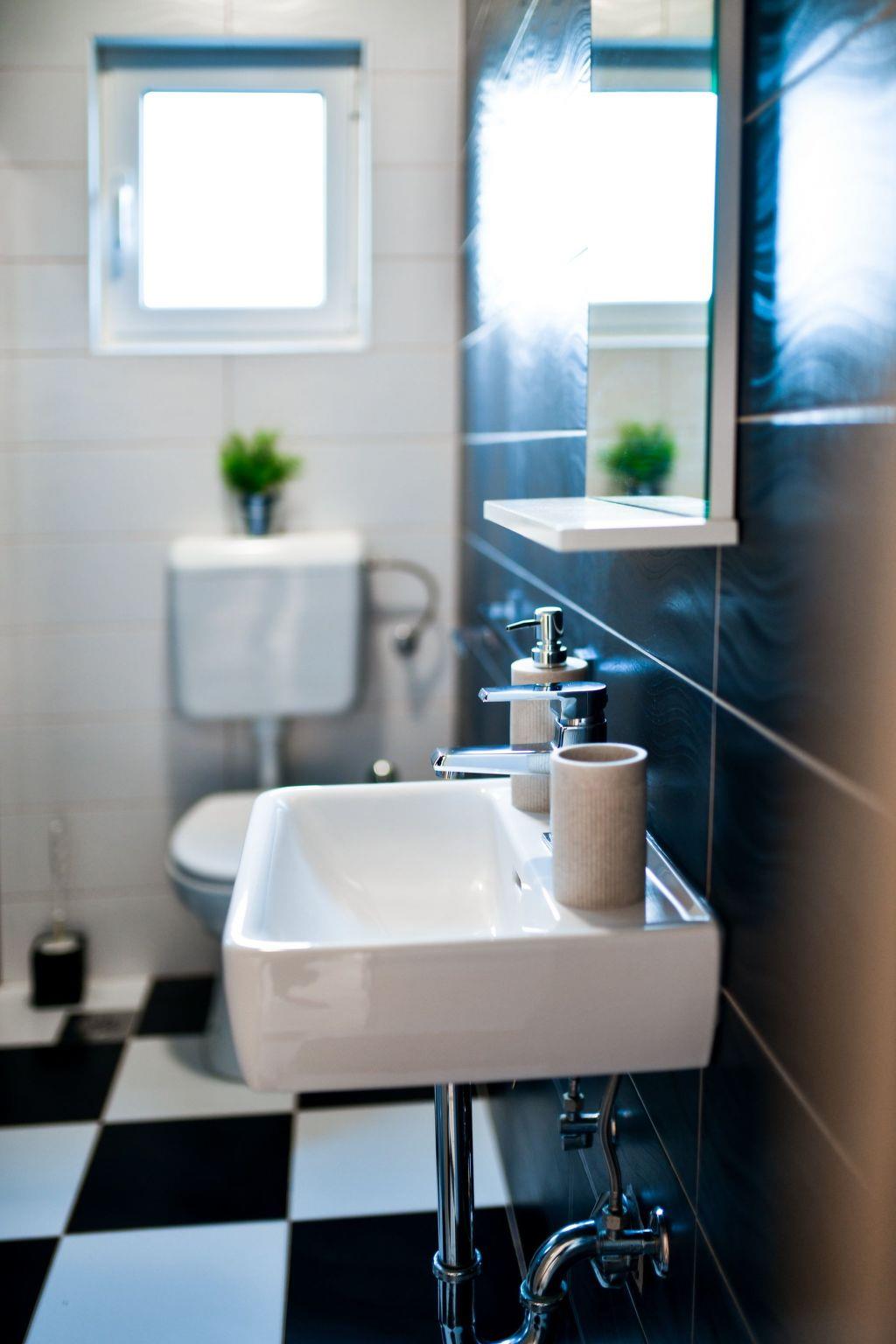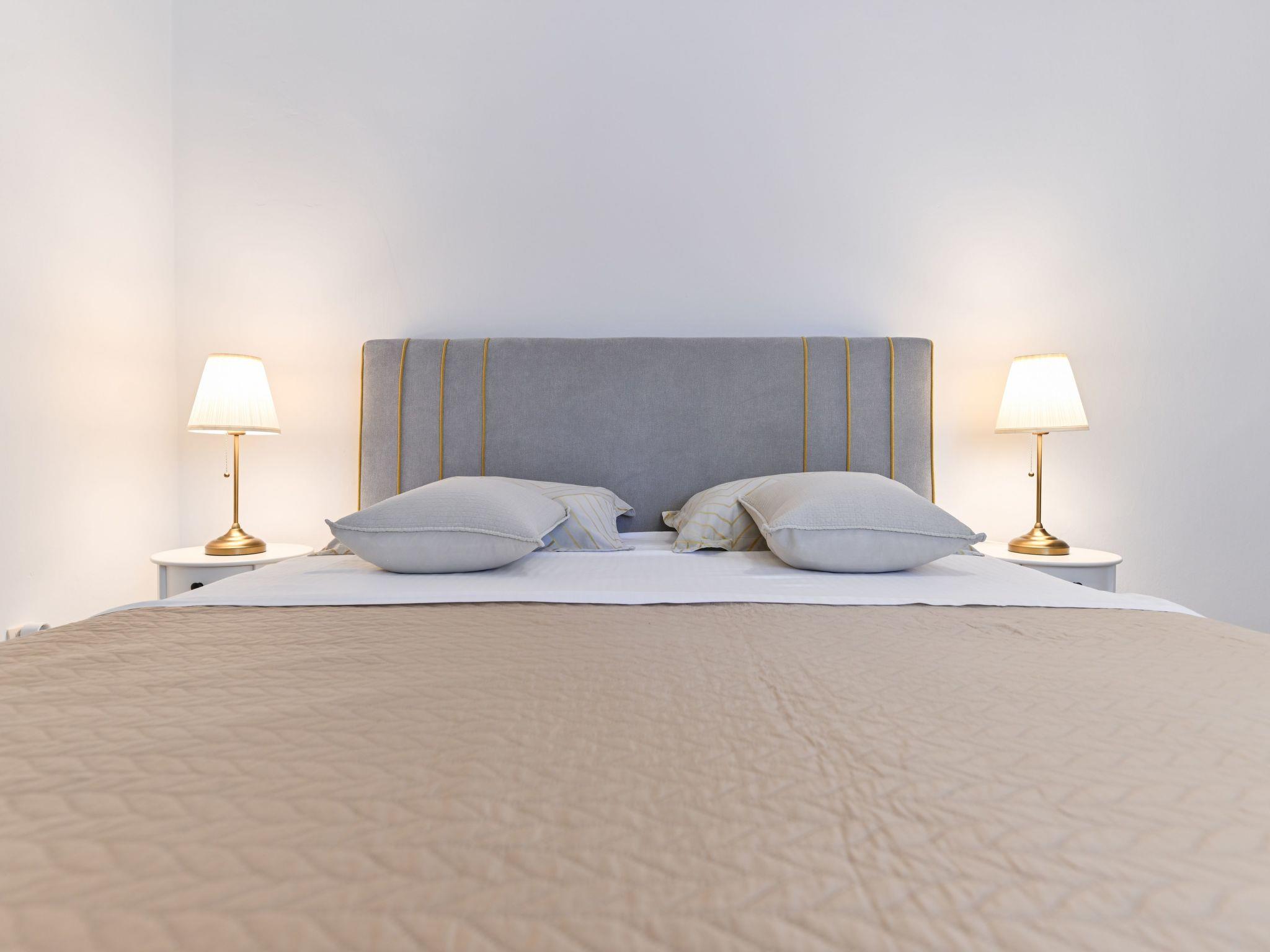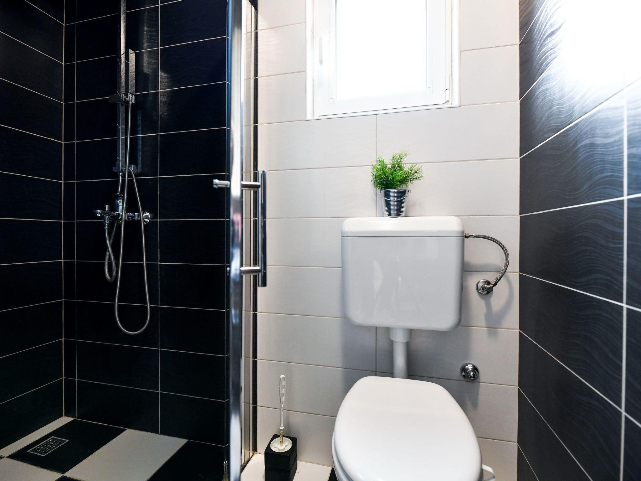 The two-storey villa features six bedrooms and four bathrooms. It can accommodate up to fourteen guests (the bedrooms are furnished with either a double bed or two single beds, and there is a double sofa bed in the living area). Downstairs there is a spacious open plan living-/dining area with an integrated, fully equipped kitchen. The kitchen is complete with dishwasher, gas cooker, oven, microwave, fridge with freezer compartment, kettle, toaster and coffee machine. The four modern bathrooms offer a shower cabin, wash basin and a toilet.
