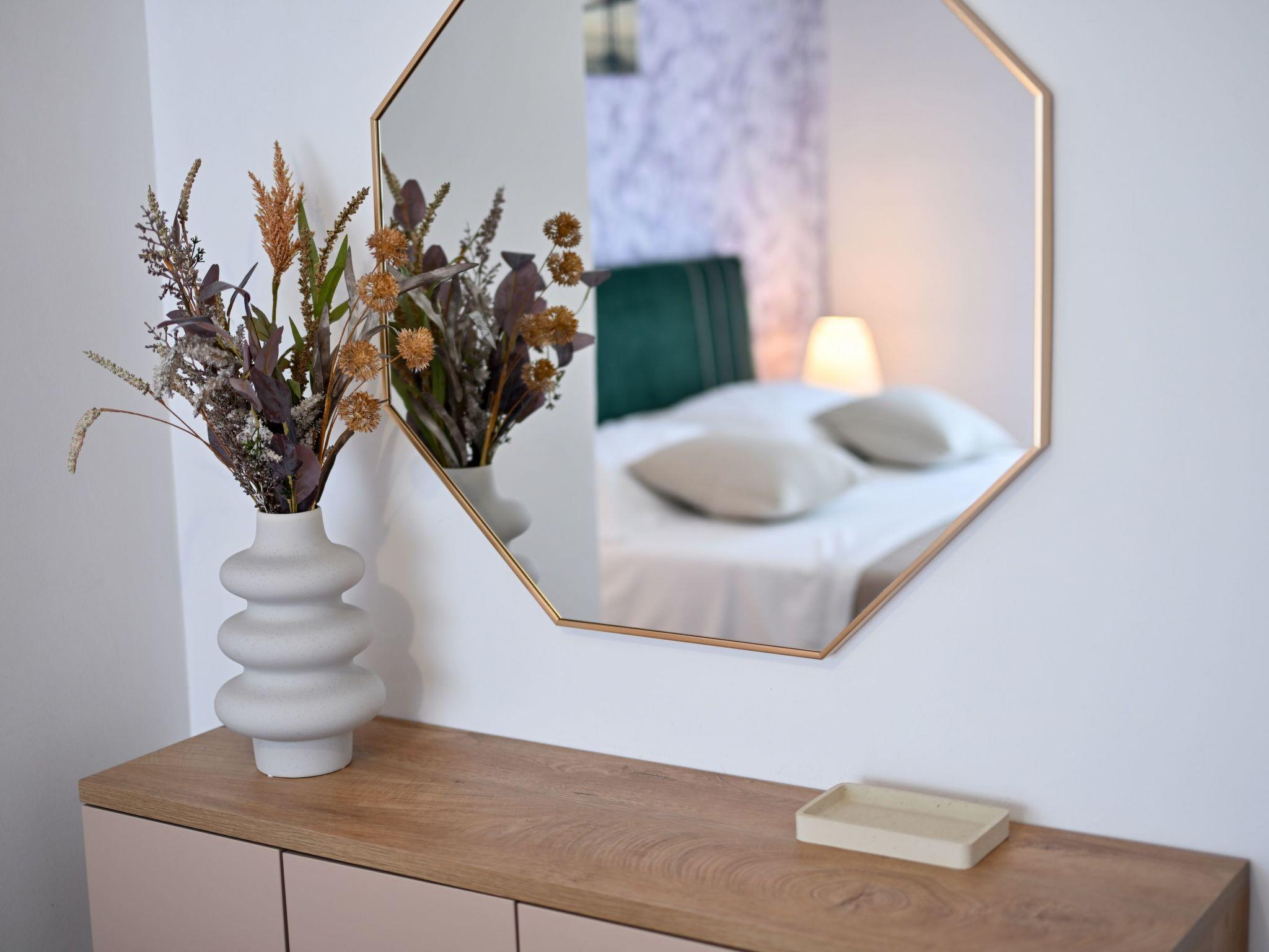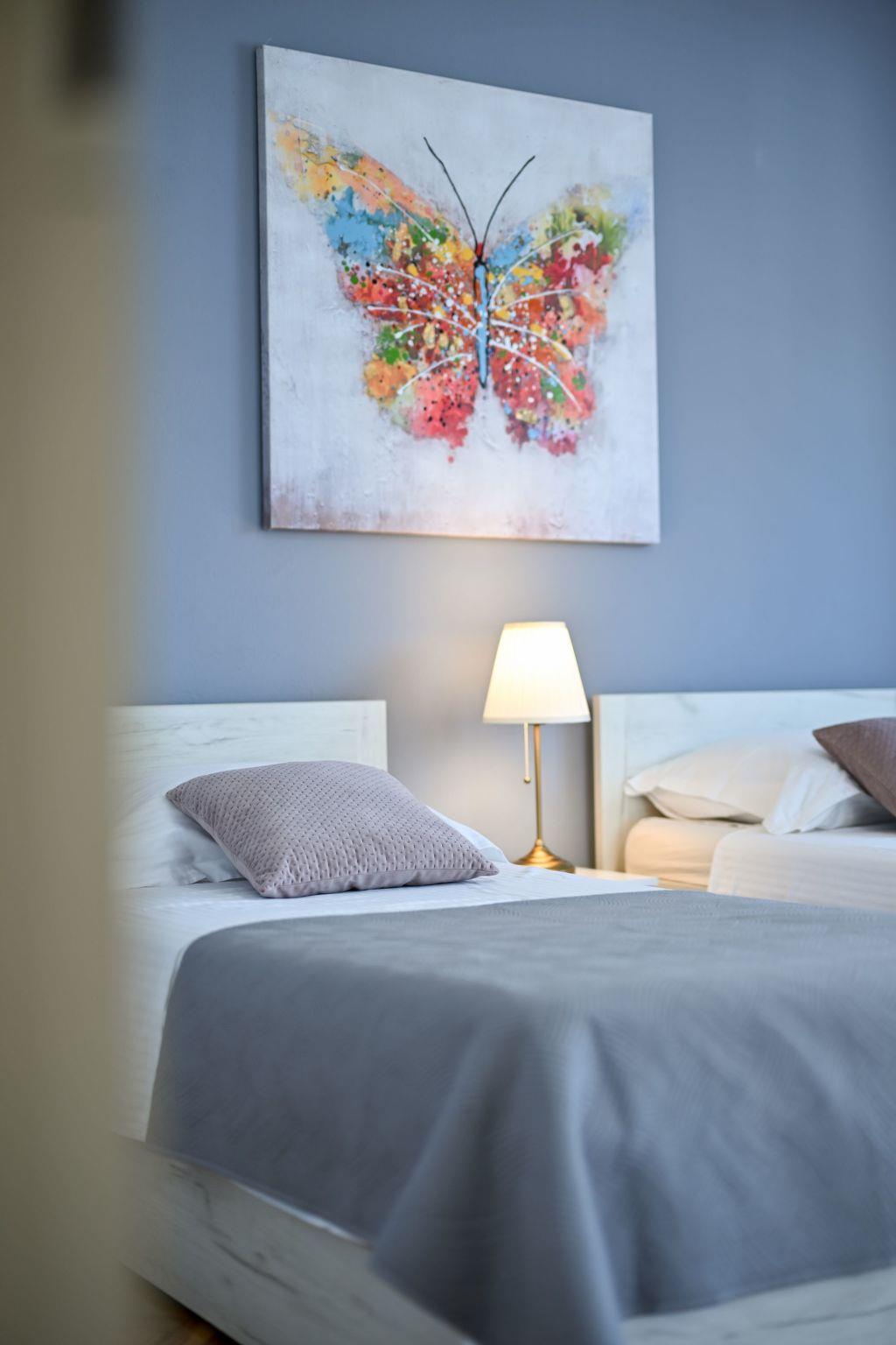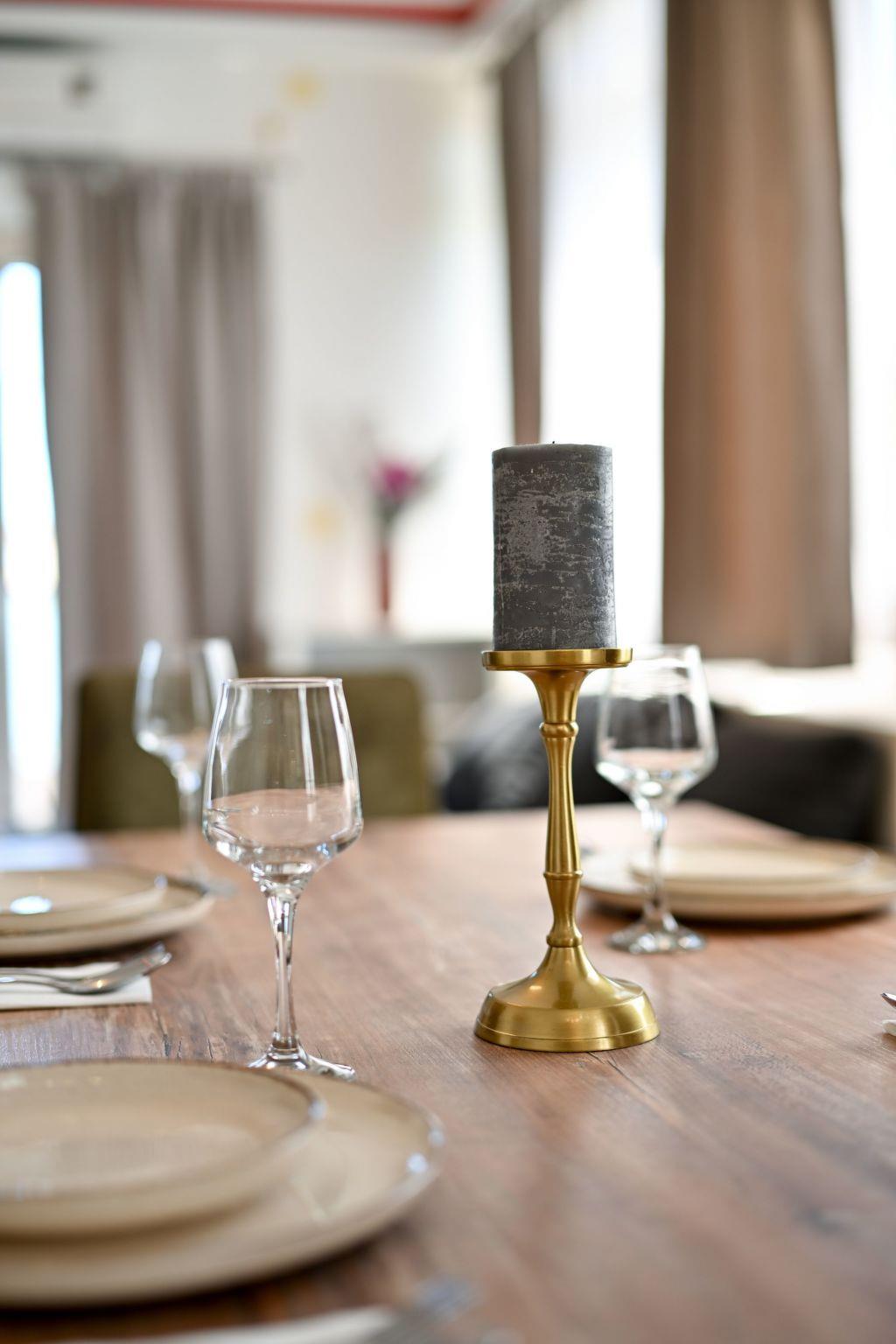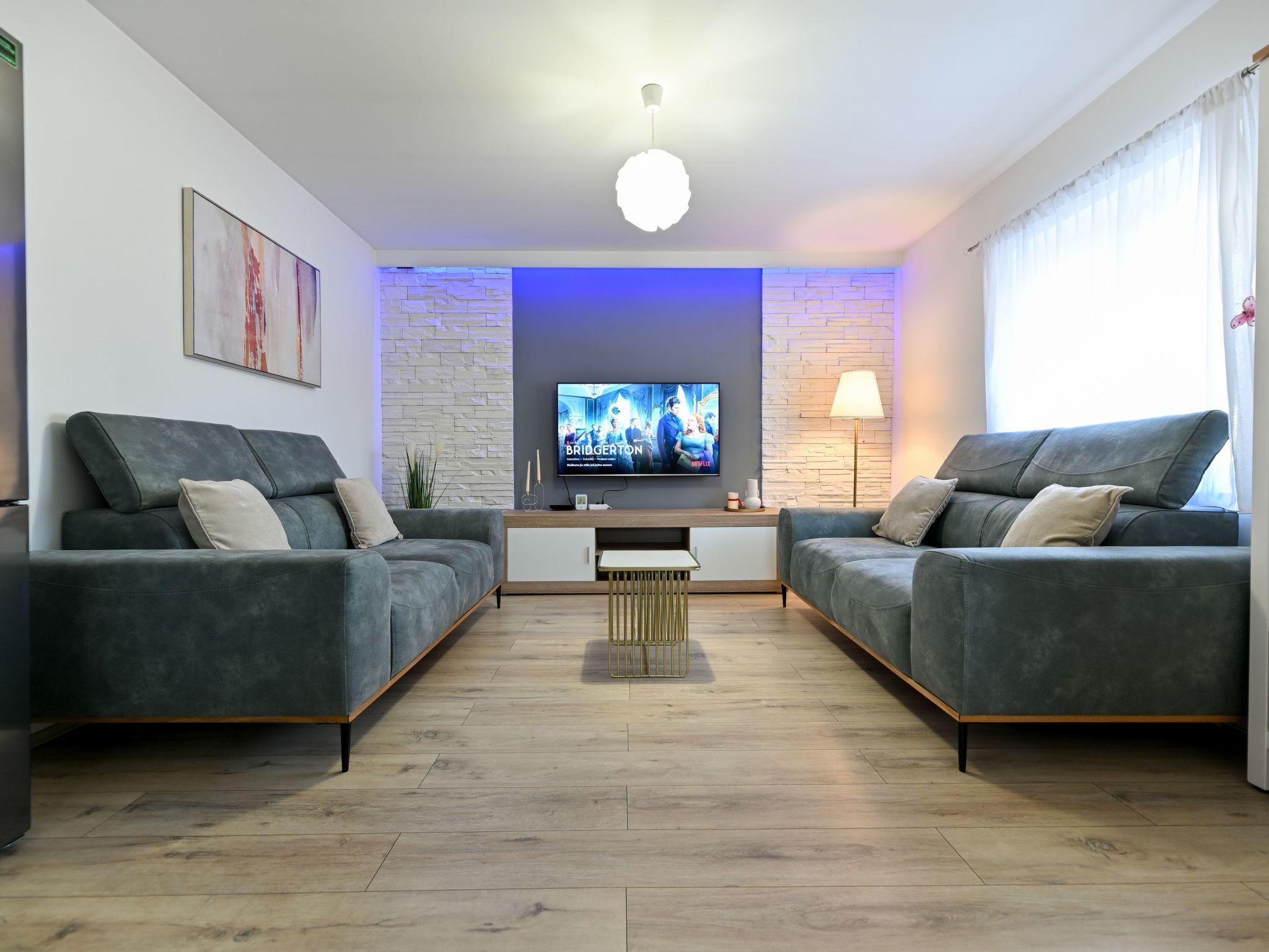 The two-storey villa features six bedrooms and four bathrooms. It can accommodate up to fourteen guests (the bedrooms are furnished with either a double bed or two single beds, and there is a double sofa bed in the living area). Downstairs there is a spacious open plan living-/dining area with an integrated, fully equipped kitchen. The kitchen is complete with dishwasher, gas cooker, oven, microwave, fridge with freezer compartment, kettle, toaster and coffee machine. The four modern bathrooms offer a shower cabin, wash basin and a toilet.